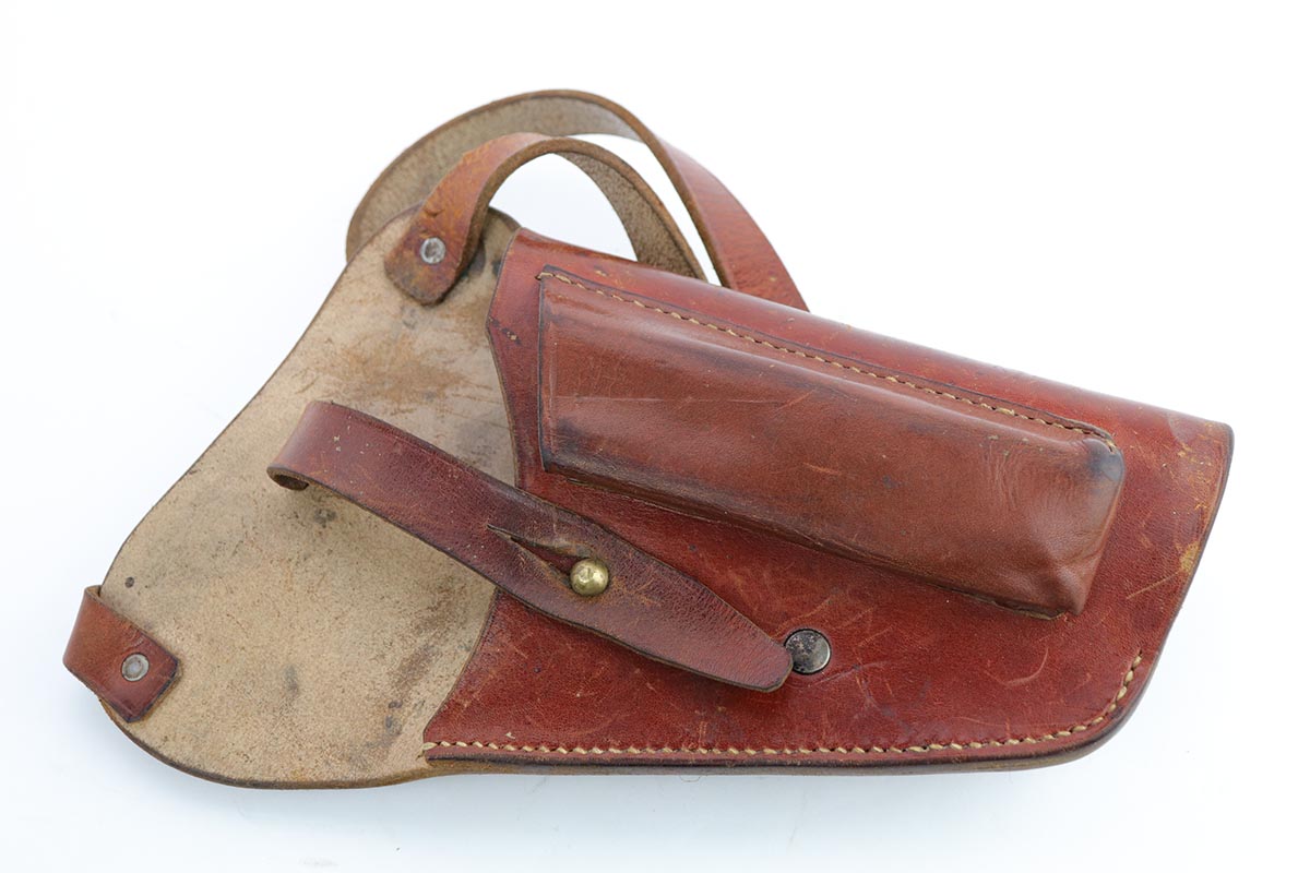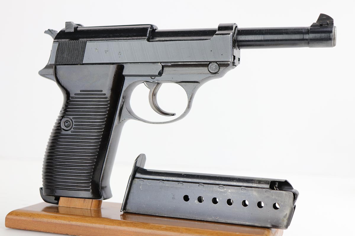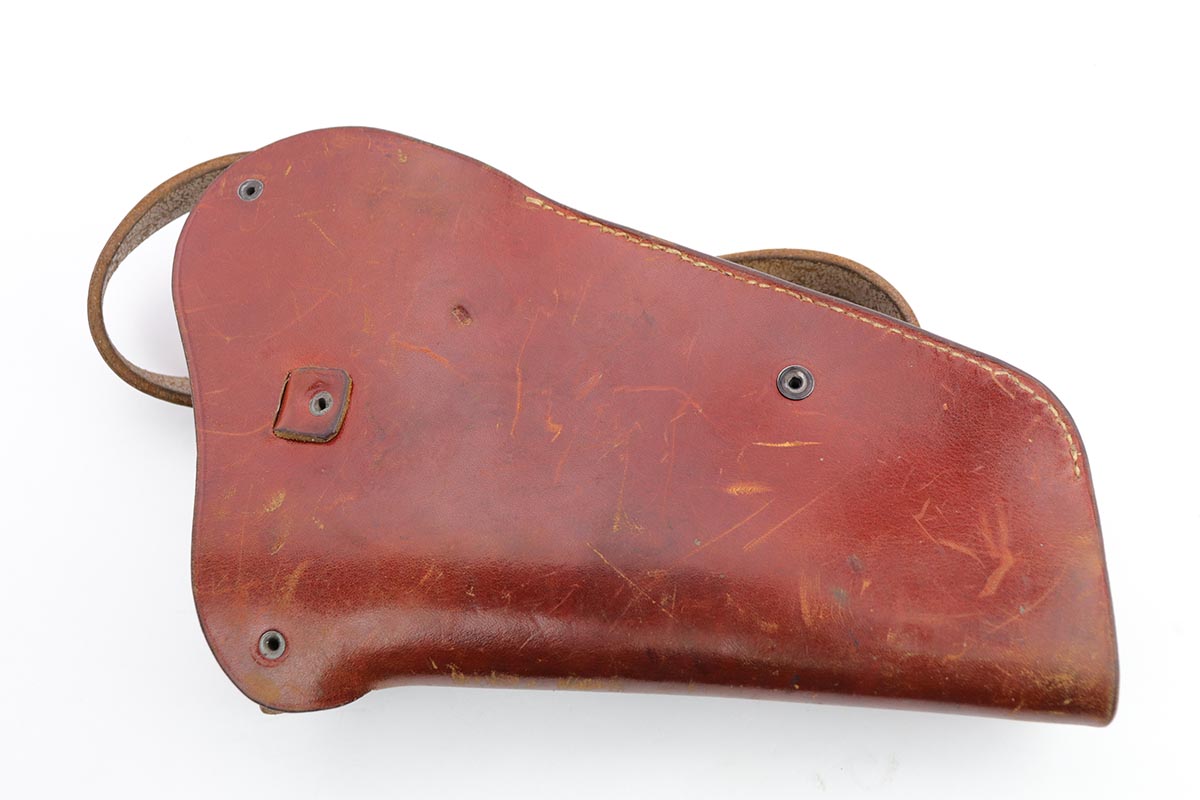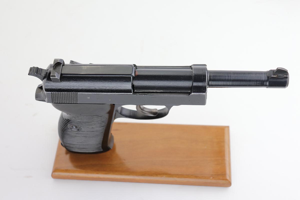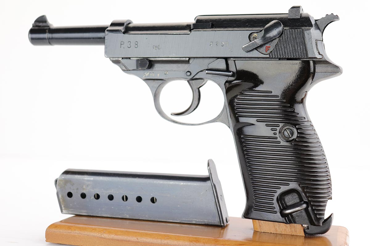 2/14/20 – This is an excellent Spreewerk P.38 from December of 1944, which comes in an unmarked shoulder holster. The pistol is all matching and original with about 96% blue remaining. There’s an area of finish loss along the top of the barrel in the area over the chamber, and minor thinning on the front strap. Excellent bore and proper mechanics. Magazine is ‘jvd’ marked. Holster is in very good condition with no major issues.