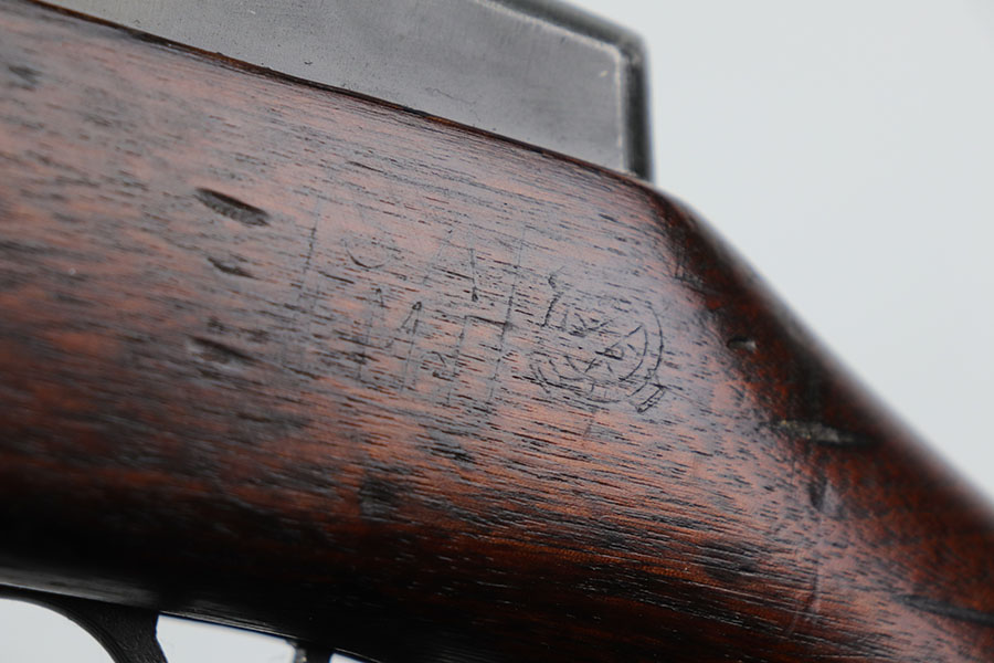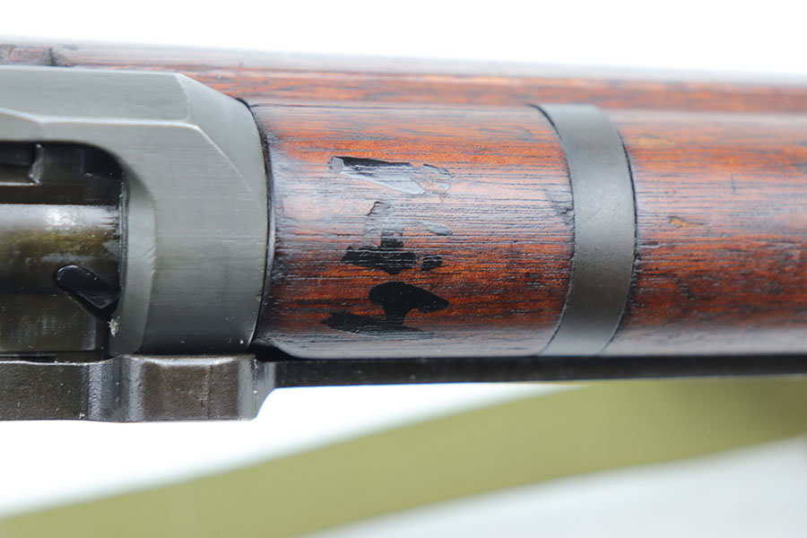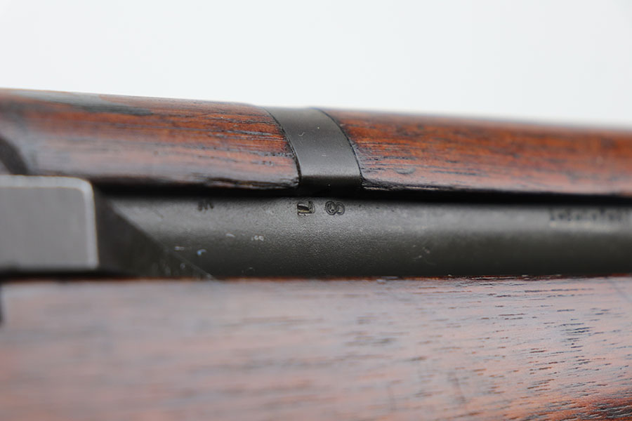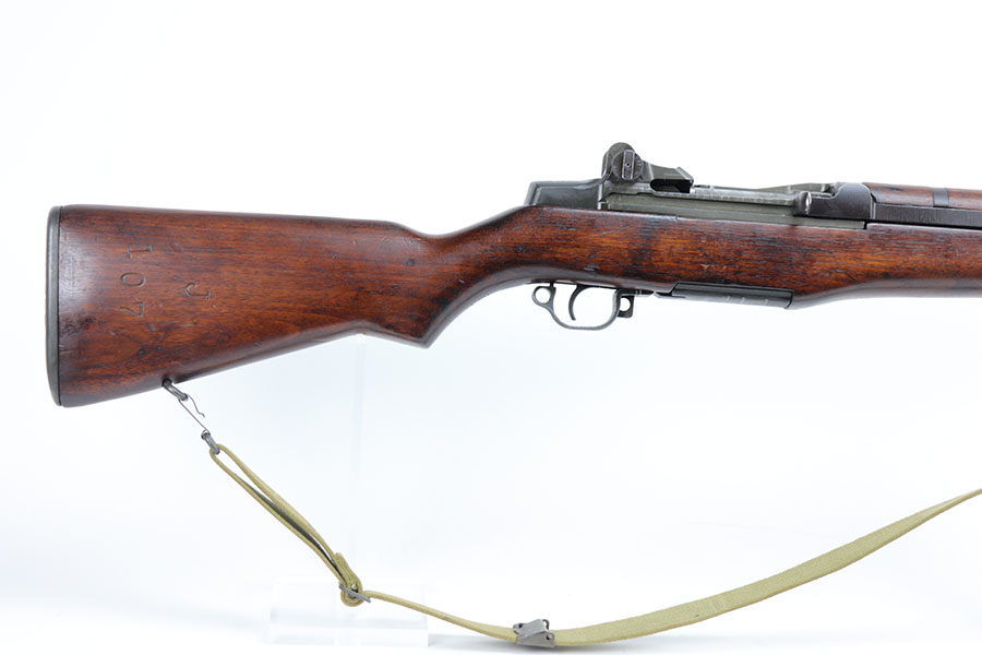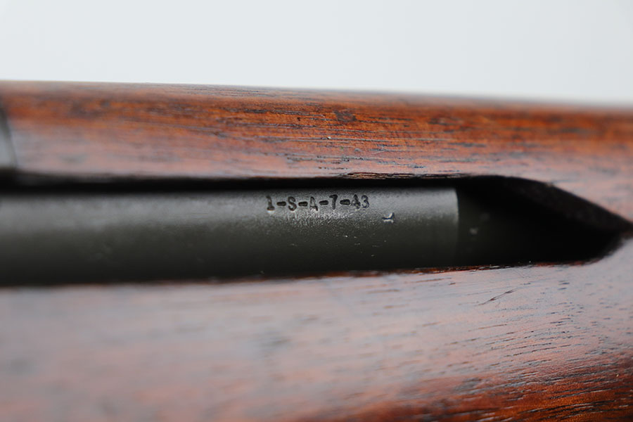 1/20/21 – This is an all original and correct Springfield Armory M1 Garand from 1943. It’s in excellent condition, with more than 95% of the original finish on the metal parts. All parts are Springfield produced, included the barrel which is dated to July, 1943. Inspectors cartouche and crossed cannons proof is visible on the stock. Circle P proof on wrist. Strong, shiny bore. Muzzle is a 2, throat is less than 1. Includes period sling.