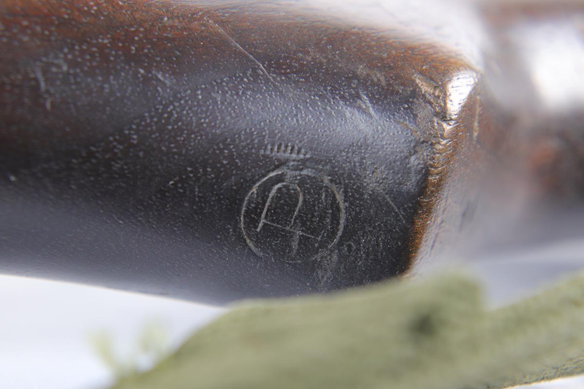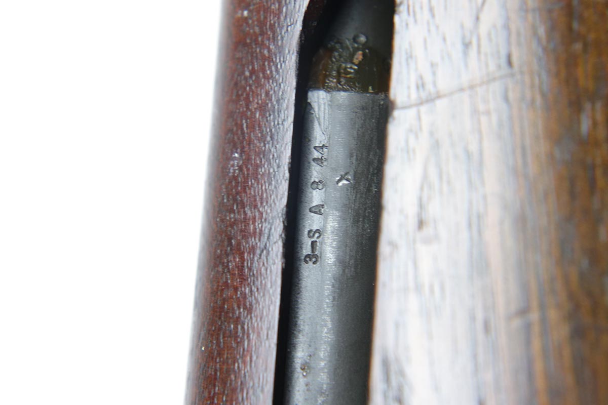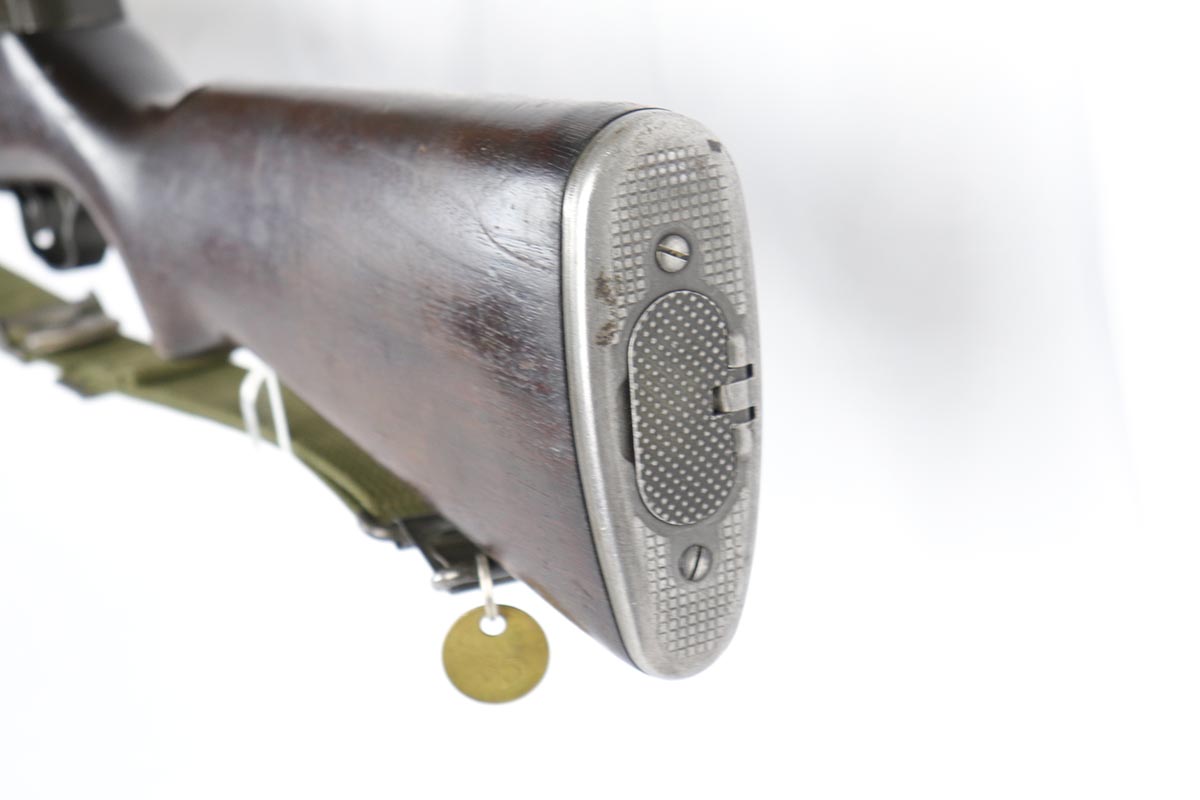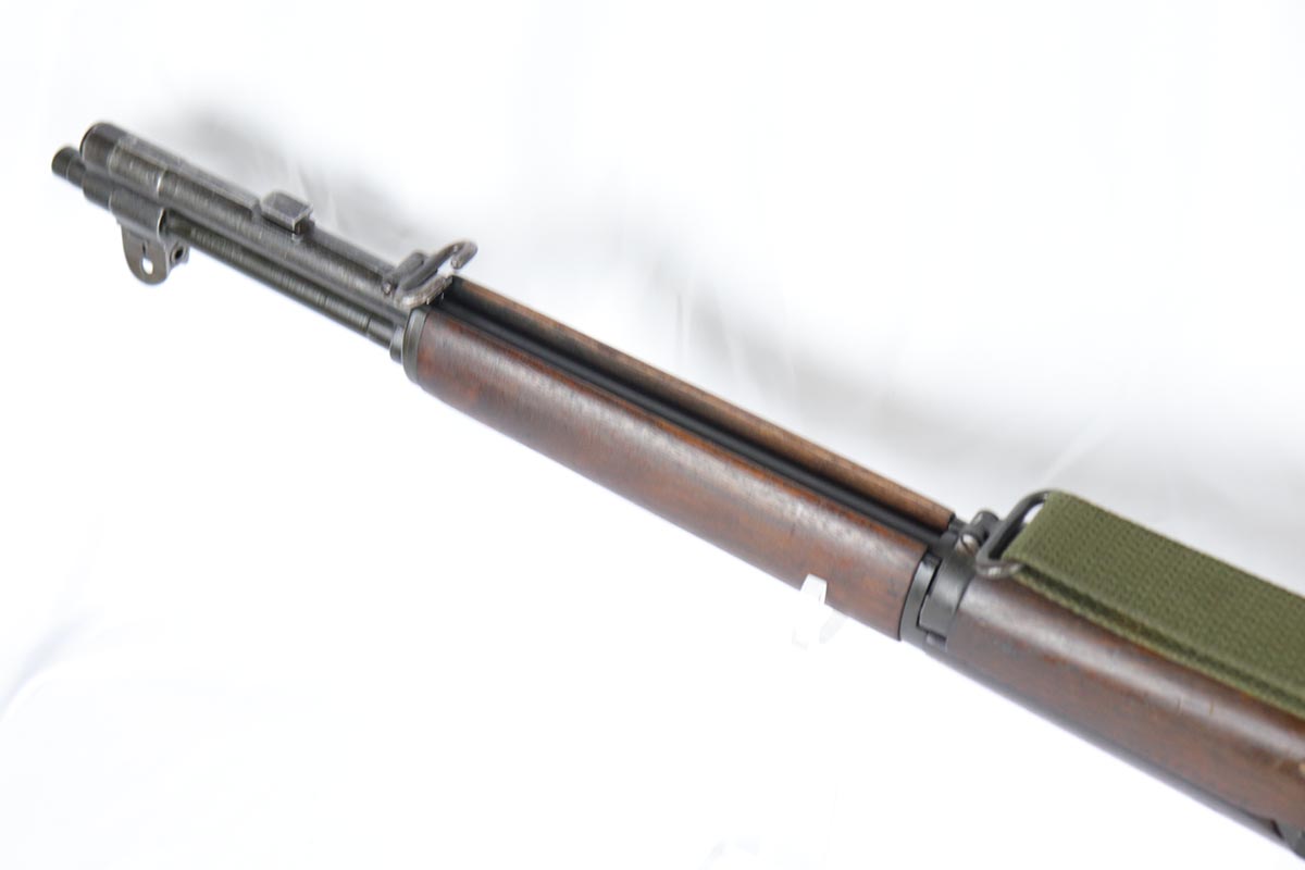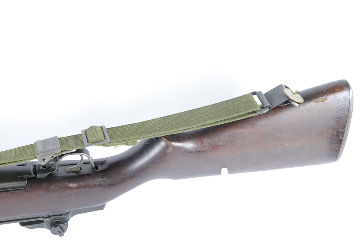 6/6/18 – This is an excellent and unmodified example of the best designed WWII infantry rifle – an M1 Garand.  This one was made in August 1944 and chambered in .30-06 caliber. This is an all original and all correct rifle that had not been rearsenaled and retains 90-95% of its parkerizing and has all the correct parts with appropriate “drawing” numbers. The receiver is near mint but there is some finish loss on the underside of the barrel.  The barrel is dated 8/44 which matches the year and month of production of the receiver.  Excellent unrefinished wood with sharp ordnance wheel cartouche and SA GAW acceptance marking next to it. There are no cracks.  Everything on this rifle is original WWII Springfield Armory, including the lock-bar rear sight. Very few of the unmodified WWII M1 Garands exist as the vast majority had gone through an Arsenal update at least once in the past 70 years.