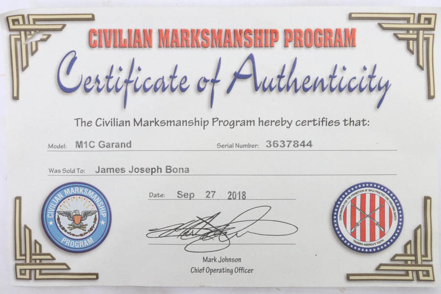 07/12/2024 – For sale is a Springfield M1C sniper that was originally produced in 1945 and was sold through the CMP. The rifle is in great overall condition with a nice even parkerized finish on the metal without too much wear. The stock has handling marks, dents, and pressure marks and there is also a rack number faded on the left side. The bore is bright with great rifling and has a muzzle erosion of 2 and a throat erosion of 1. The barrel had been replaced and is marked January of 1955. The scope mount is not original to the rifle as it is unnumbered. The rifle comes with the CMP certificate and a CMP case.