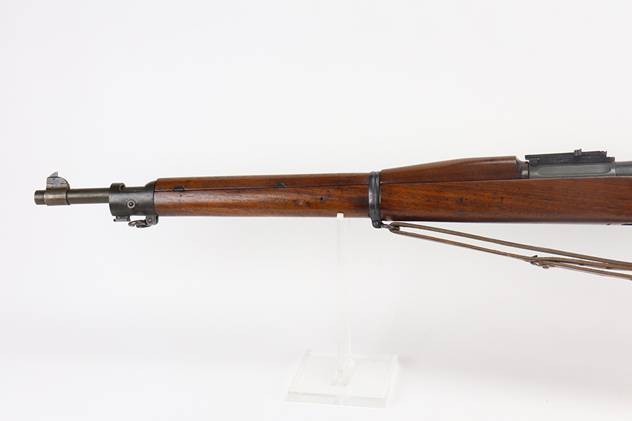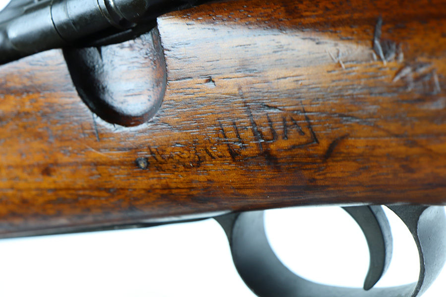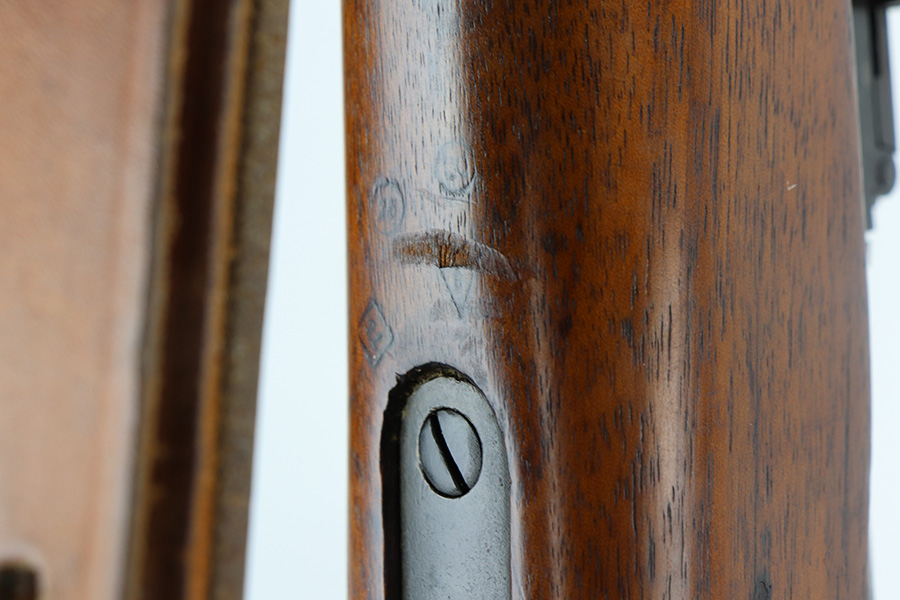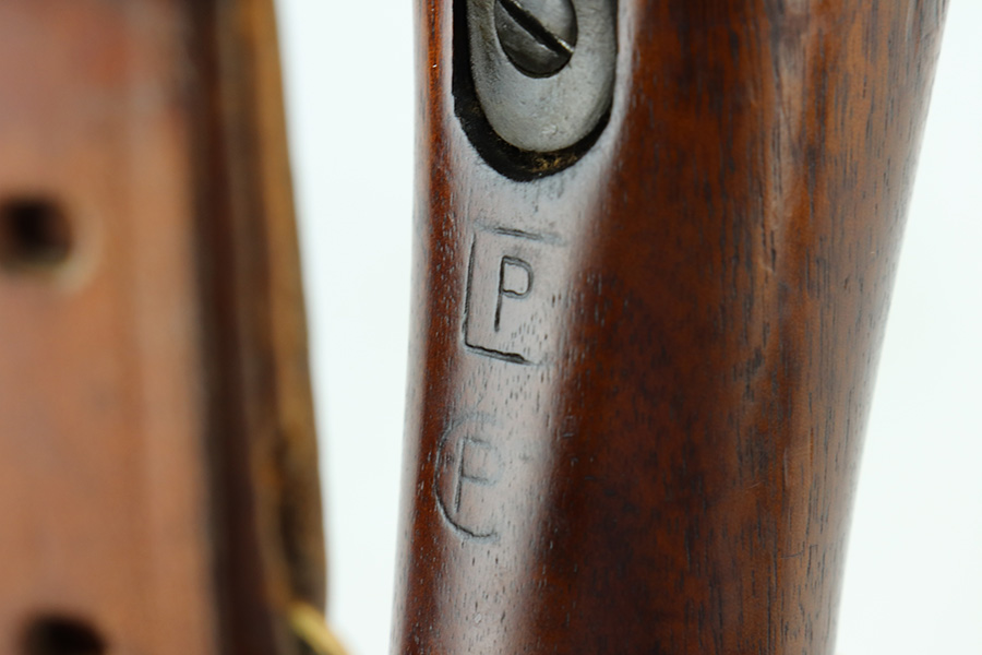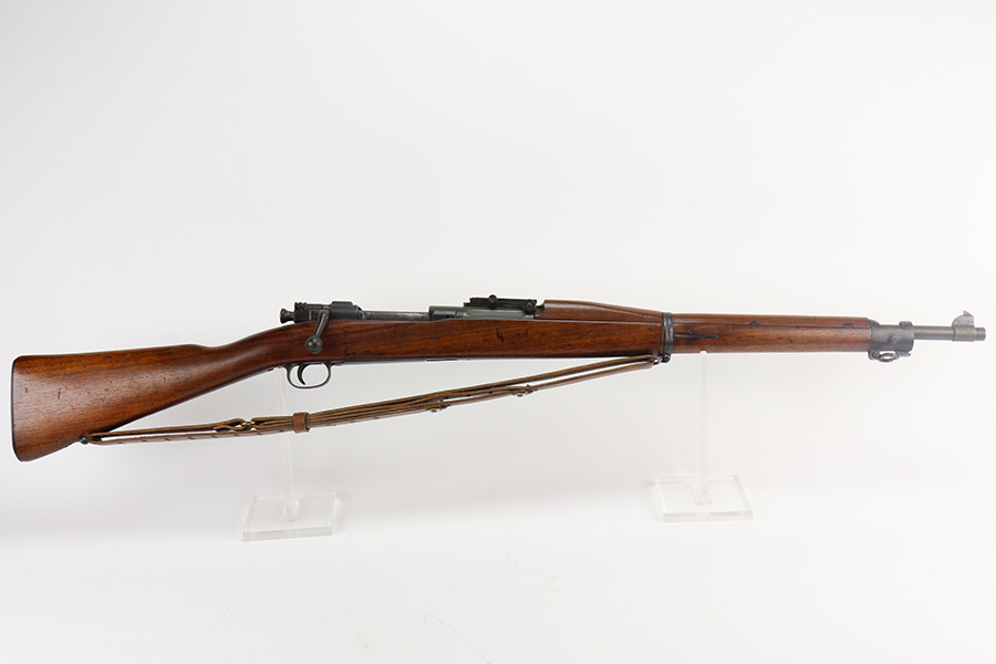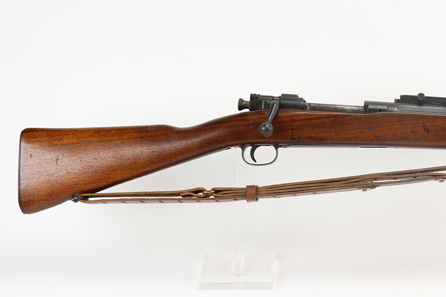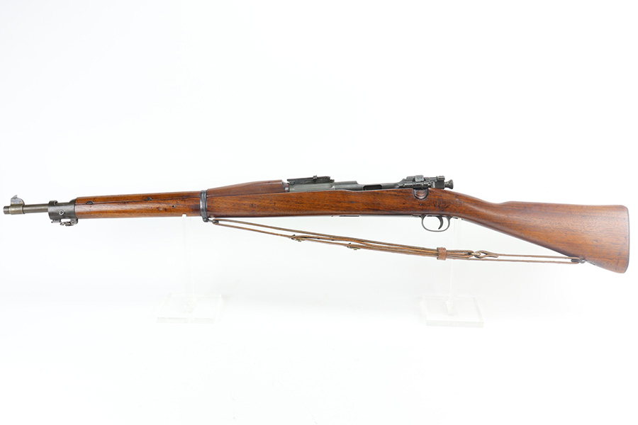 6/16/21 – This is an excellent example of a Springfield Model 1903 Mark I bolt action rifle. The receiver dates to 1919 and the barrel is dated July of 1944. The barrel is marked “HS” and has a flaming bomb proof. The receiver has a cutout to receive a Pedersen device. The stock is “P” proofed, has the proper “FJA” inspector proof, and has a “C-SAA” proof. This would indicate the gun was reworked at the San Antonio Arsenal and reissued in 1944. The gun is excellent condition, retaining most of its finish with minor scuffs around the muzzle. Excellent stock with minor scuffs and bruises. Comes with a period-correct sling. Minty bore.