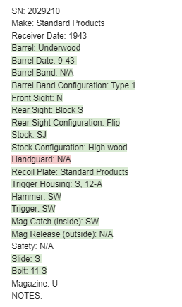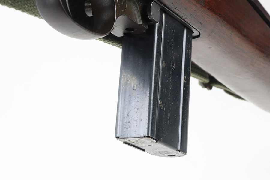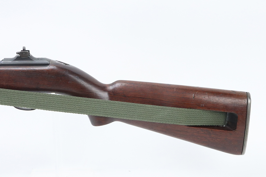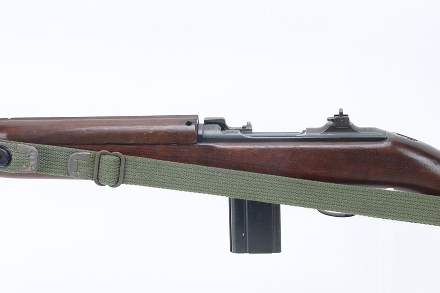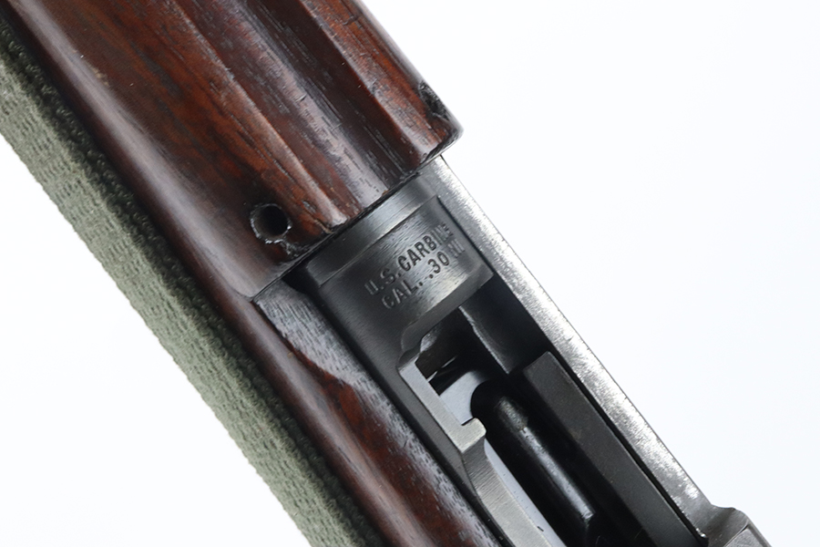 5/16/24 – This is an excellent example of a Standard Products M1 Carbine issued to the US military in 1943. A complete list of parts and markings is included in the photos. It is mostly correct, but we can’t see any marking on the handguard. Faint cross canon cartouche on the right side of the butt stock. There is almost no finish loss on the metal parts. Excellent wood stock with only minor dings and bruises. Mint bore. Comes with one magazine and a sling.