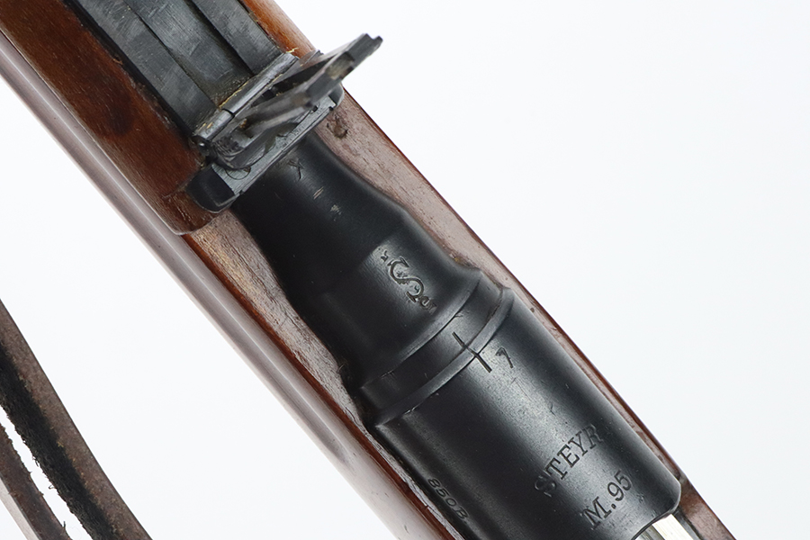 05/17/2024 – For sale is an excellent condition M95/34 Mannlicher carbine made by Steyr in 1915. The M95/45 were M1895 long rifles that were cut down to carbine length in 1934. The rifle is still chambered in the potent 8x56r rifle as it has the S stamp on the barrel. The rifle retains a nice deep bluing throughout the rifle and the stock is clean. This carbine is matching on the barrel, receiver, and bolt. The stock has the serial number crossed out. The bore is clean and bright. The rifle comes with a new production leather sling.