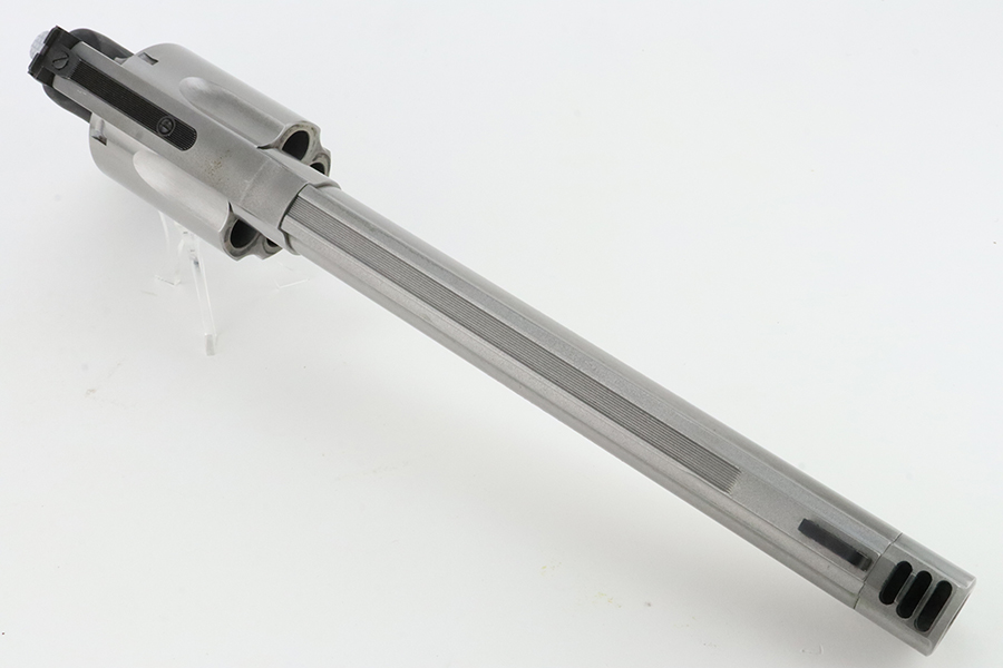 02/12/2024 – Up for sale is an excellent condition 500 S&W revolver. The revolver is chambered in the infamous .500 Magnum known for its high power and recoil. The handgun sports an 8.25″ barrel with a ported compensator added on. Action is smooth and the trigger is crisp. The bore is excellent with some wear marks and fogging. The rubber grips are in good condition and free of cracks. There are some wear marks on the right side of the barrel.