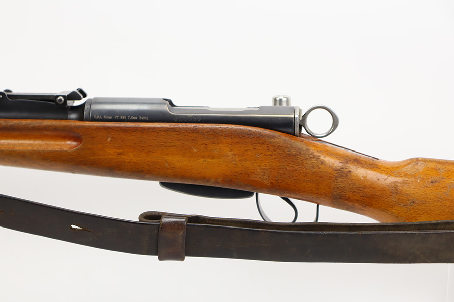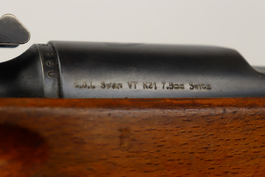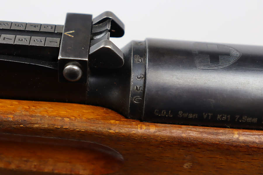 10/02/23 – This is an excellent example of a Swiss K31 chambered in 7.5×55. The serial number puts the manufacture year around 1940. The overall condition of this rifle is fantastic with the bluing on the metal retaining about 90% of its finish with minor edge wear here and there. The stock is also in great shape with no major blemishes. The buttstock area of the stock is more worn than the rest but that is due to the soldiers resting their rifles in the snow. The rifle has matching serial numbers on the receiver, bolt, and magazine. The bore is mirror bright and pretty much mint. The rifle comes with a Swiss leather sling and a muzzle cap. The rifle is import marked on the receiver.