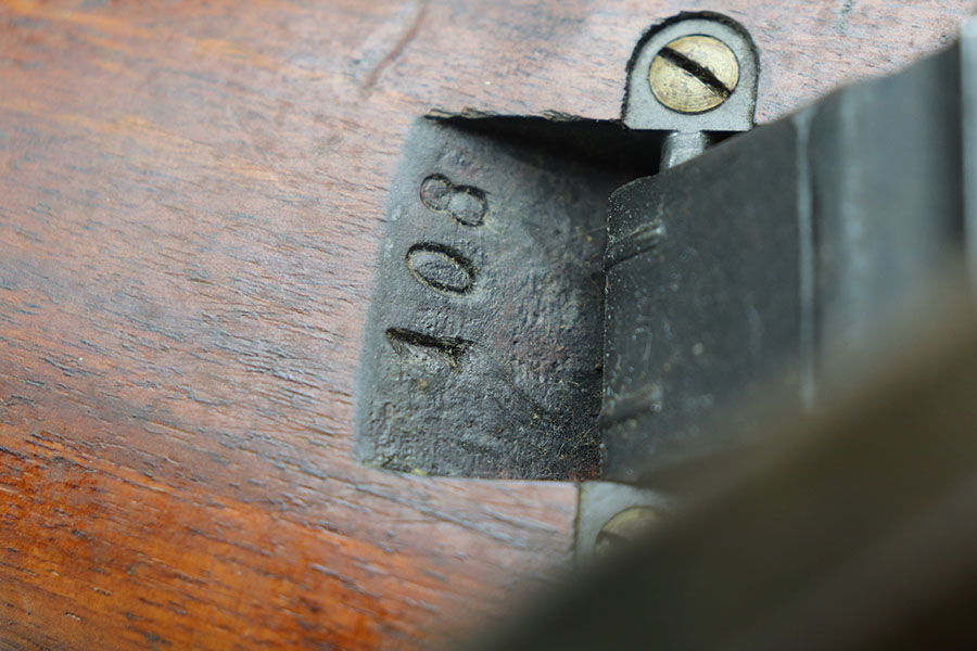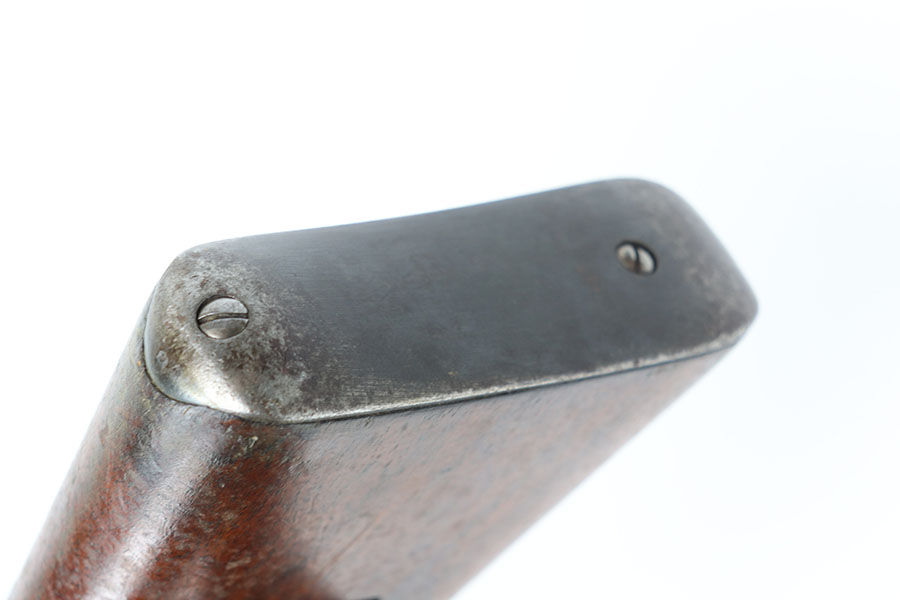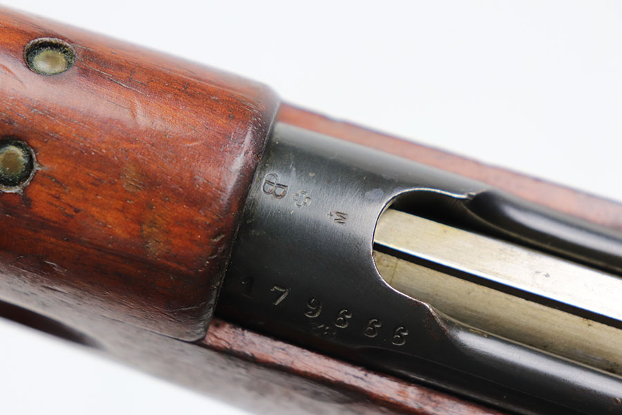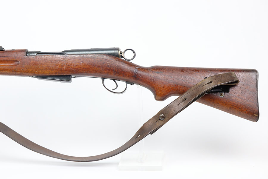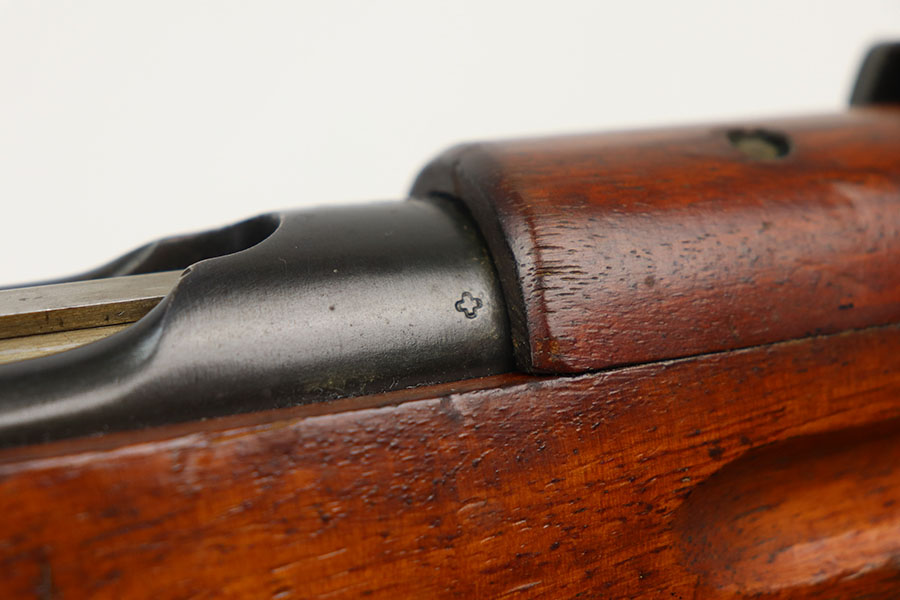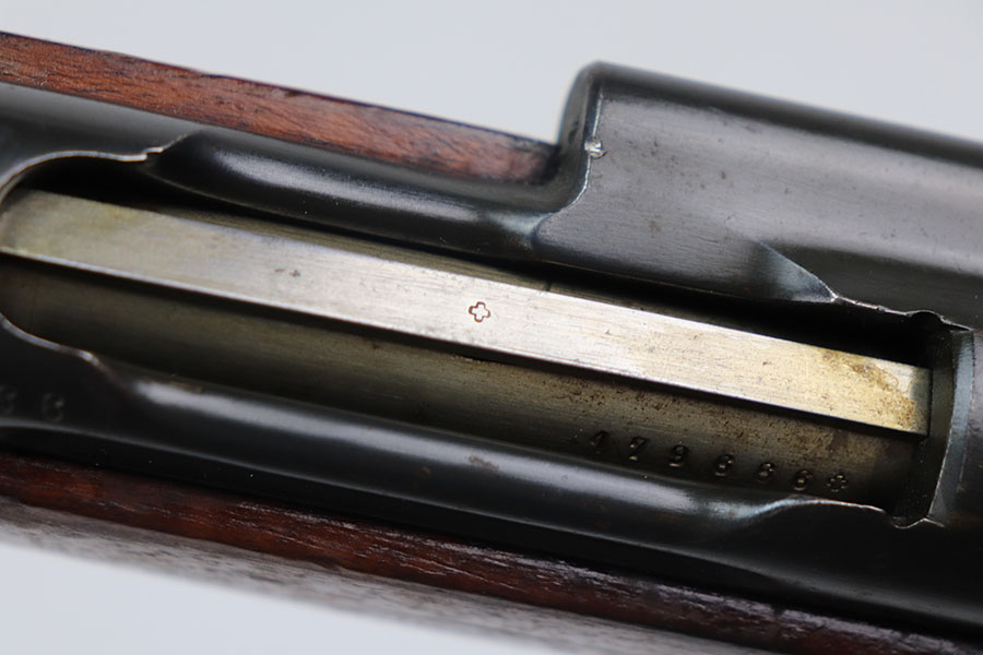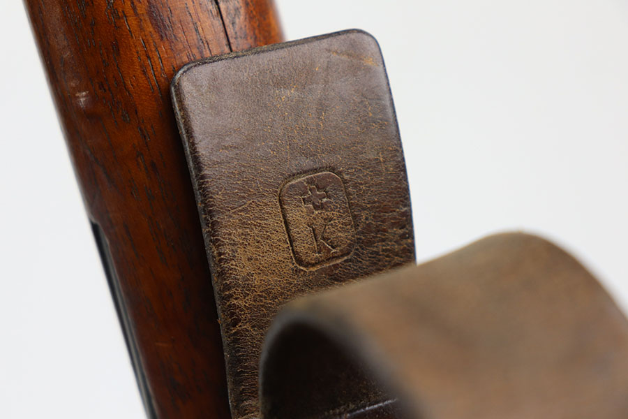 2/22/21 – This is an excellent example of a Swiss Schmidt Rubin K11 Rifle issued to the Swiss Army in the 1930’s. The K11 is identical to the previous 1911 model in every way except it was shortened. This one is all matching but has a small import mark on the barrel. It comes with an original sling and muzzle cover. The gun is in excellent condition, retaining most of its original bluing. There is minor wear on some of the high edges and spotty patina here and there. The stock is excellent with minor dings and dents throughout. Excellent bore – shiny with strong rifling.