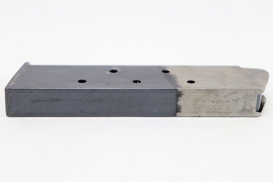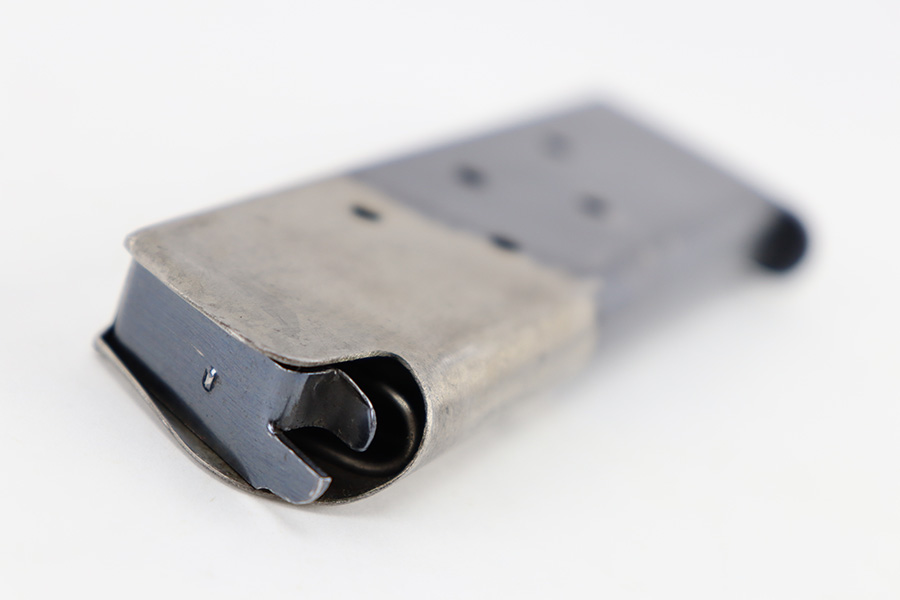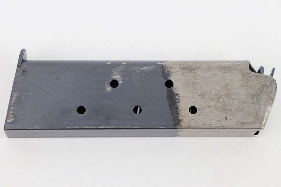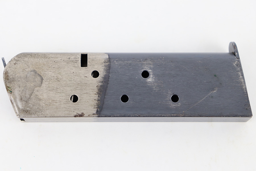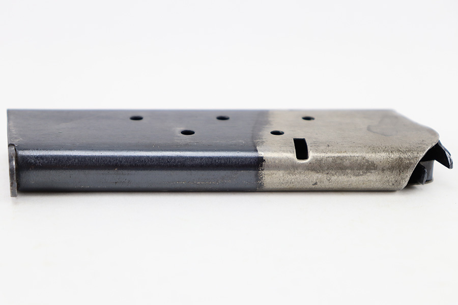 8/31/23 – This is an excellent condition WW1 era production Colt M1911 magazine. The magazine has a two-toned finish, with the lower portion of the magazine being blued. There’s minimal finish loss, and some mild surface patina but no major issues. Strong, functional spring. No markings or stamps.
