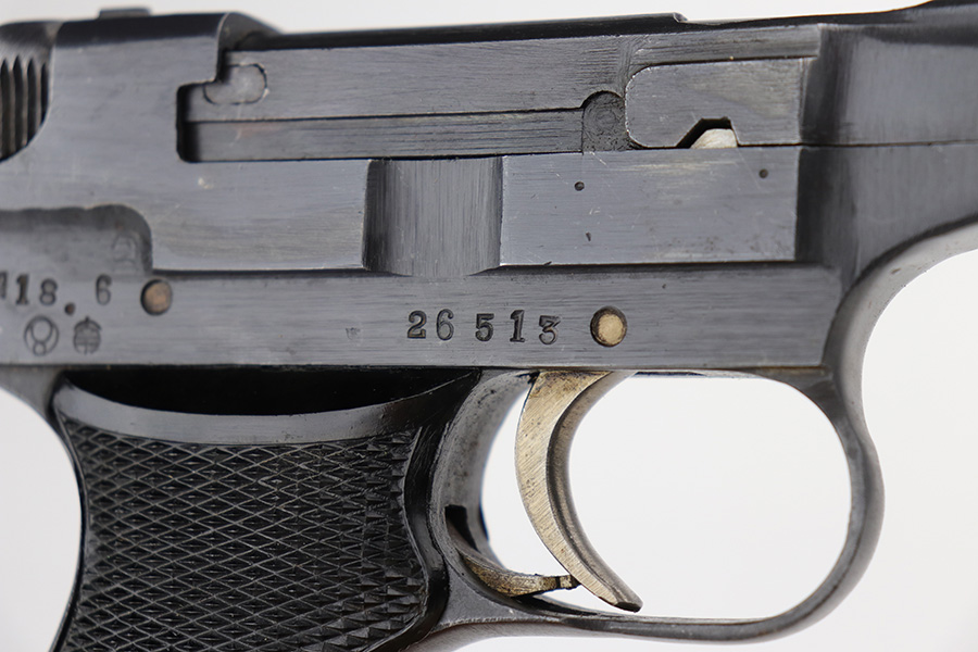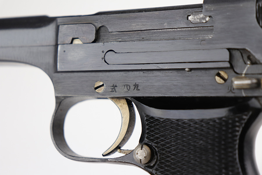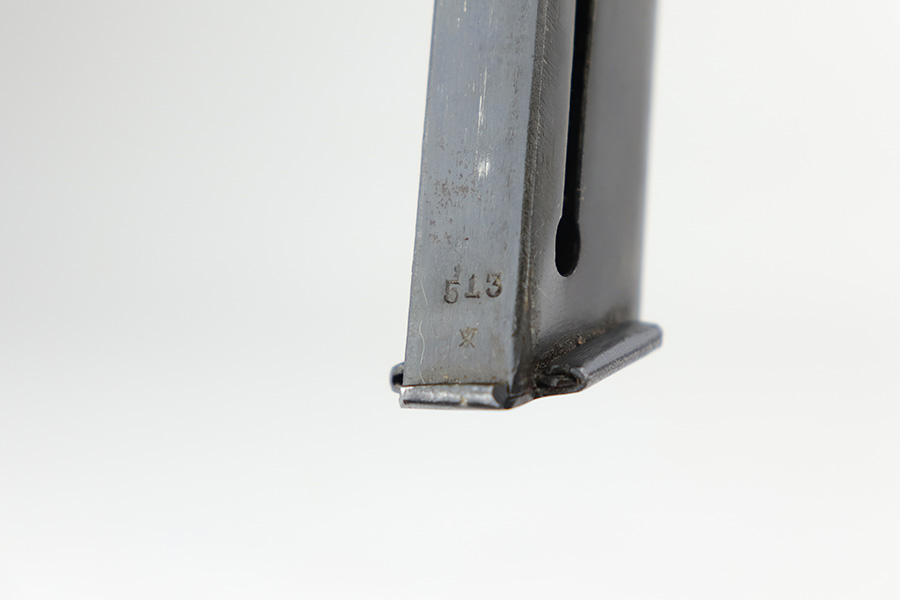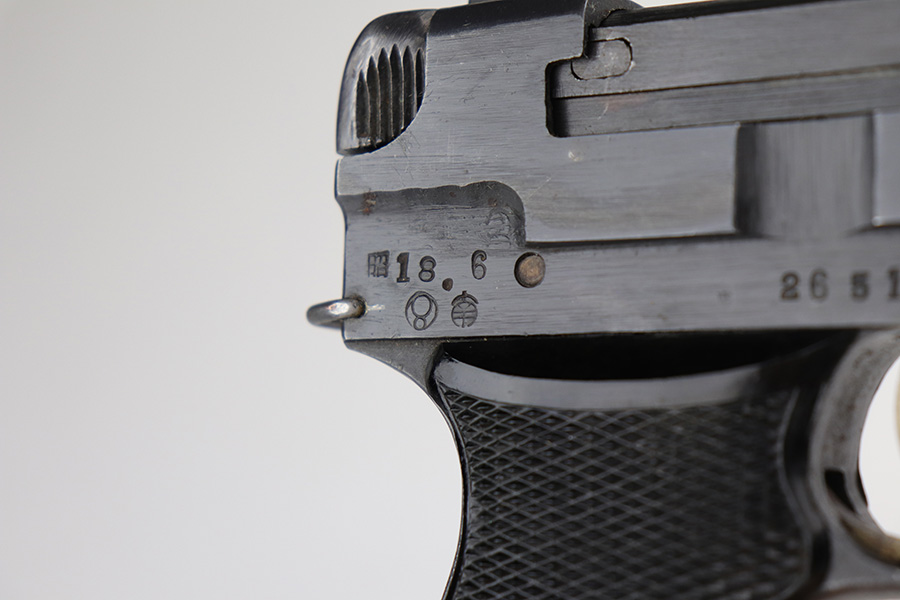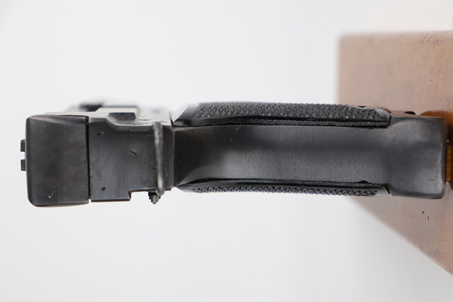 9/30/21 – This is a near-mint Type 94 Nambu that was made in June of 1943 at the Kokubunji Arsenal. All matching and original, including one of the original magazines. About 98% of the original blue remains, just a few minor dings and a hint of high edge wear. Excellent bore and grips.