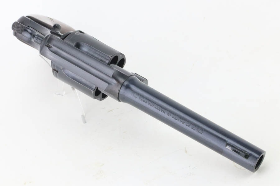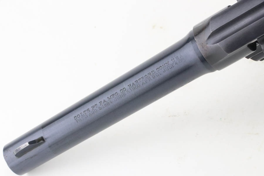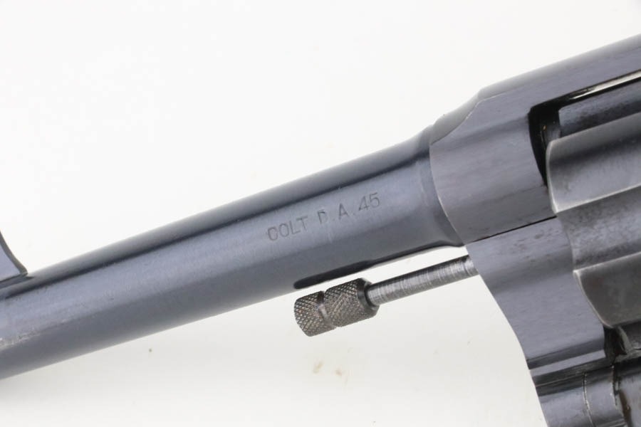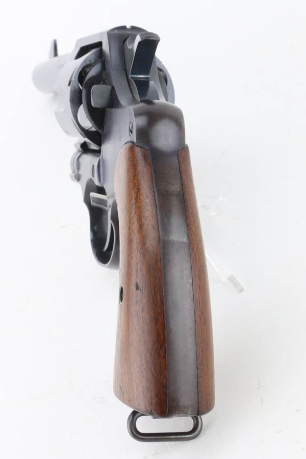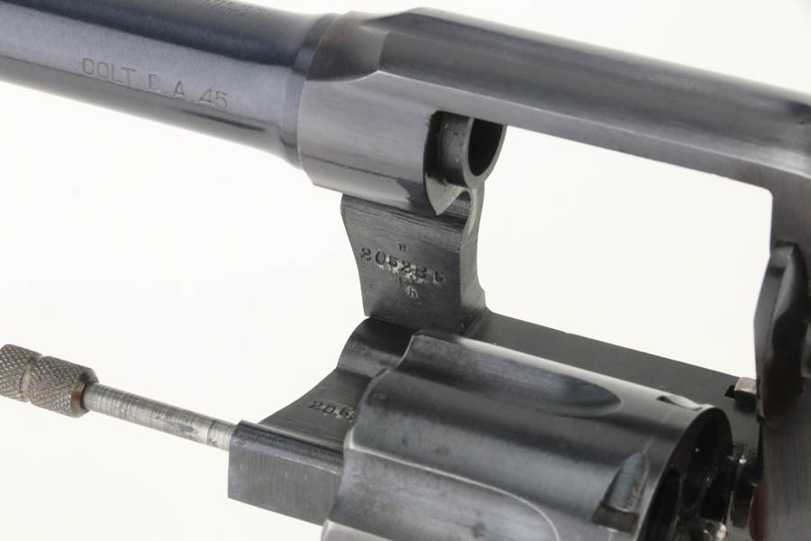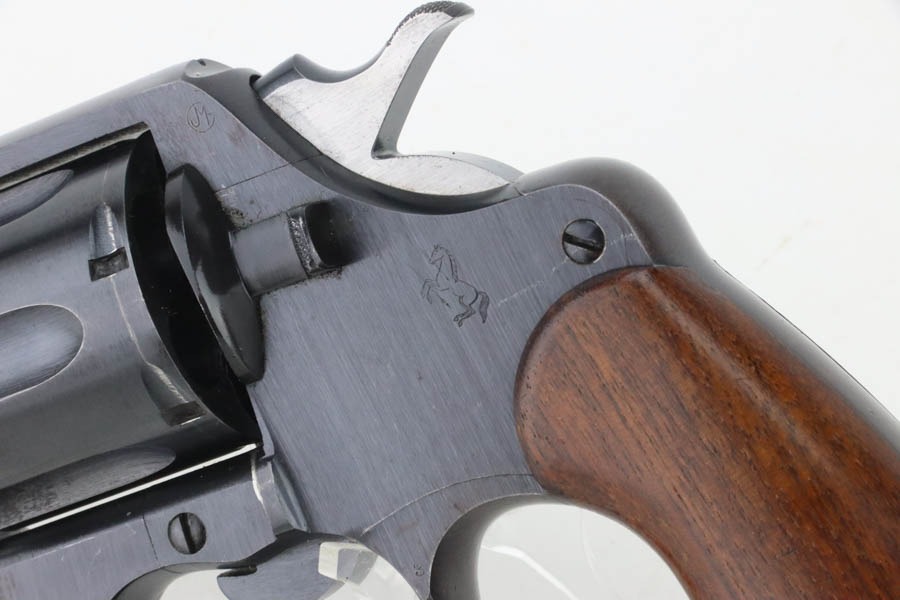 10/10/24 – This is an excellent example of a Colt Model 1917 revolver issued to the US military during WW1. It is all matching, has the proper military acceptance proof on the left side of the frame, and is “United States Property” marking on the underside of the barrel. It’s original bluing rates about 90-92%. Since nearly all of the finish loss is on the grip straps (along with some very light brown patina), the profile views are minty. Just some very light flaking in the finish on the right side of the frame and some very light freckling on the cylinder. Fitted with period-correct grips that are numbered but mismatched. Mint bore.