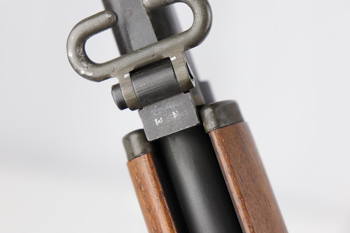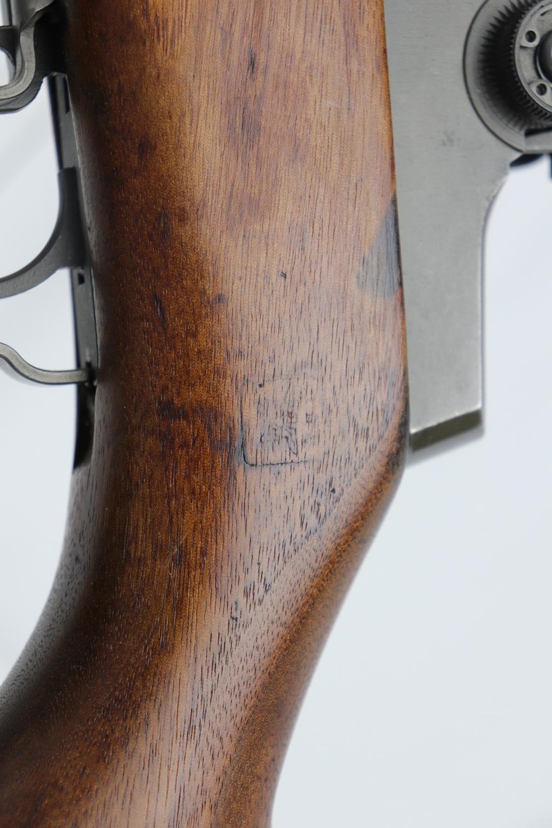 1/28/20 – This is an excellent Springfield Armory M1 Garand, and the latest serial we have encountered. Production stopped just after serial 6.1 million, with only ~17 known examples of over 6,100,000. This one is fewer than 500 digits shy of that mark, and has several National Match (NM marked) parts, including barrel, operating rod, etc. Barrel is dated to May of 1952. Faint DAS cartouche on left side of stock. Bedded stock is in excellent condition with no major defects.