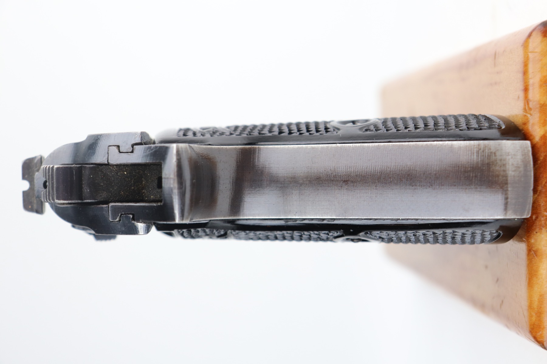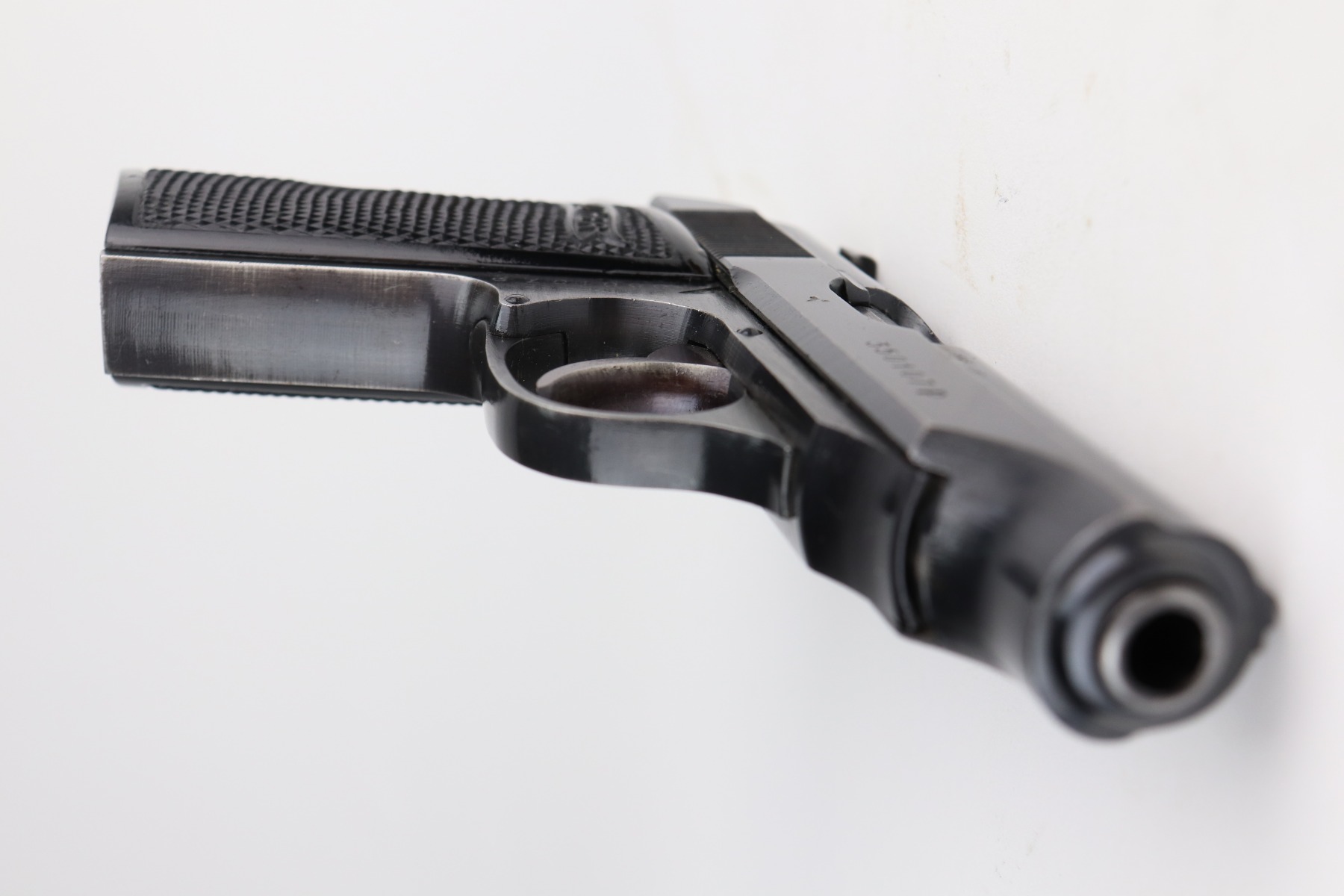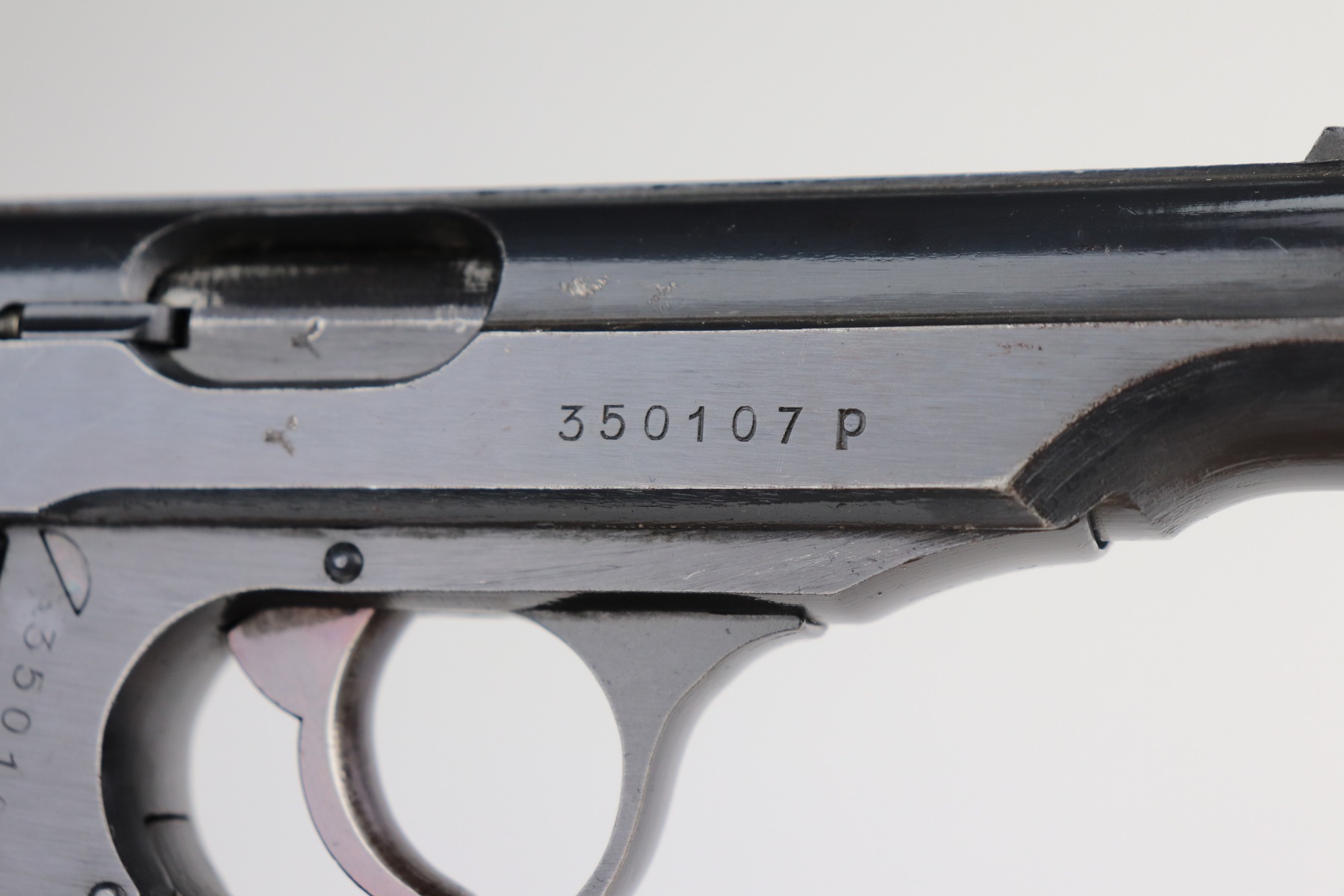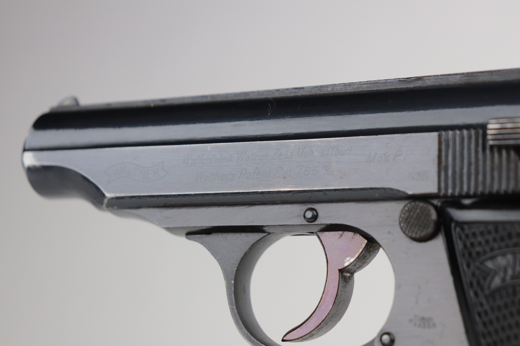 6/8/21 – This is an excellent example of a Walther PP issued to the Nazi military in 1944. The gun is all matching and has the proper “Waffen 359” military proofs. It has retained about 97% of its original bluing. There is very minor thinning on the straps and minor wear around the muzzle and base of the back strap. One small ding on the right side of the slide. Comes with excellent grips and a proper wartime magazine. Mint bore.