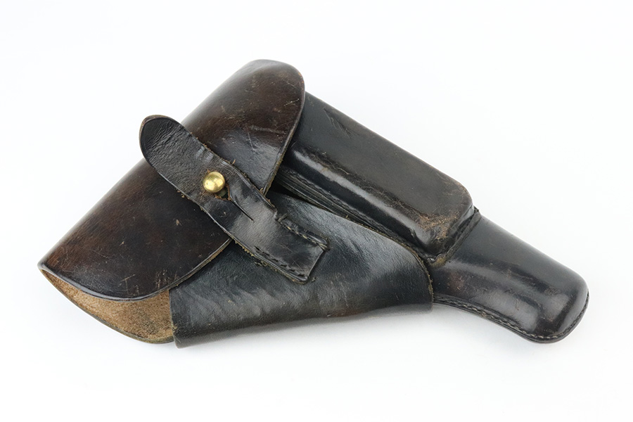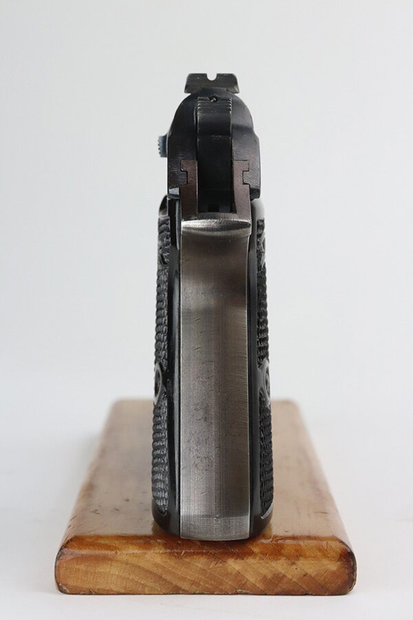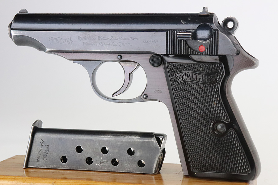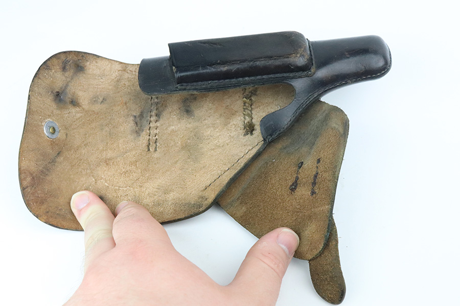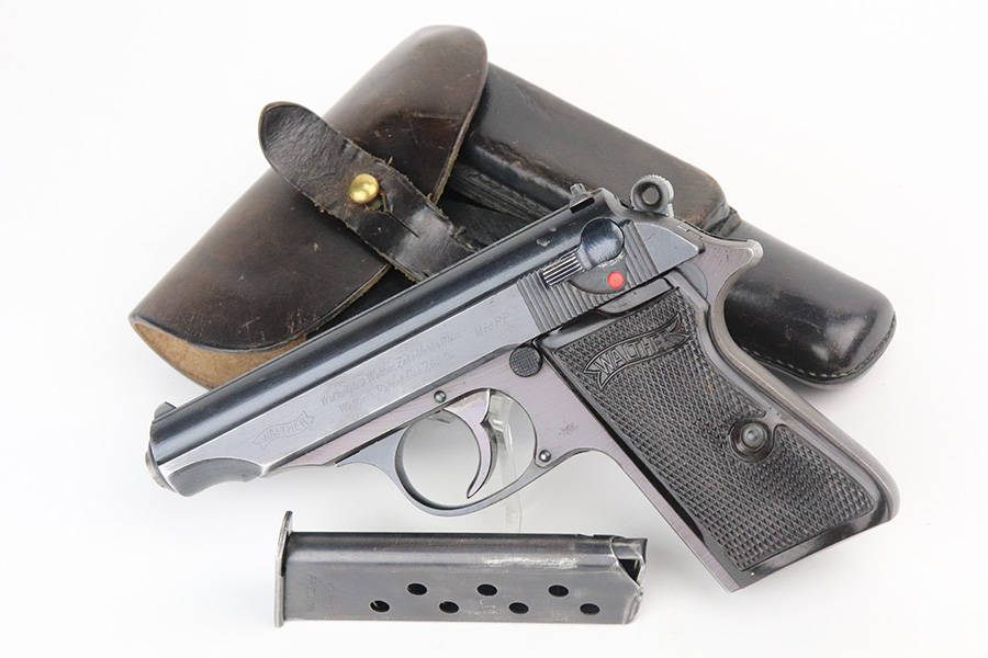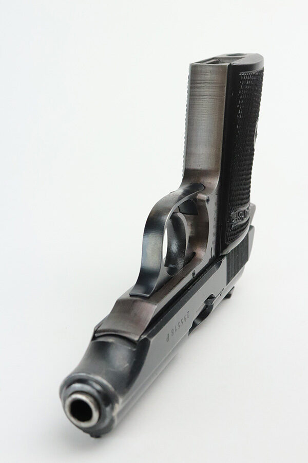 7/30/21 – This is an excellent example of a Walther PP issued to the Nazi military in 1943. The gun is all matching and has the proper “Waffen 359” military proofs. The rig comes with a nice early Akah holster. The gun has retained about 96-97% of its original finish. There are just hints of wear on around the high edges of the slide and some tiny handling marks here and there along the slide. Minor thinning and light brown patina on the straps. Comes with excellent grips and a proper wartime magazine. Minty bore.