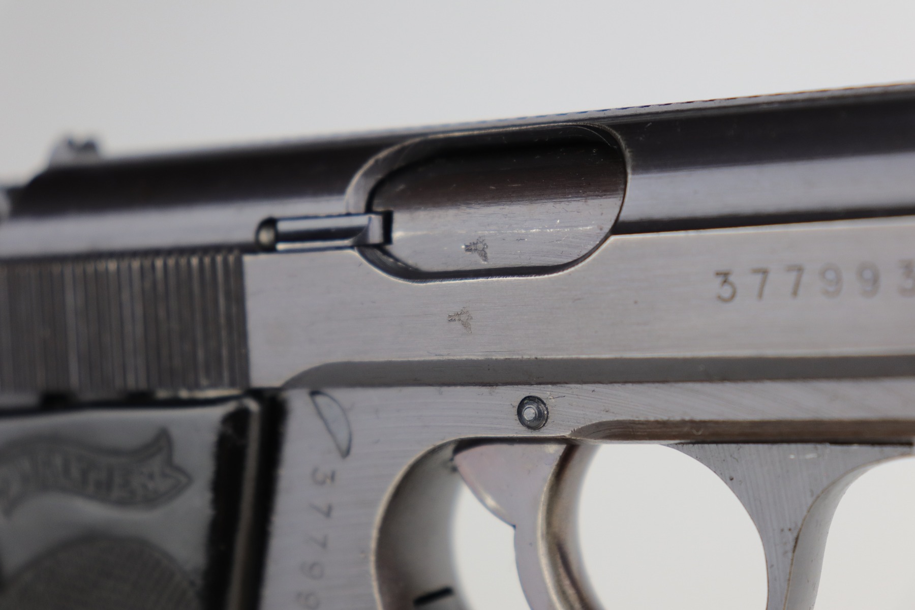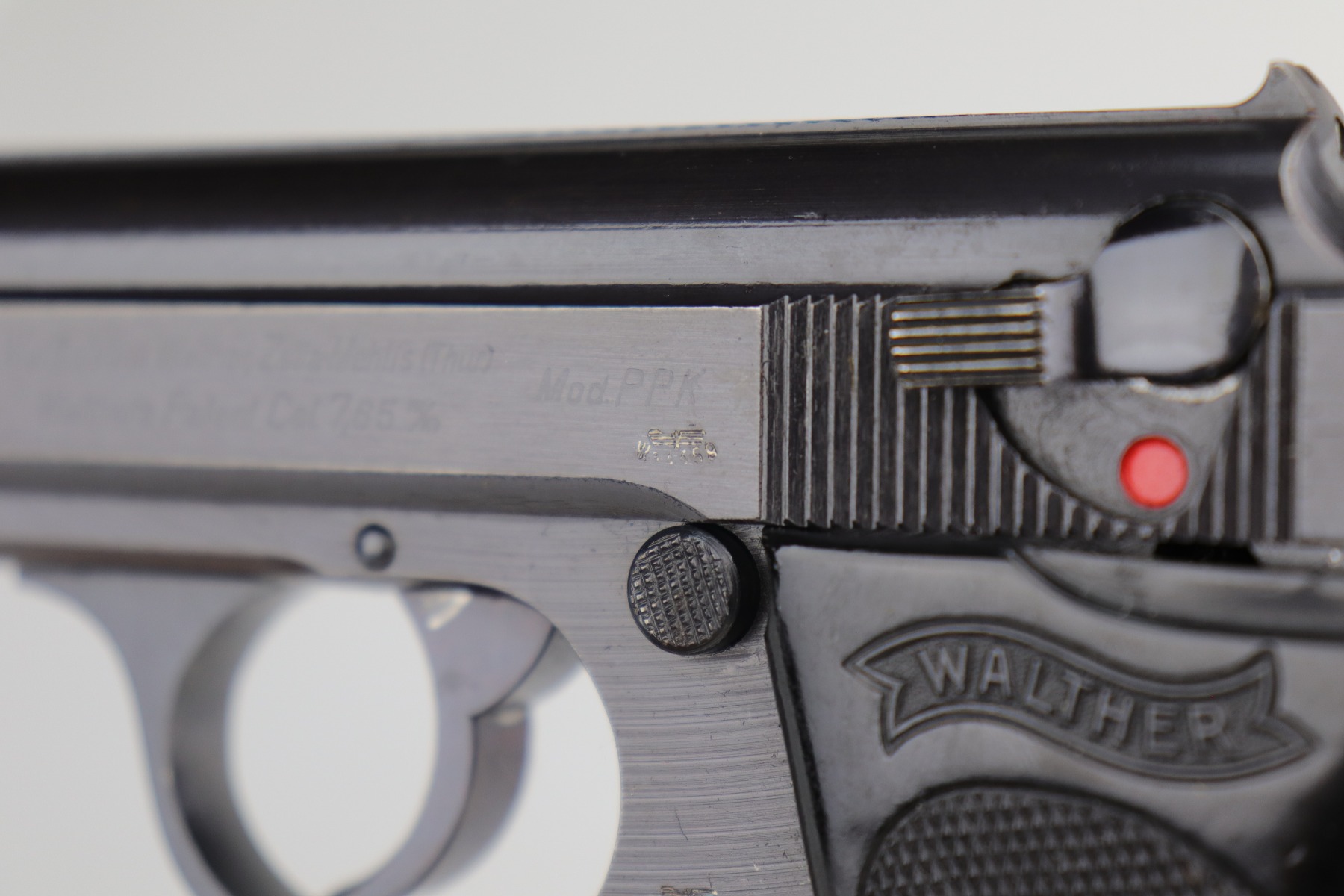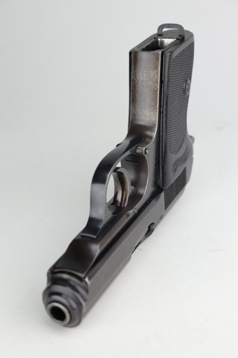 12/31/20 – This is an excellent example of a Walther PPK issued to the Nazi military around 1943. This one is matching and has the proper “Waffen 359” military proofs. It has retained about 95% of its original military blue. Most of the wear is on the front strap. The rest of the gun is minty. Just a hint of wear around the muzzle and some spotty patina on the front strap. It comes with a very nice black grip (small crack in the spine) and a period-correct magazine. The bore is mint.