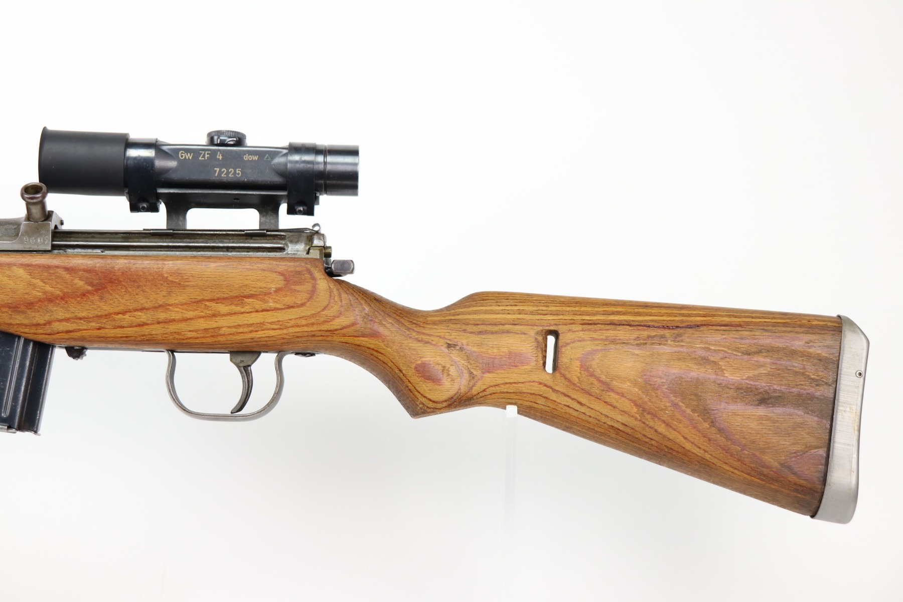 3/16/23 – This is an excellent example of a Walther K43 Sniper Rifle issued to the Nazi military in 1945. The gun is all matching and has waffen proofs throughout. It comes with a period correct ZF 4 scope (optics are a little cloudy) and a reproduction scope mount. The tightening lever on the mount is a little loose. The stock is unmarked and was likely sanded. The butt plate was replaced. The gun is in excellent condition. Most of the parts have a late-war phosphate finish but the barrel is blued. It is has retained most of its finish with minor wear around the muzzle and spotty oxidation on the phosphate parts (typical). The stock is excellent. Comes with an original cleaning rod and period-correct magazine. Minty bore – shiny with strong rifling.