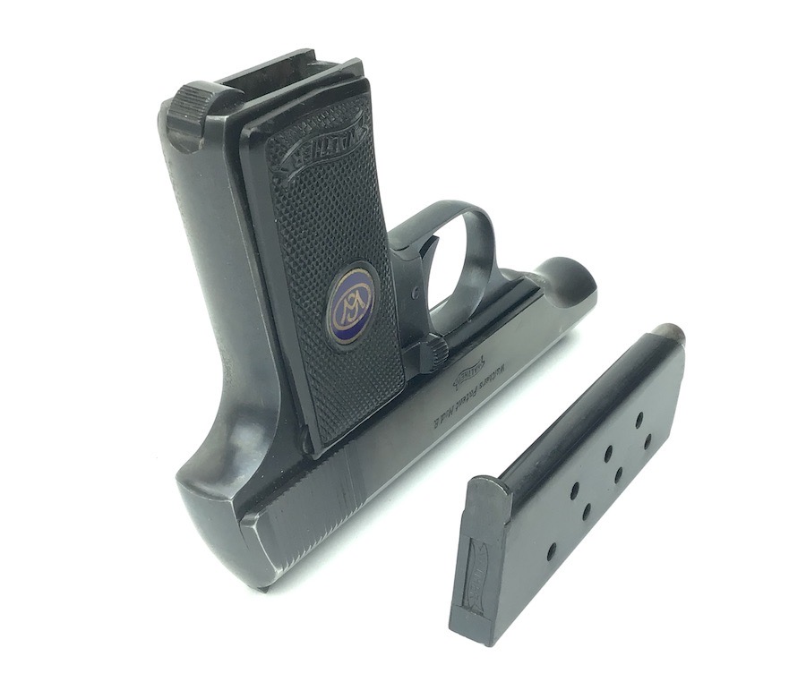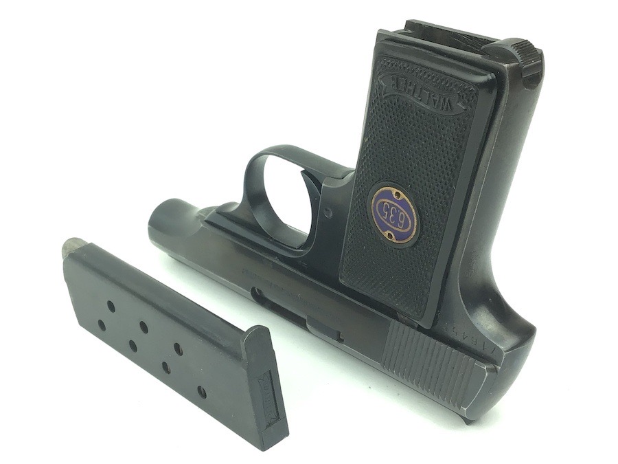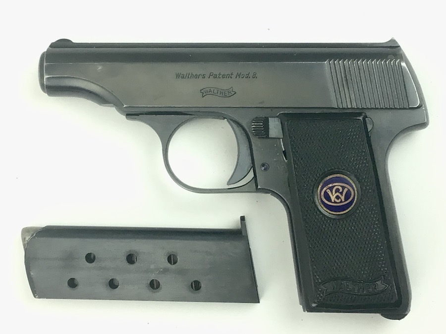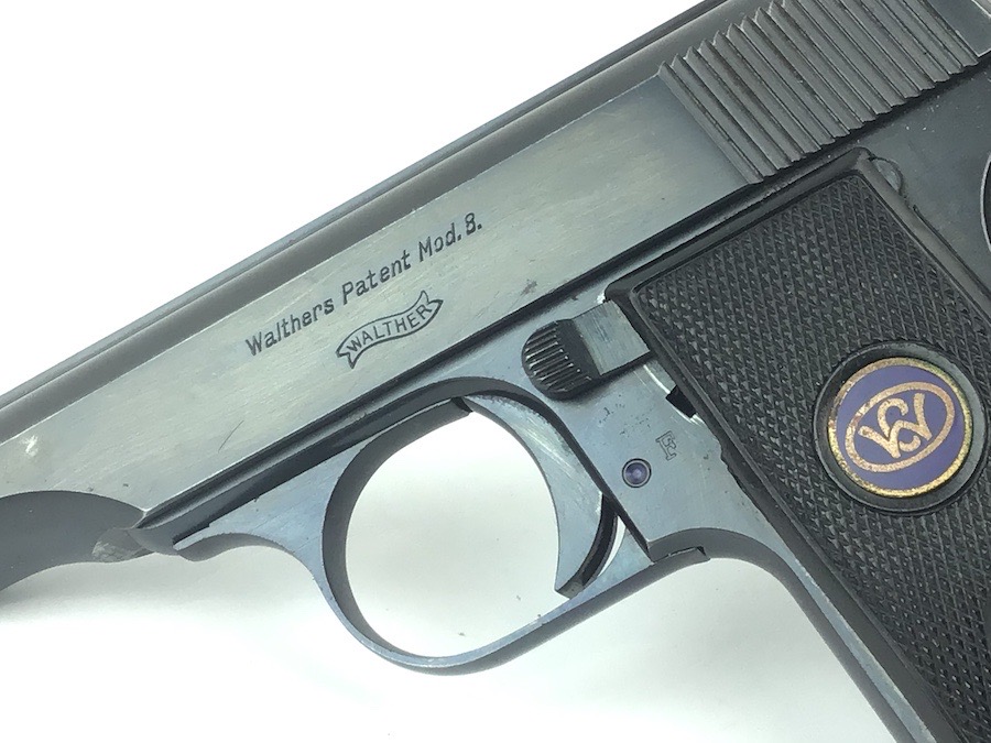 11/9/22 – This is an excellent example of a Walther Model 8, manufactured in 1920-26. This one is all matching and has retained about 97% of its original bluing. There is just a a hint of wear around the high edges and one small area of discoloration on the left and right side of the slide, up near the muzzle. Excellent straps. Comes with excellent grips and a proper magazine. The bore is excellent – shiny with strong rifling.