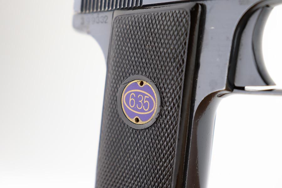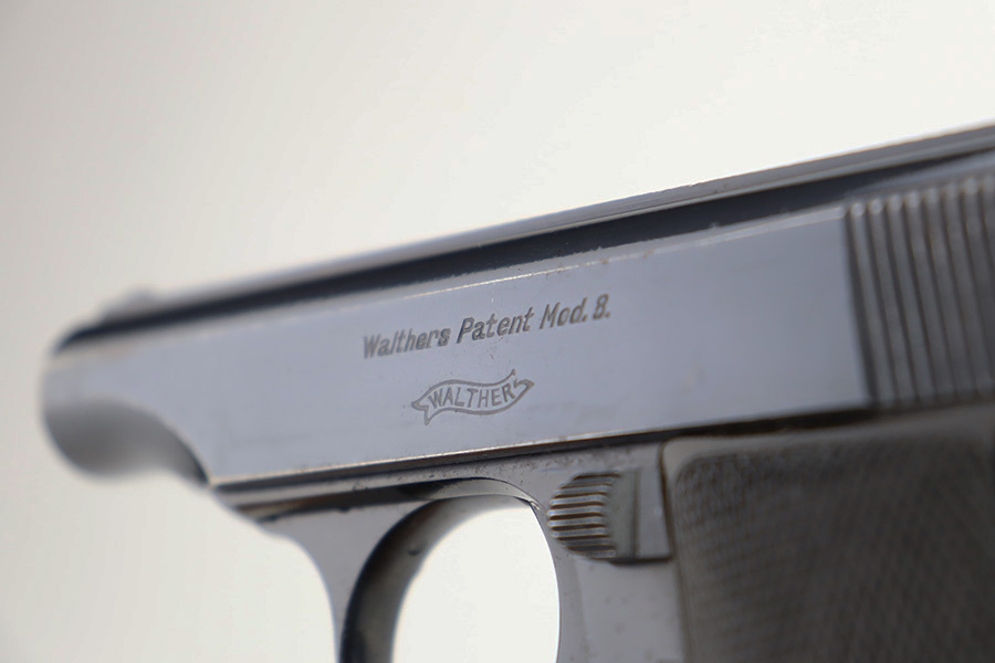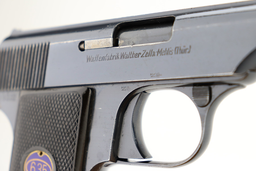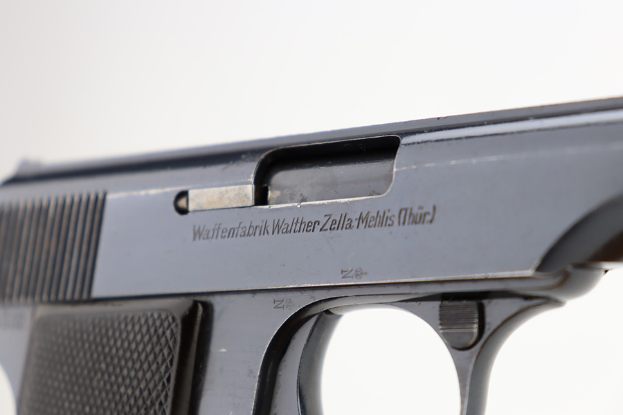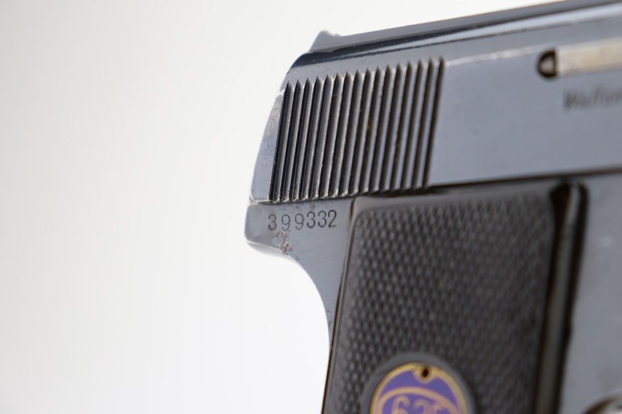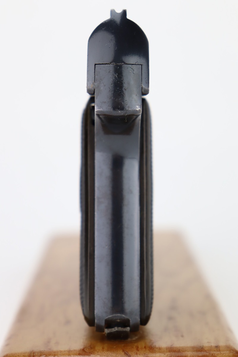 12/8/23 – This is an excellent Walther Model 8 sold in the commercial market in the 1920’s. All matching with the proper “Crown N” proofs. The original finish rates about 97% with just very minor high edge wear and some very light pin-pricking on the grip straps and on the right side of the slide. Fitted with excellent period-correct bakelite grips and comes with one proper “Walther” banner magazine. The bore has good rifling, but there is minor fouling in the grooves. Marked “MADE IN GERMANY”.