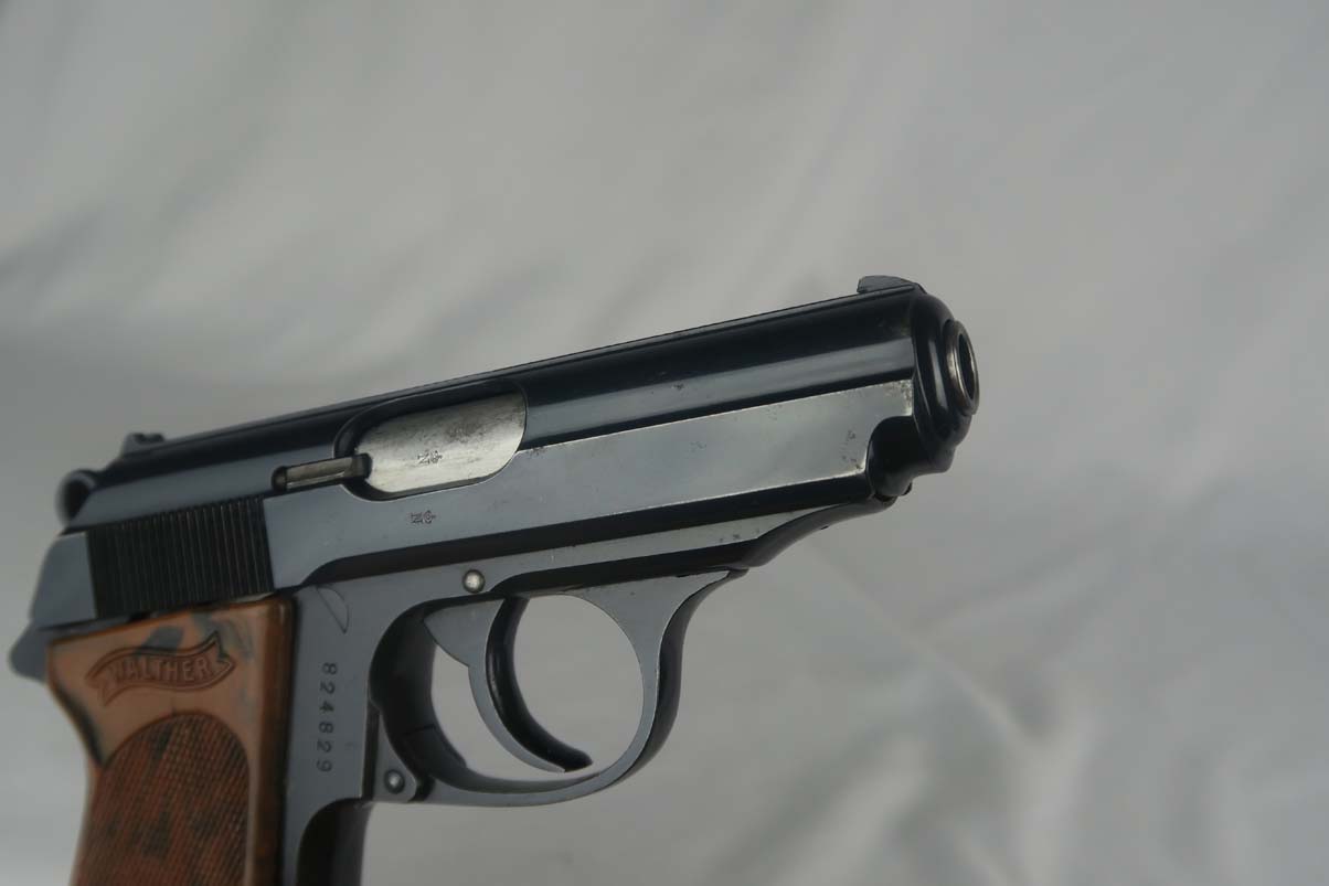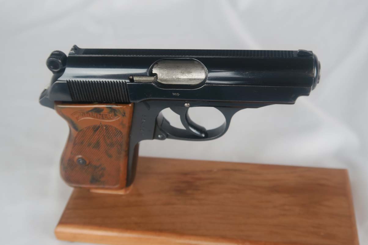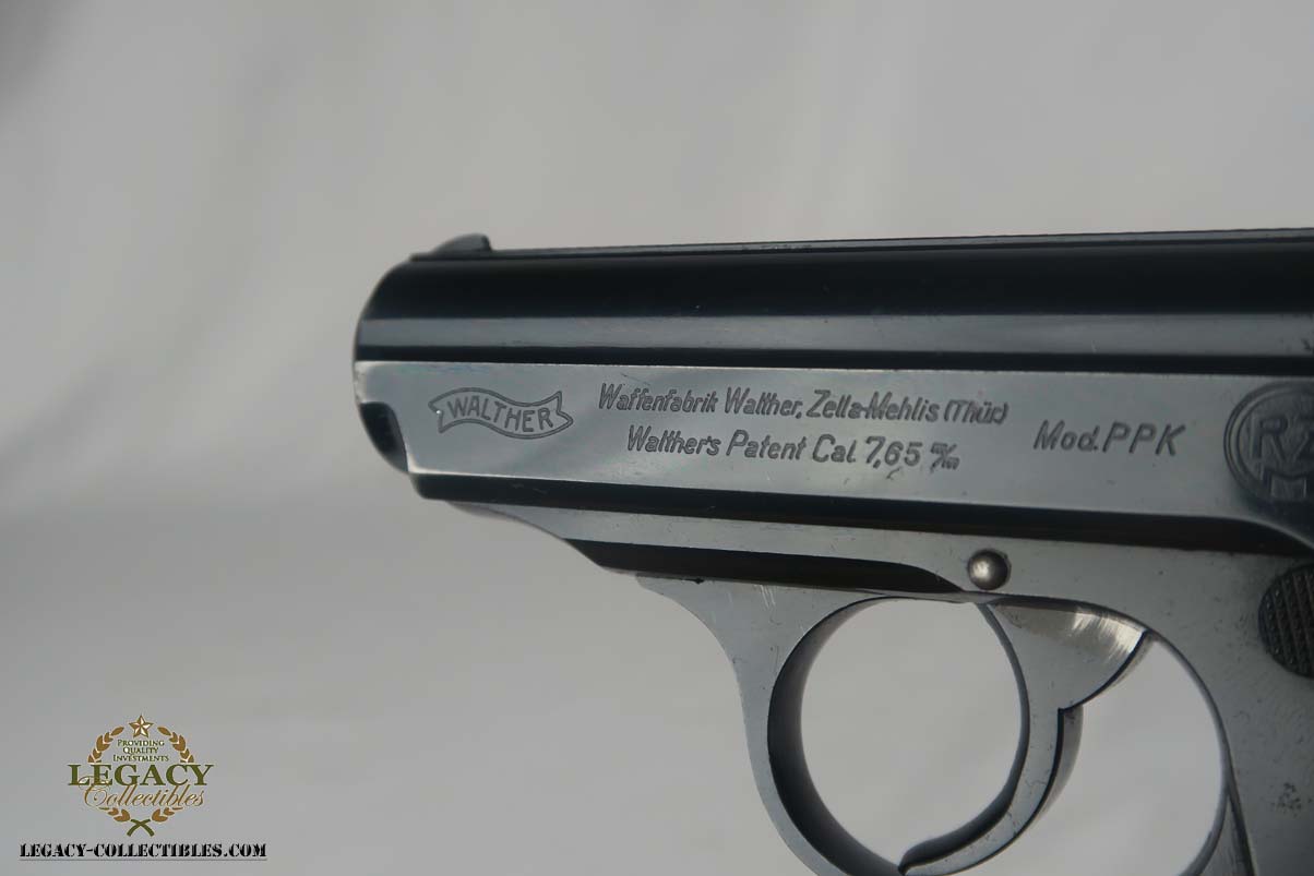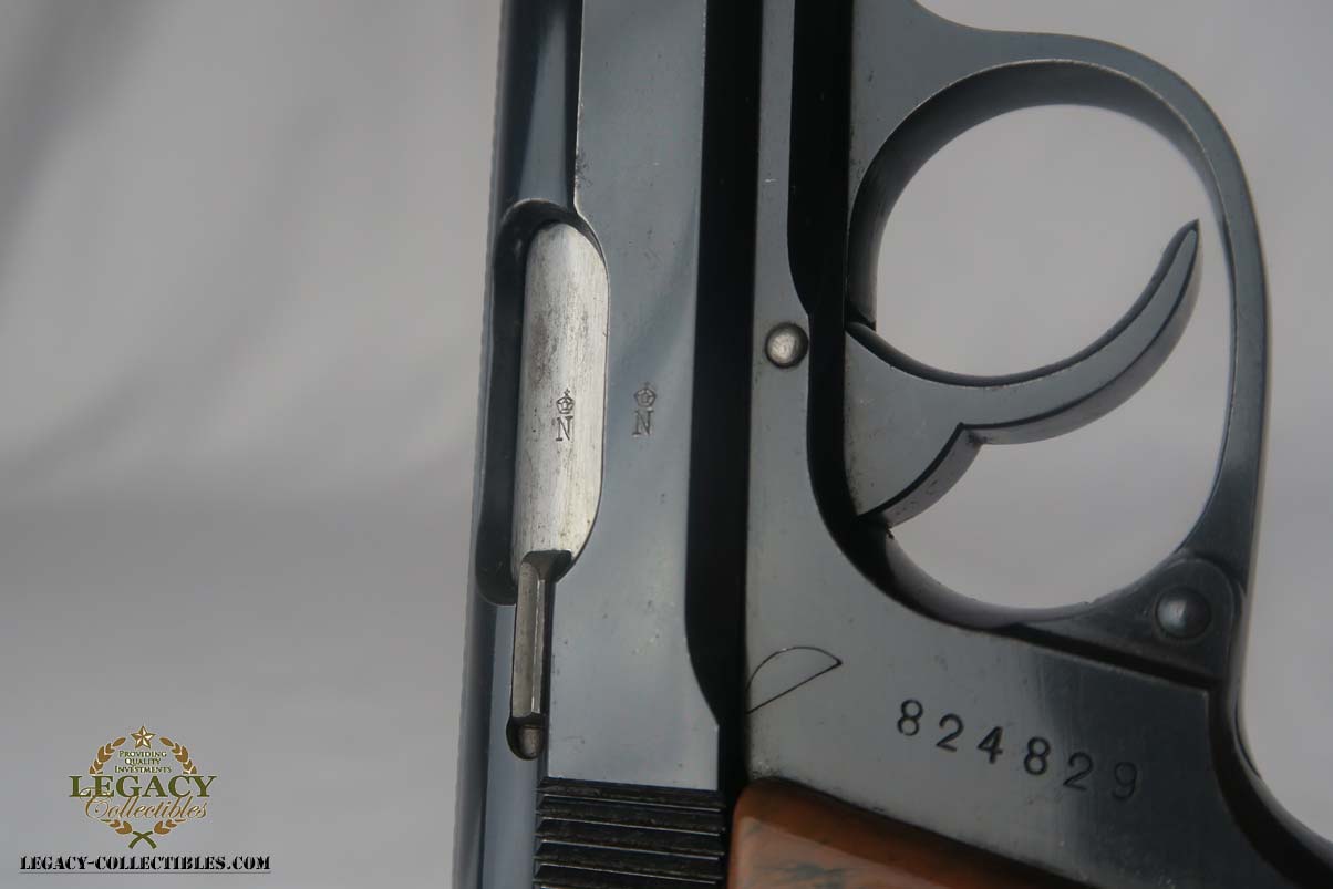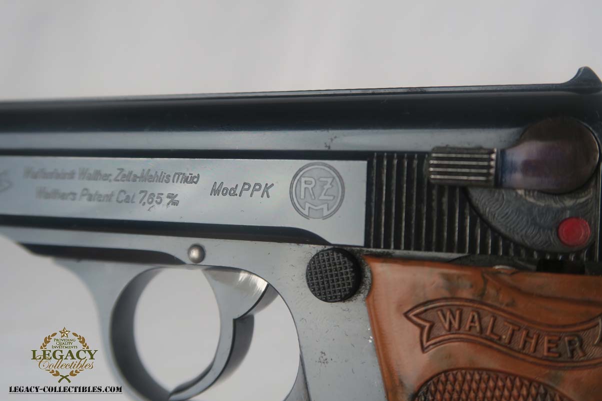 6/6/17 – This is an excellent RZM marked Walther PPK, in about 98% original condition. The RZM(Reichs Zeug Meisterei) was the equipment office of the NSDAP and was established to contract for equipment, weapons and uniforms for use by the Nazi party. These items had to have official RZM approval since no firm could manufacture, sell or deal in party items without this official approval. There are many who think the RZM PPK’s are times carried Party Leader grips, as a a handful have been recorded with such. The wear on this specific pistol can mostly be found near the muzzle on either side of the slide. The grip and finger extension magazine are in excellent condition. Early grip screw correctly goes from left to right. Minty bore.