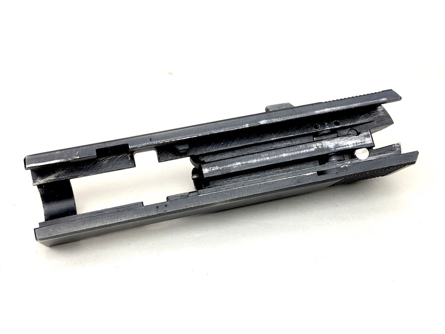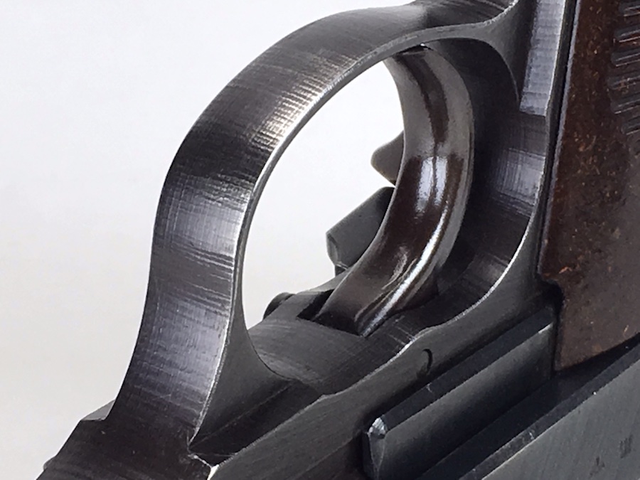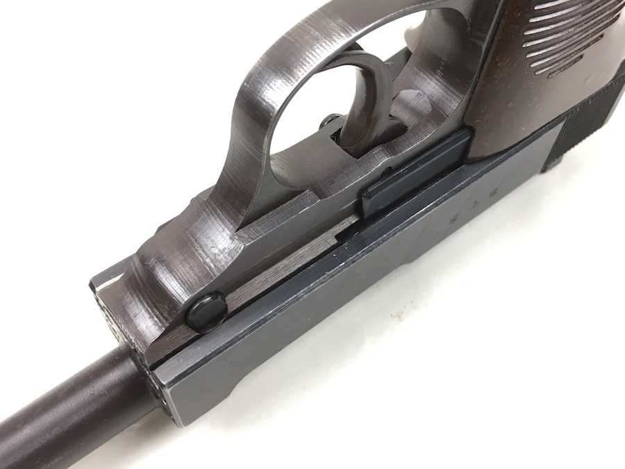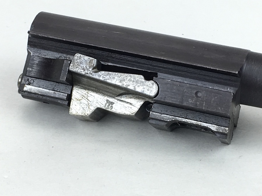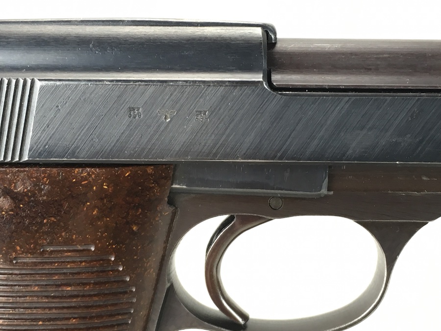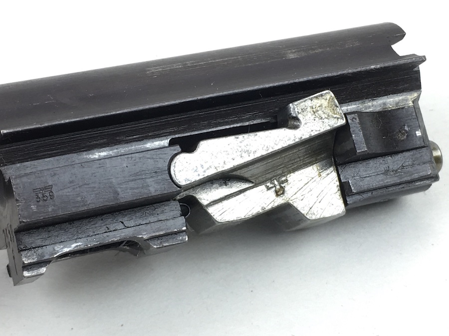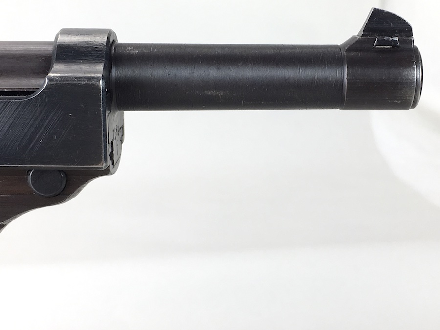 8/26/19 – This is an all matching and original Walther P.38 from 1944. Nice plum hue to the frame. There’s maybe 2-3% wear on slide and barrel. Typical muzzle wear and light edge wear. The front grip strap is excellent. Overall, this pistol has the rougher, late-war finish so it’s difficult to grade. Excellent, shiny bore. Fantastic reddish Walther grips. Walther magazine. All correct parts and fully functional.