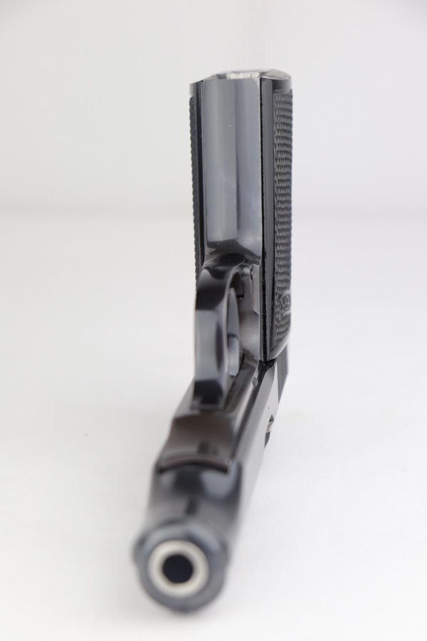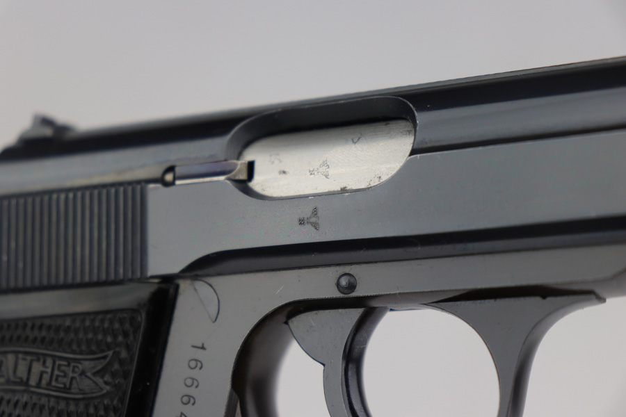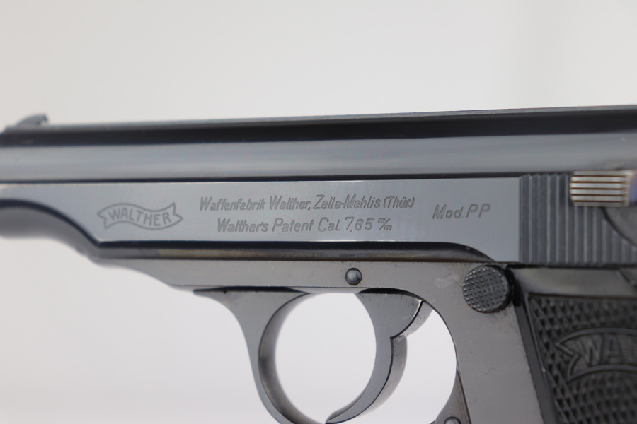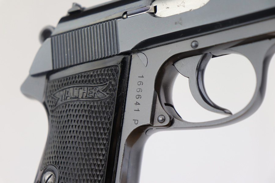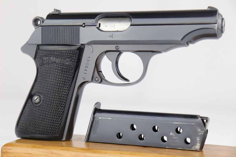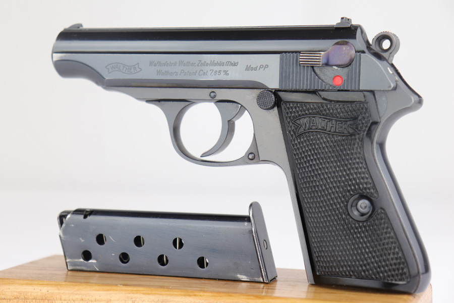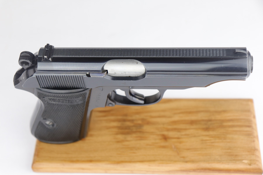 4/19/19 – This is a beautiful commercial Walther PP made during 1940. The high polish finish is excellent with minty straps and the only notable wear being some finish loss near the muzzle end of the slide. The bore is shiny with excellent rifling and only a hint of use wear. Period correct grips have no cracks or warping. Smooth operation and a wonderful, straight forward wartime example.
