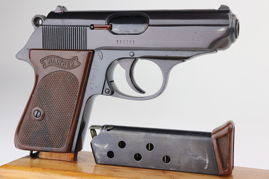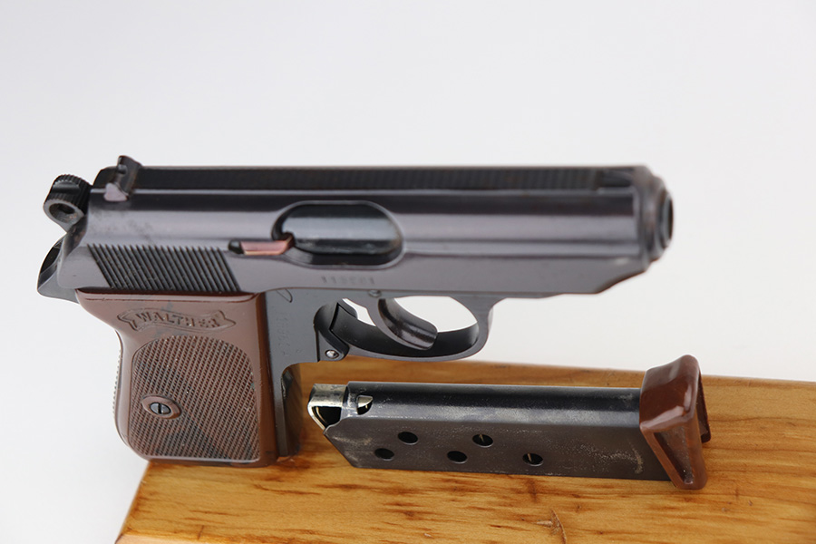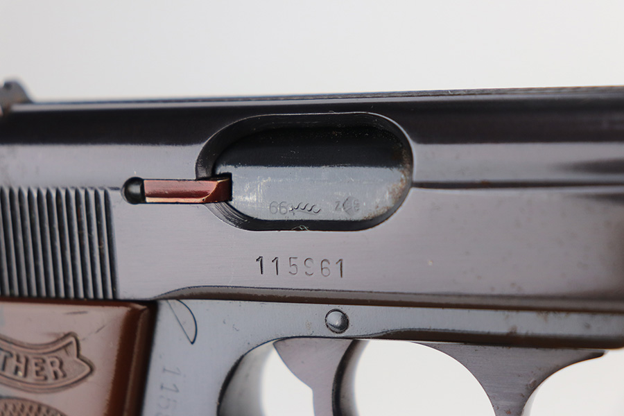 8/11/21 – This is a near-mint Walther PPK in 9mm Kurz that was made in 1966. It has been used sparingly, and has just a hint of high edge wear. There is some oxidation on the right side of the slide, and slight dulling of the finish. Strong, shiny bore. No import marks. Excellent grip and finger extension magazine. C&R eligible.