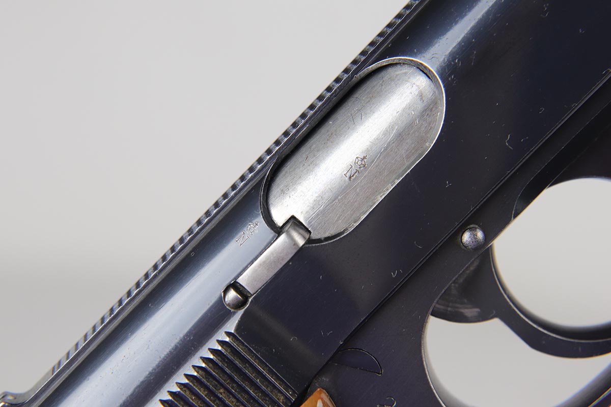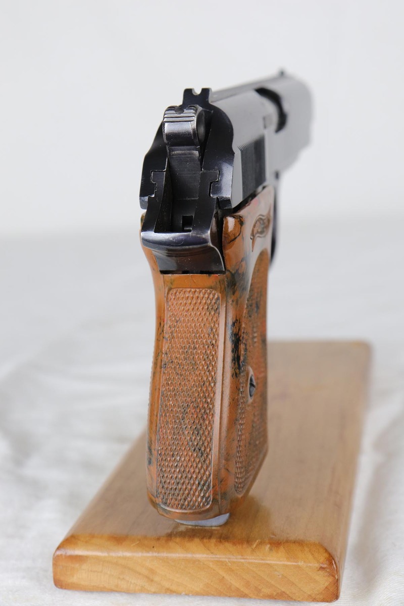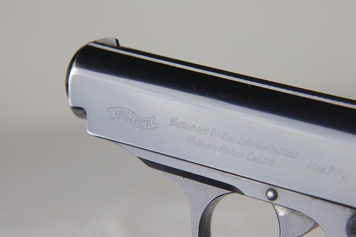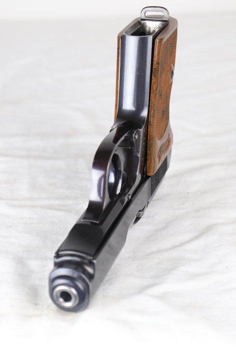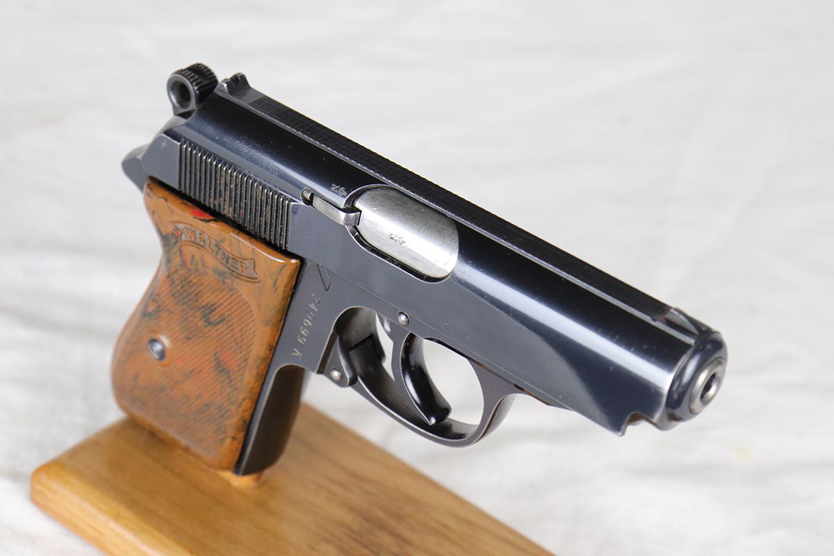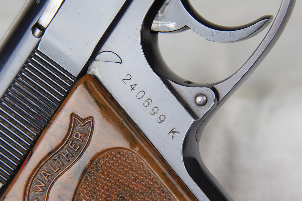 5/11/18 – This is a gorgeous Walther PPK from the Nazi era that is chambered in .22 caliber and produced for the commercial market. The high-polish blue rates at 97-98% with minor muzzle wear and thinning on the front strap. Excellent grip and rare 7-hole magazine. Minty bore.