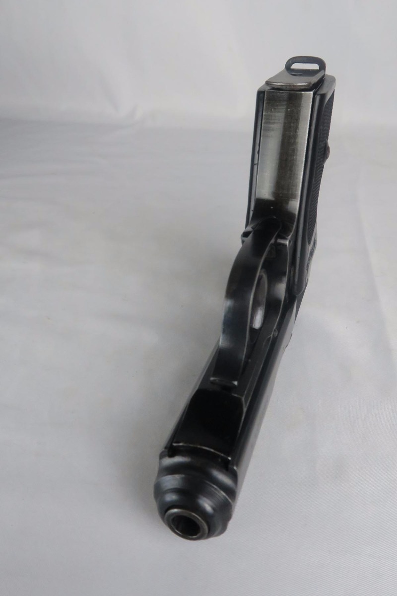 10/27/17 – This is a beautiful Walther PPK with duraluminum frame, manufactured in 1943. The slide is near-mint, but the front strap shows some of the aged color where the duraluminum appears to turn greenish. This is common for these pistols. The black grip has a thin crack on the right side, and the pistol comes with a very nice wartime magazine. Excellent bore, shows only minor use.