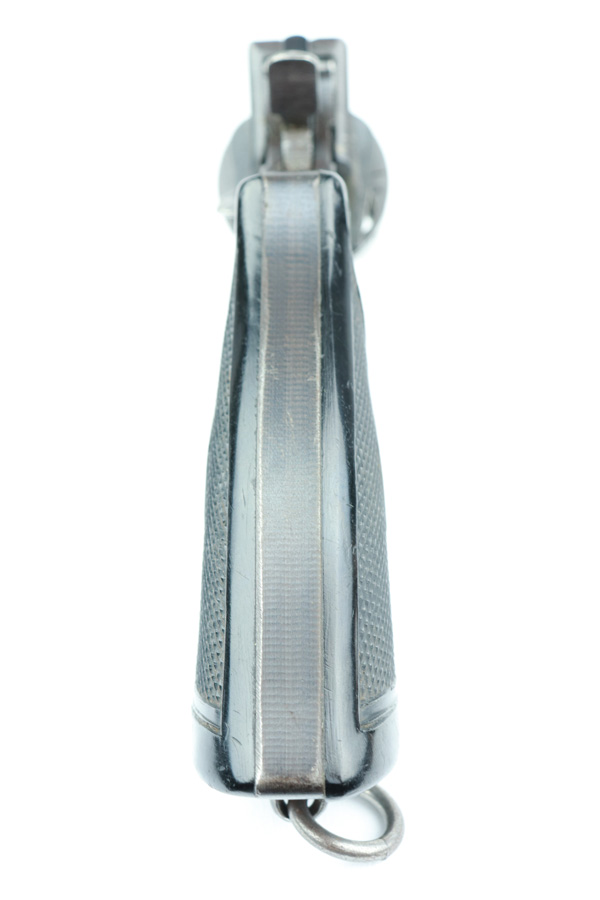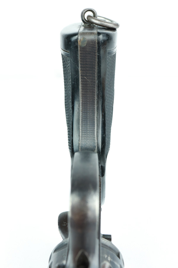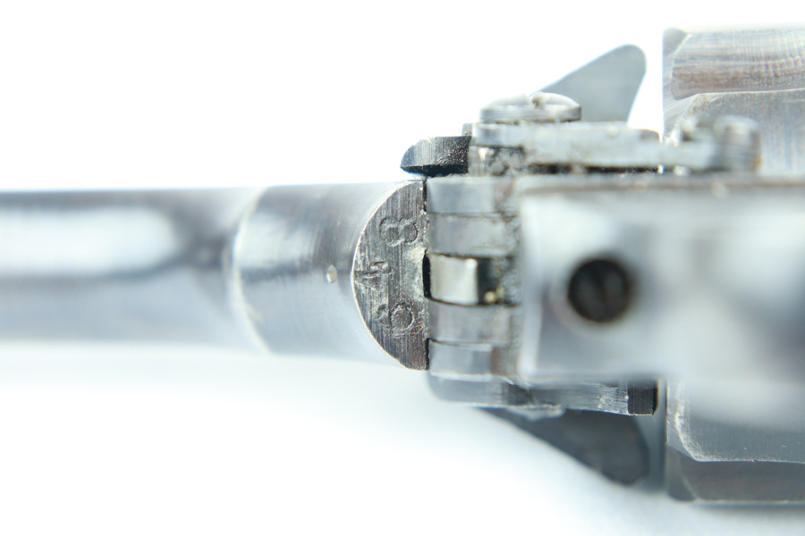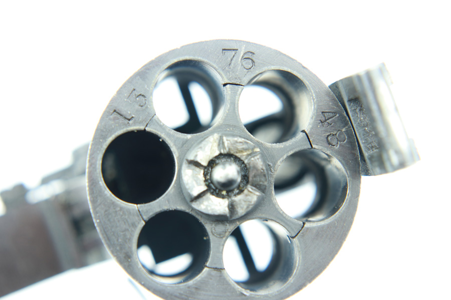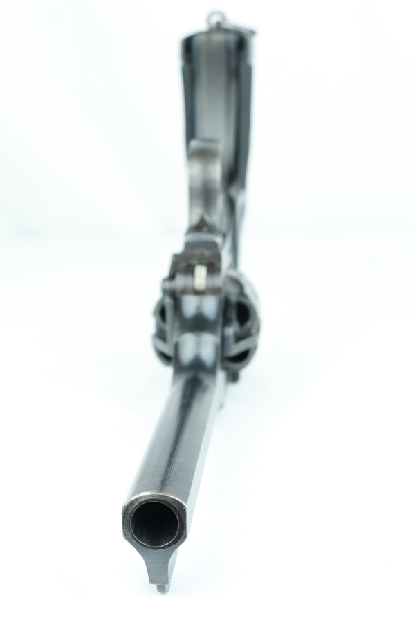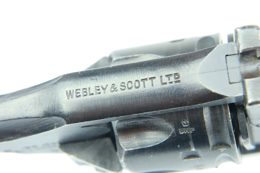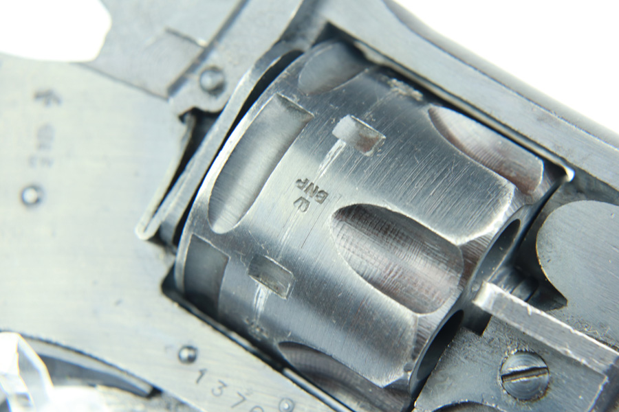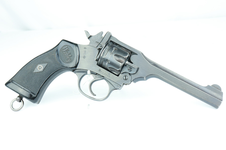 11/7/18 – This is an excellent and all matching Webley Mark IV revolver from 1944. This British revolver was manufactured for the war and chambered in .38 caliber. The original military style bluing rates at 98% with minor muzzle and edge thinning. Excellent bore. Grips show minor scuffs, scratches and dings but no chips or cracks. All original and matching.