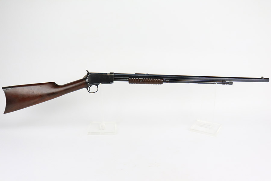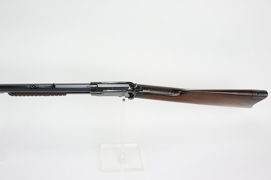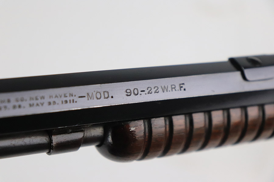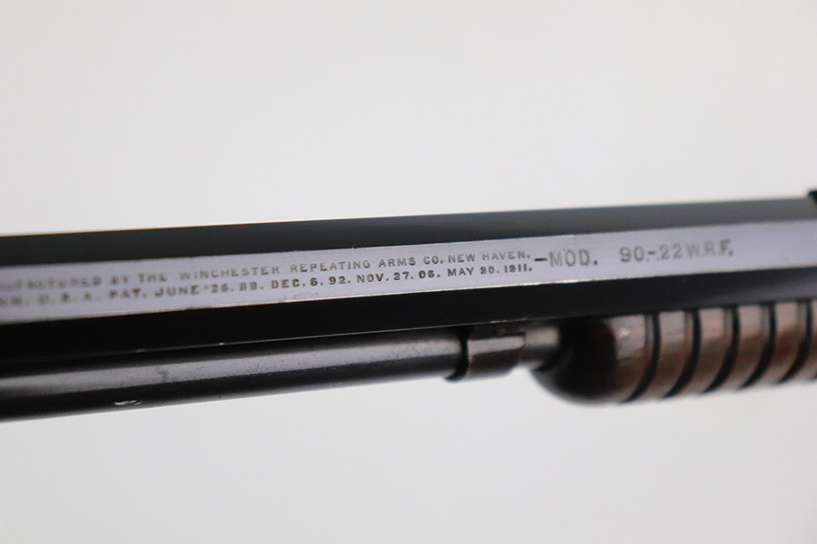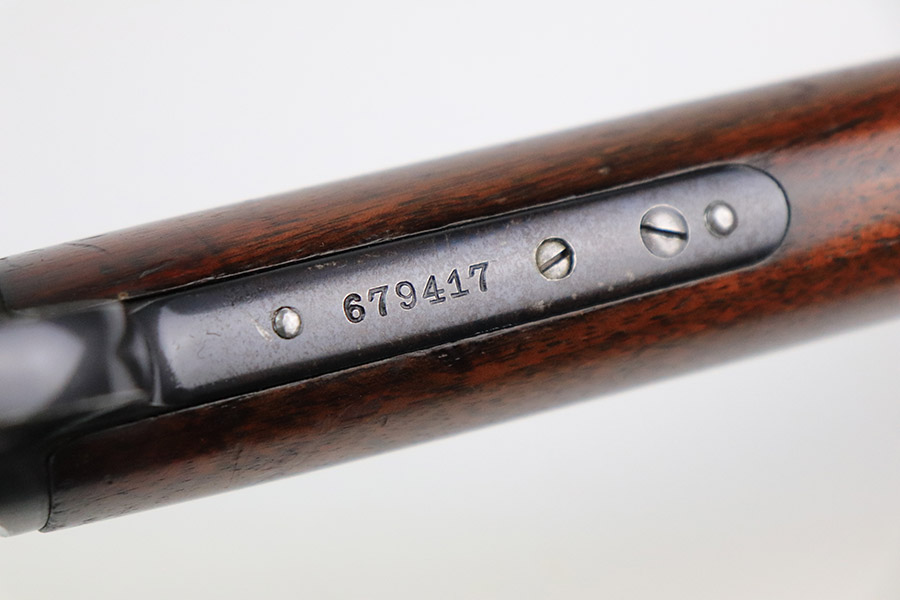 11/1/22 – This is an excellent Winchester Model 1890 from ~1925. It retains 95% of the original blue with excellent wood. Strong, clear markings. Original sights. Excellent bore with a little intermittent frost. Matching and original with smooth action.