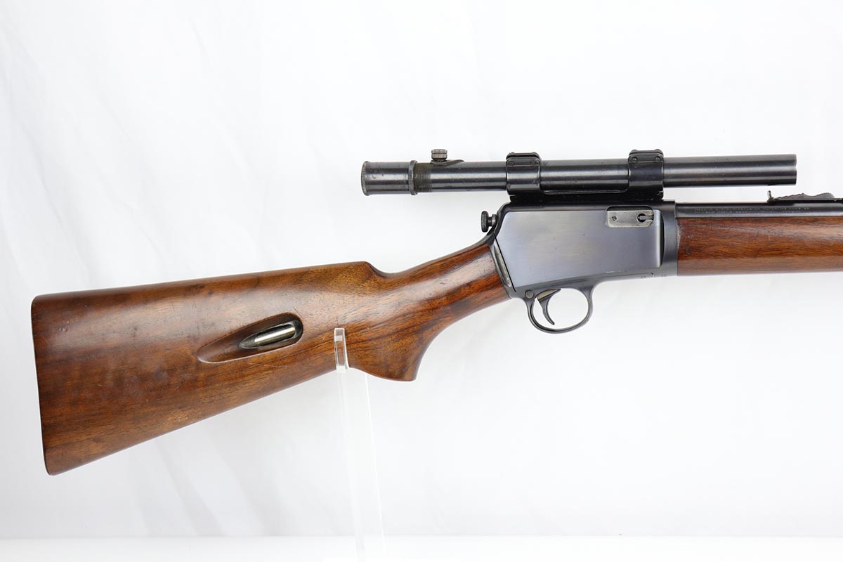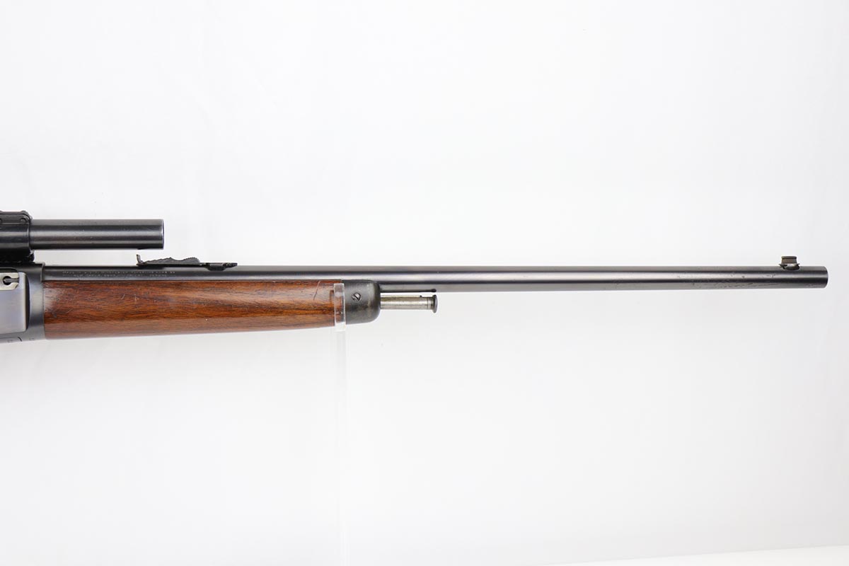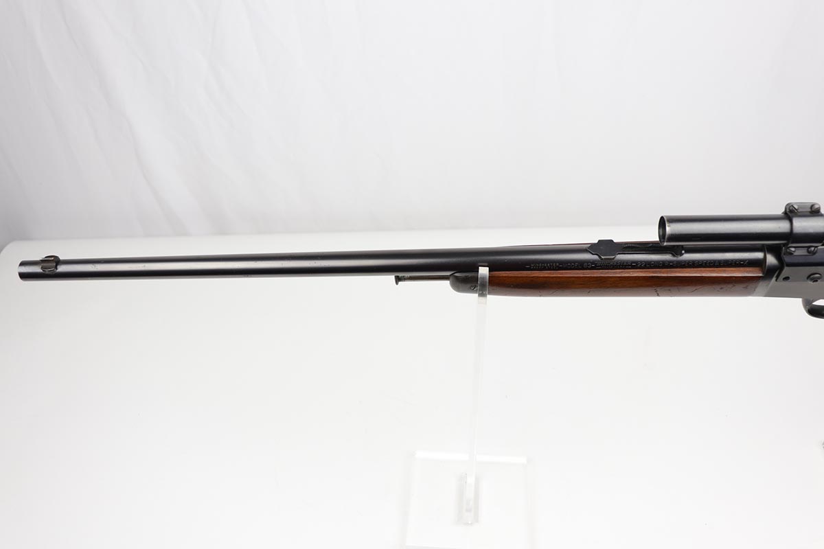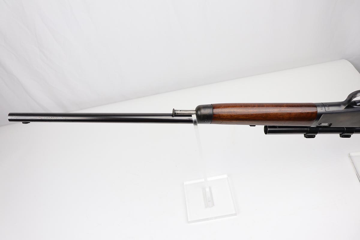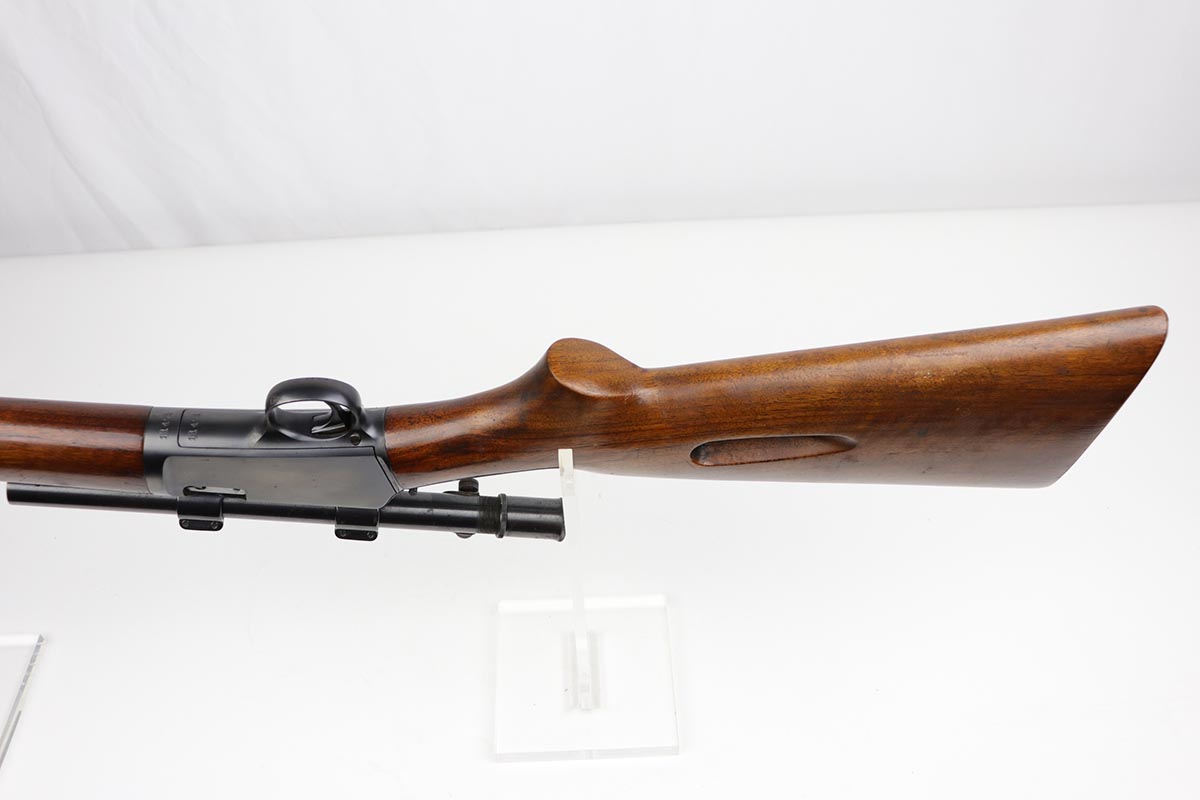 8/24/22 – This is a near-mint example of a scarce Winchester rifle from the 1930s. This is an early example of the Model 63 Carbine with 20 inch barrel, which was only produced from 1933-1936. The gun is in fantastic, original condition, with minor finish loss near the muzzle but minty finish otherwise. The stock is in excellent shape with minor nicks or scuff but no cracks or chips. The receiver was drilled/tapped to mount the Weaver model 29s scope that is currently attached. Optics are perfect, as is the bore. Blue book has the value of a 98% Carbine example at over $2k.