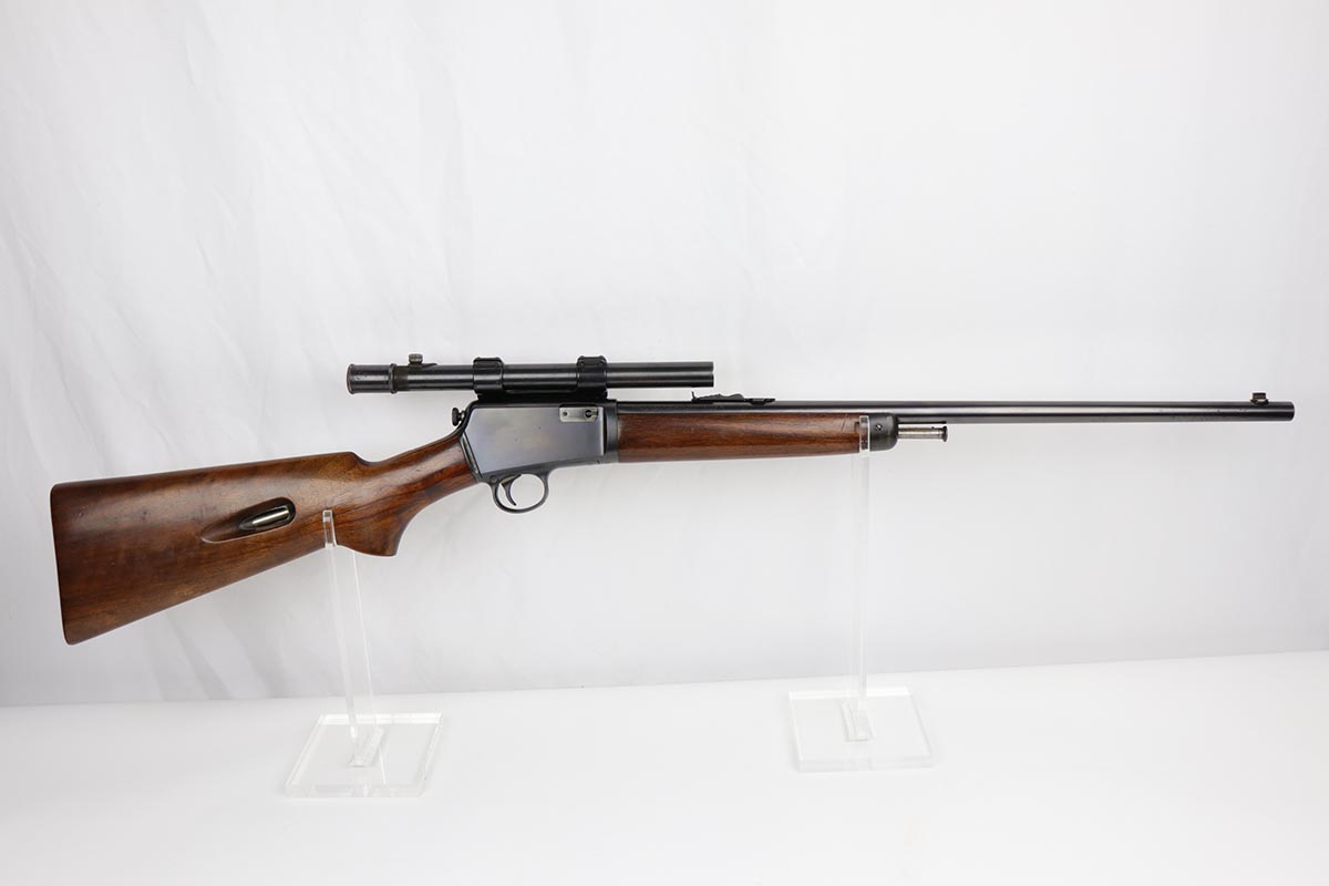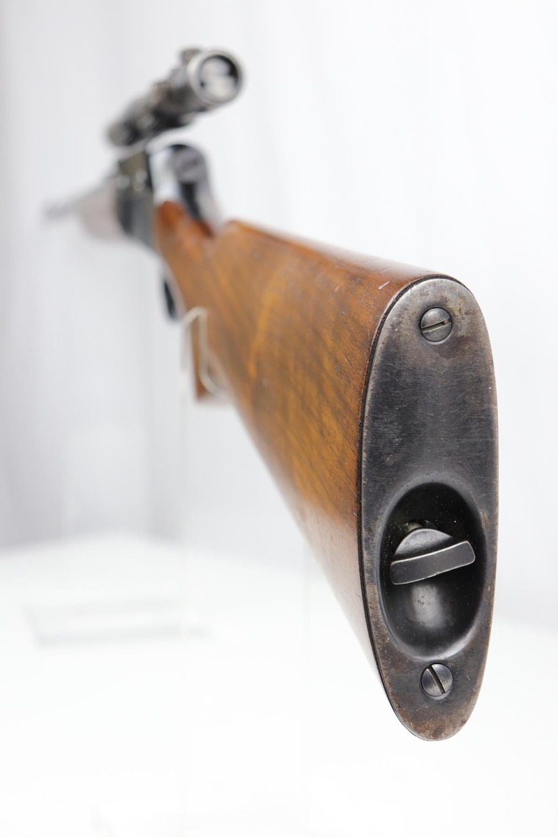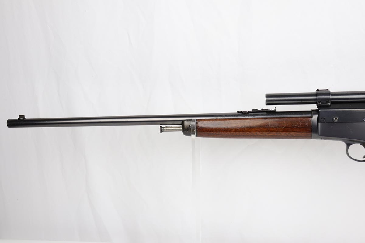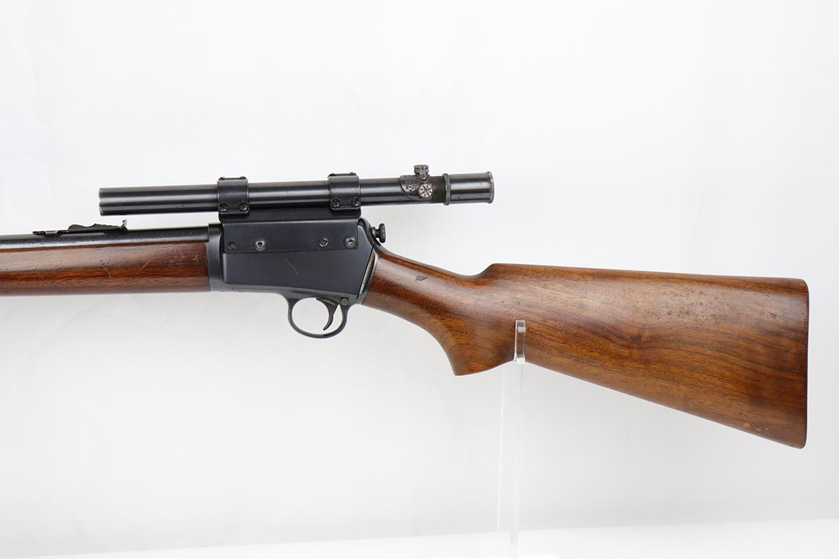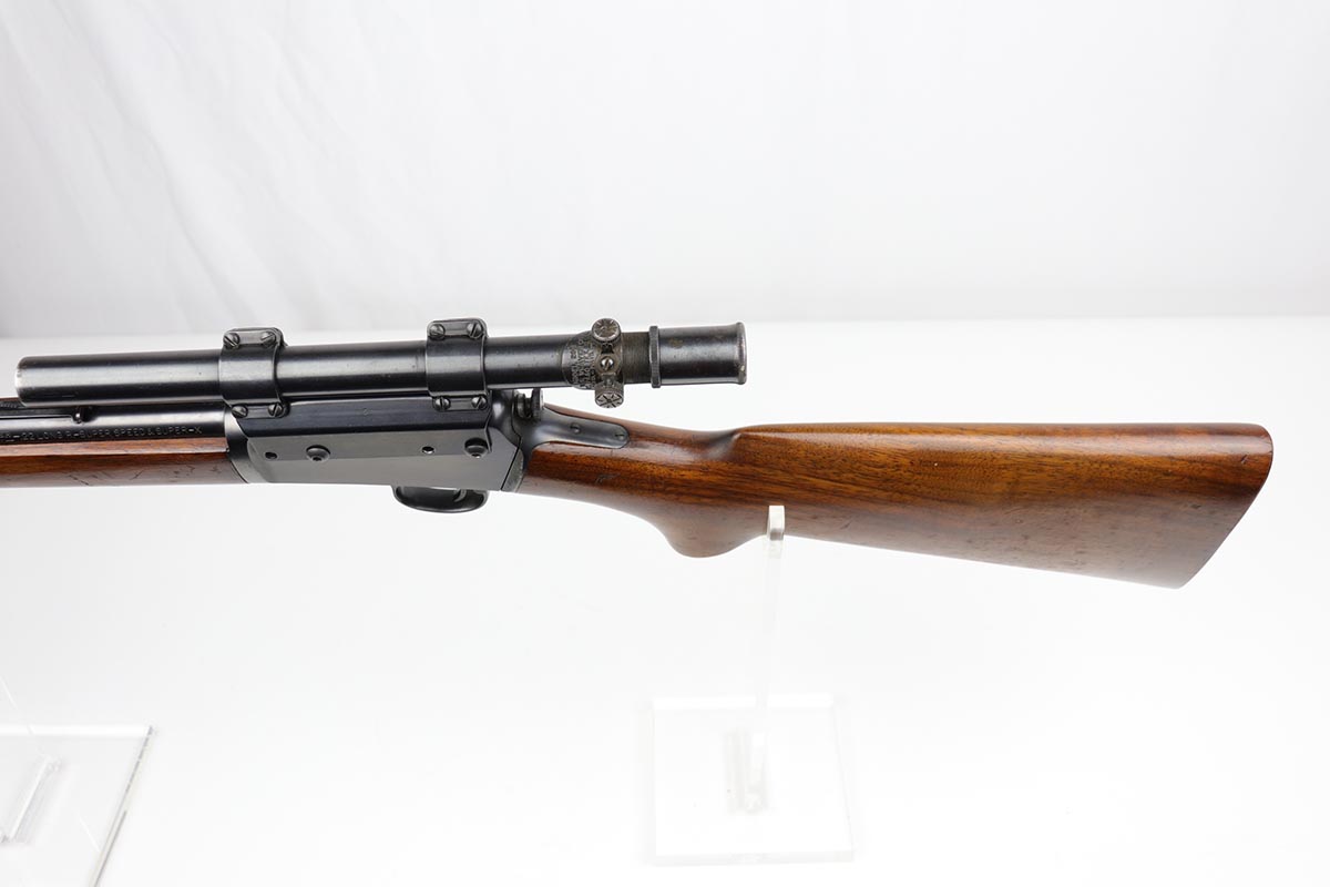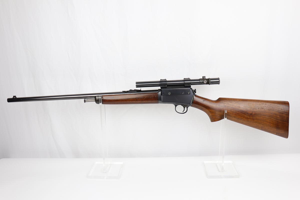 8/24/22 – This is a near-mint example of a scarce Winchester rifle from the 1930s. This is an early example of the Model 63 Carbine with 20 inch barrel, which was only produced from 1933-1936. The gun is in fantastic, original condition, with minor finish loss near the muzzle but minty finish otherwise. The stock is in excellent shape with minor nicks or scuff but no cracks or chips. The receiver was drilled/tapped to mount the Weaver model 29s scope that is currently attached. Optics are perfect, as is the bore. Blue book has the value of a 98% Carbine example at over $2k.