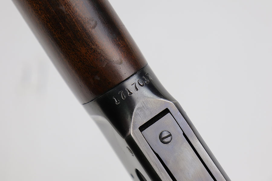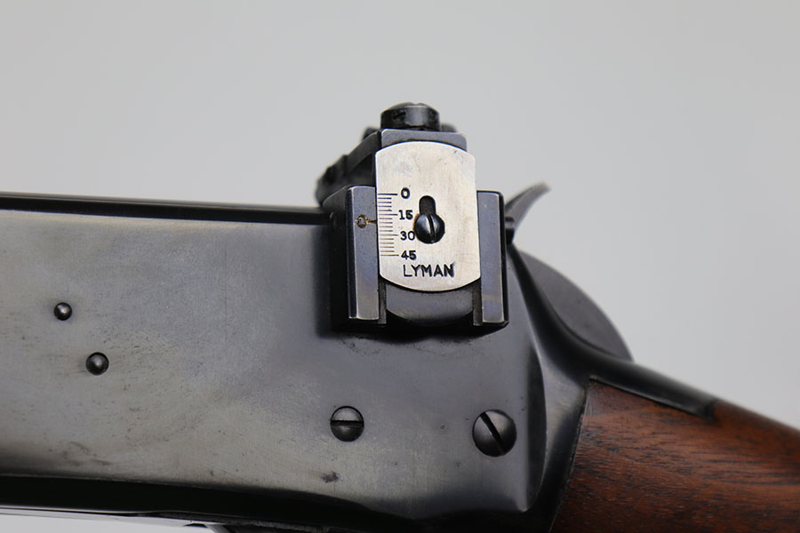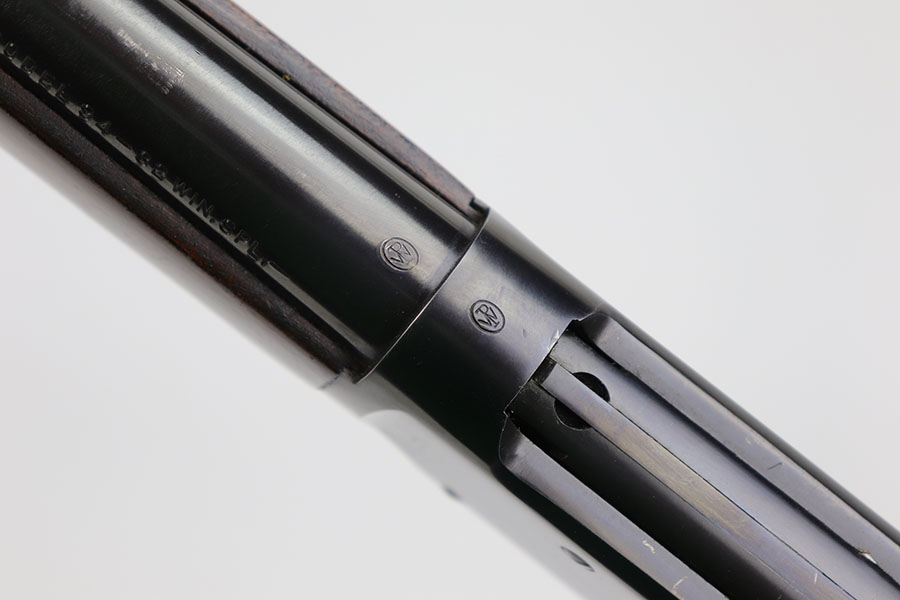 10/7/20 – This is an excellent Winchester Model 94 that was made in 1950. It has about 96-97% of the original blue, with most of the finish loss toward the front of the barrel and magazine tube around the barrel ring. There’s also a minor hint of finish loss along the top of the barrel, closer to where it meets the receiver. A Lyman 66A adjustable target sight has been added to the rear and the factory rear sight removed. Excellent bore. Minty stock. Smooth mechanically.