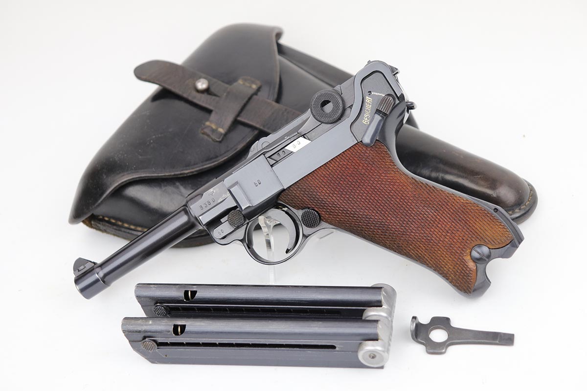 SOLD – Exceptional 1942 Police Mauser Luger Rig – Two Matching Magazines