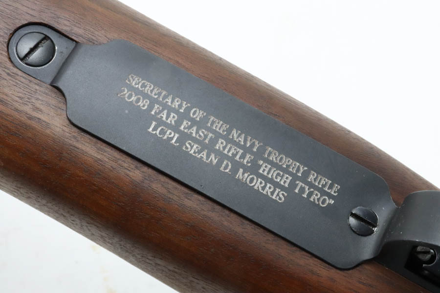 9/17/2024 – For sale is a very rare Remington Model 40-X rifle made in 1958. These USMC training rifles were also used as Navy Trophy rifles that were presented to USMC members that won shooting competitions. In this case, it appears the rifle was presented to LCPL Sean D. Morris in 2008 for winning the 2008 Far East division matches. The rifle has an excellent military-blue finish on the receiver and barrel. The stock is in equally nice condition without any cracks or breaks. The rubber buttpad is fairly worn and missing some chips. The barrel date is stamped “P E” for June of 1958. The bore is very bright with great visible rifling.