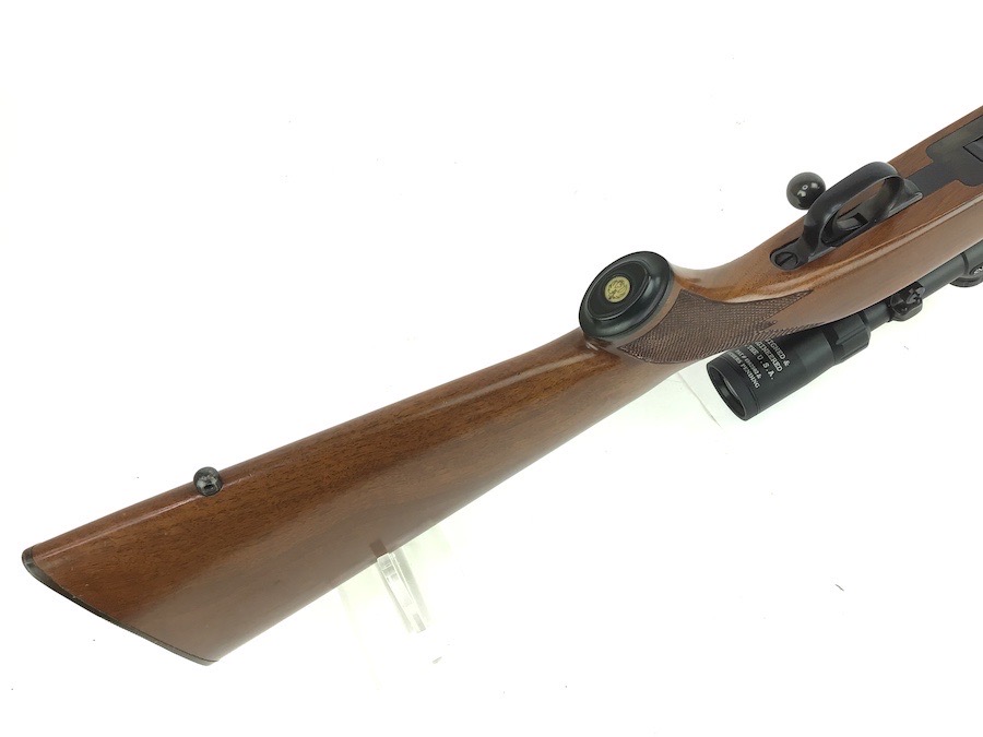 3/12/24 – Minty condition, Ruger Model 77/22 chambered in .22 LR. Finish rates a strong 99% – 100% with beautiful wood stock. Appears to never have been fired, although we believe it has been fired in the past. This rifle features a Simmons 3 – 9×40 Blazer scope. The scope is excellent as well and has crystal clear optics. The bolt action is super smooth and fully functional. An exceptional piece that is nearly 40 years old.