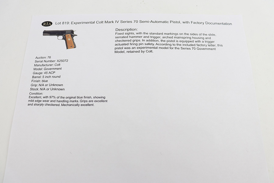 SOLD – Experimental Colt Government Model Series 70 – .45 ACP