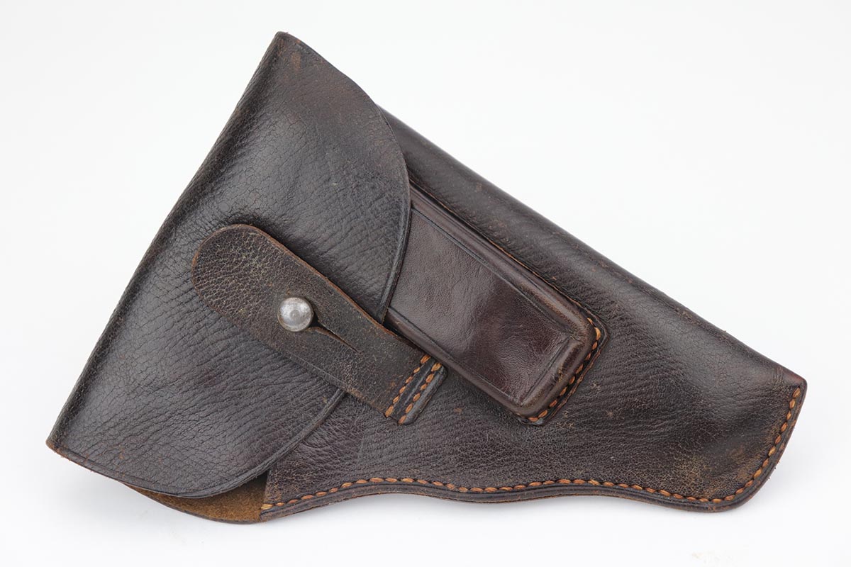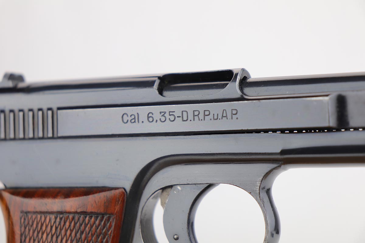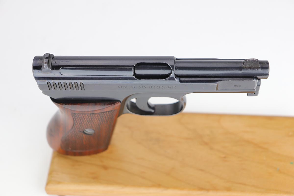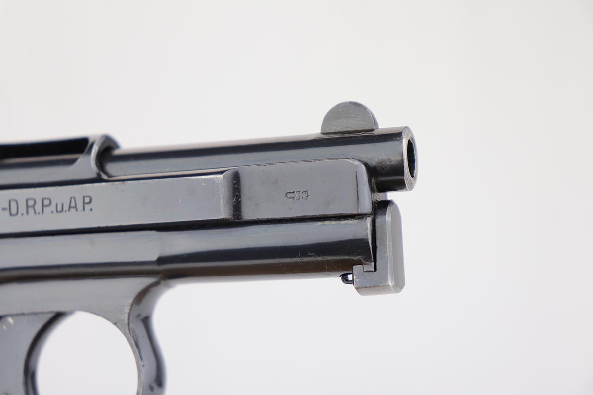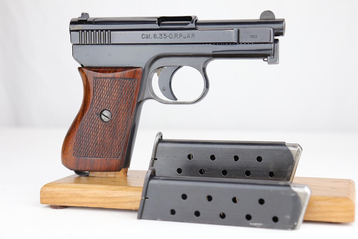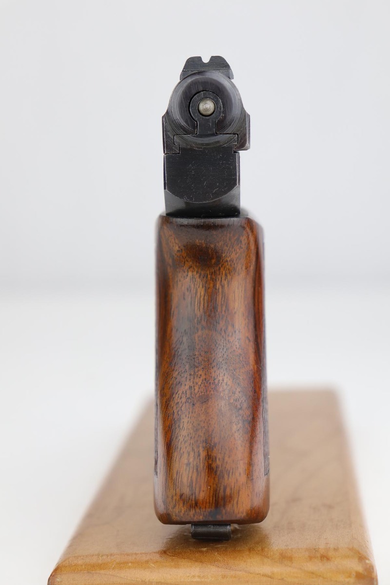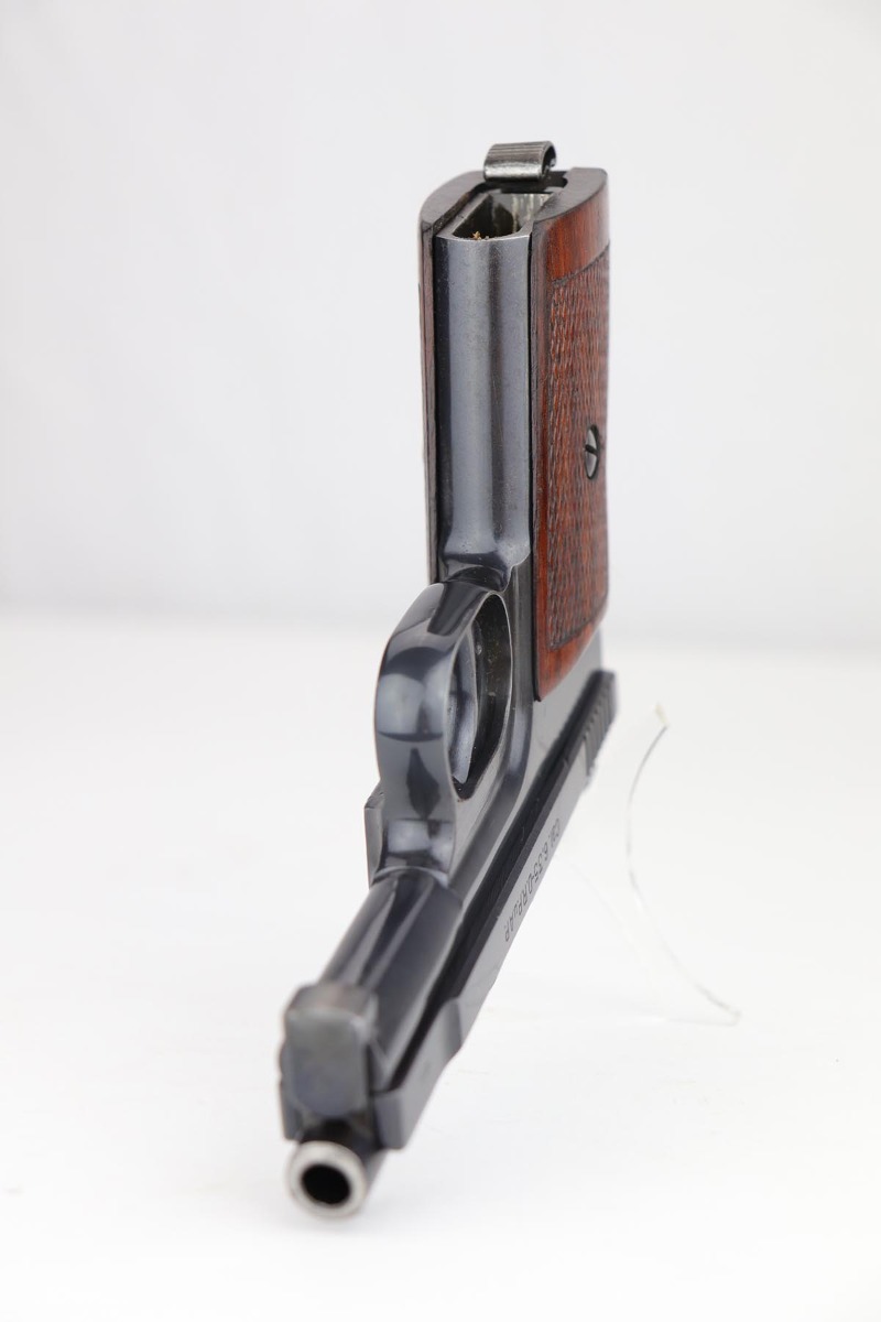 9/11/19 – This is an exquisite Mauser M1910/34 pistol rig, often referred to as a ‘Baby’ Mauser. The pistol is all original and correct with 99+% of the high-polish blue remaining. Mint bore and near-perfect grip. It comes with a correct spare magazine, an original manual, and a nice holster. The holster is in great shape with faint Mauser inkstamp internally, and external maker mark. This rig would be very tough to upgrade.