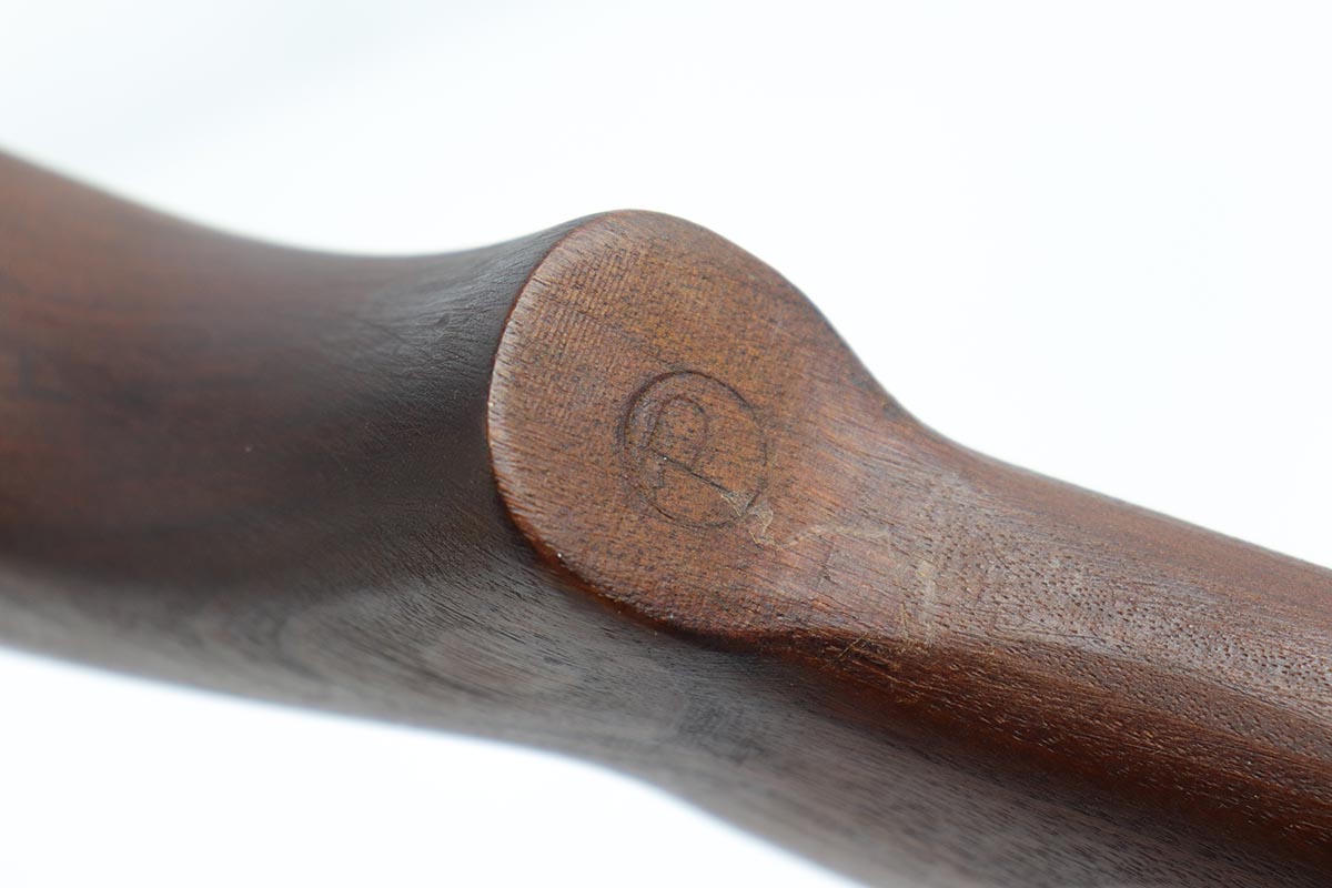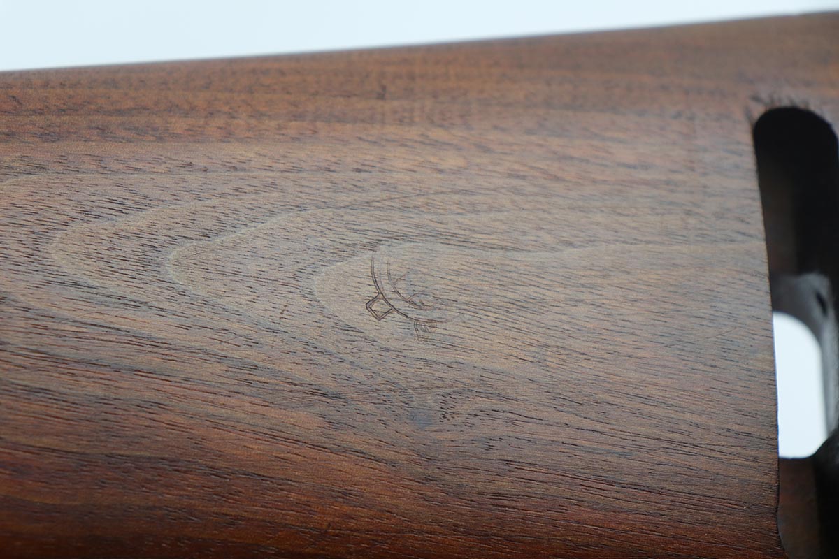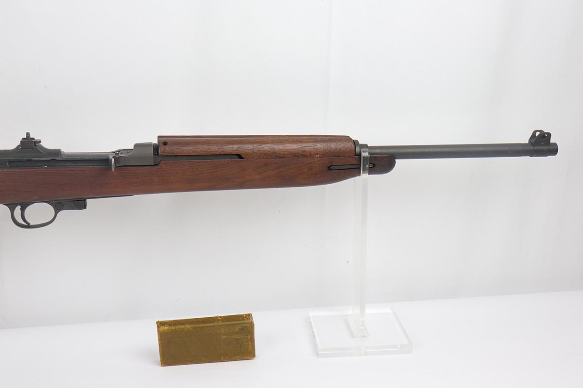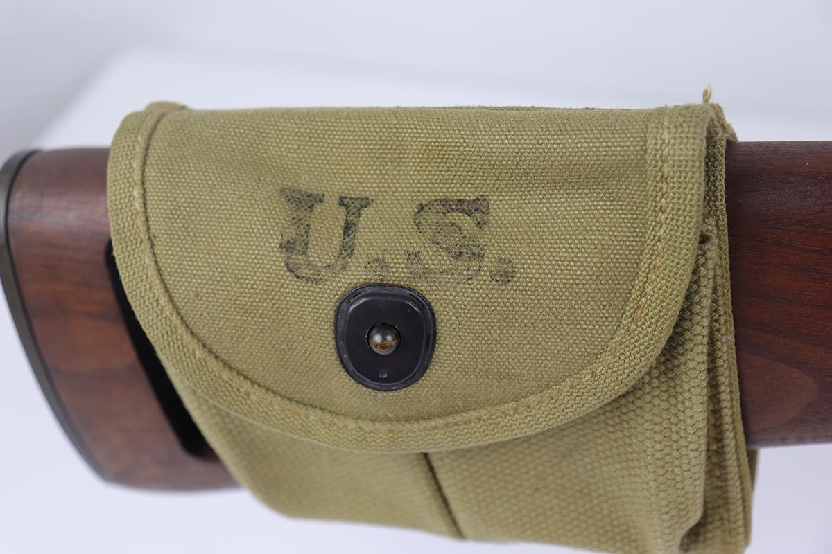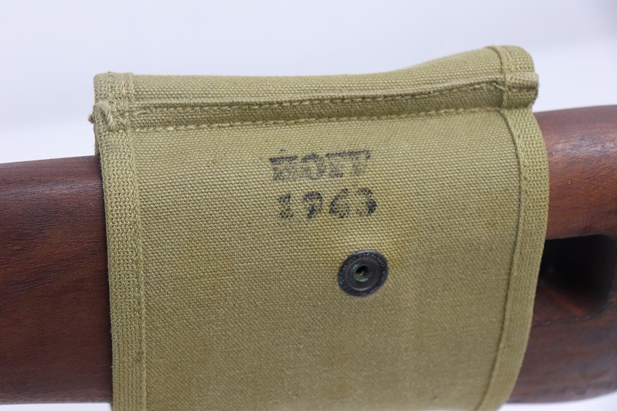 4/15/19 – This is a near-mint Inland M1 Carbine that was manufactured in September of 1943. Early gun with only six-digit serial. The metal parts retain about 99% original finish, with only minor wear on the buttplate. The high-wood stock is in the same condition as the metal, with clear cartouche on right side and IO marking in sling well. Circle P on bottom of wrist. Excellent, shiny bore. Comes with an original magazine pouch that is also dated to 1943, and one magazine which is still inside the original wrapper.