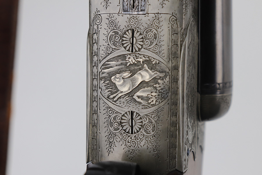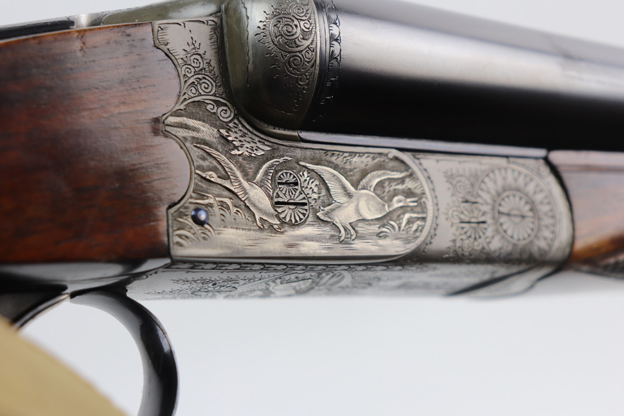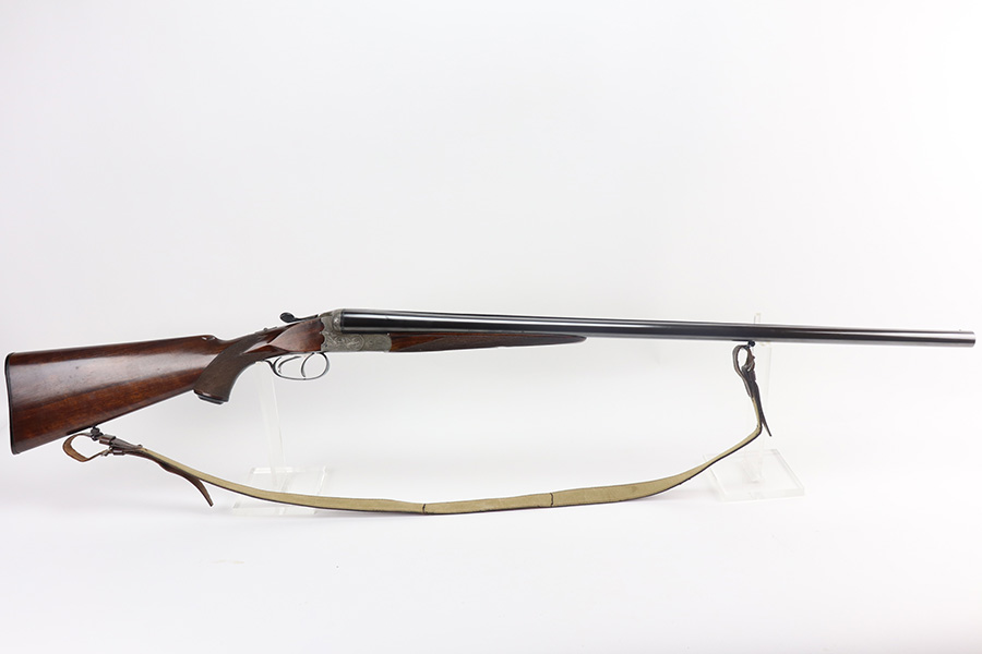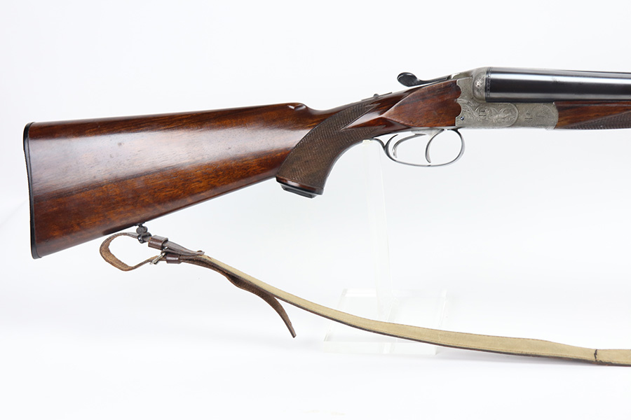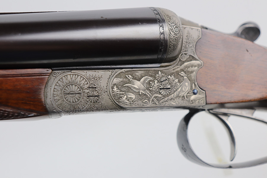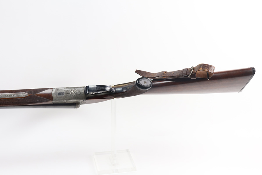8/11/21 – This is an exquisite R. Mahrholdt-Innsbruck master engraved, side by side 12ga shotgun. Super high quality, old world craftsmanship. Fabricated by master gun makers and embellished by German master engravers. This SxS shotgun is in perfect working order. The wood is perfect, no cracks or splits or damage. There is only one slight section of discoloration behind the trigger guard and by the chambers that can be polished out with a brass brush. Both bores are beautiful. 30 inch barrel, LOP average is 13.5 inches. Comes with period sling. Richard Mahrholdt lived from 1878-1949. From 1898 to 1918 he was head of Tiroler Waffenfabrik Peterlongo Richard Mahrholdt & Sohn in Innsbruck/Austria. That factory was founded by Johann Peterlongo in Innsbruck in 1854. R. Mahrholdt was in good contact with the Suhl gunsmith August Schüler. In his time he was known as a good expert of gunnery. He is the author of the “Waffenlexikon”, which was published in 1931 and its second edition in 1937. This book is even today in publication and revision. Mahrholdt was one of the biggest gun gurus of pre-war Germany. He was also a master gun maker with a safety drilling of his own design.