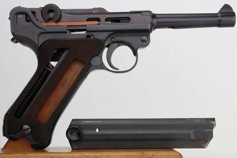 2/27/24 – This is an extremely rare, 1941-dated Mauser factory cutaway Luger. One of probably only 10 made. It is in mint condition with a really nice plum-colored finish. Comes with an original black widow magazine. For more detailed information, check out our recent Youtube video where this gun is featured!