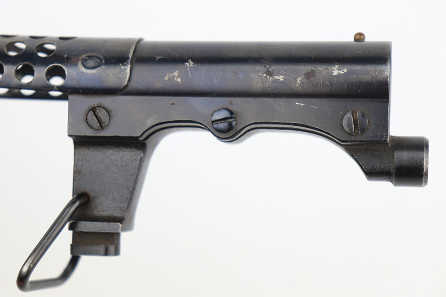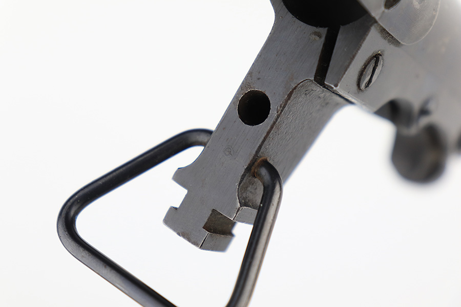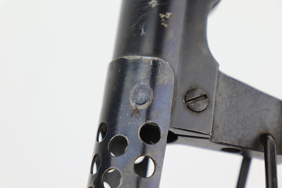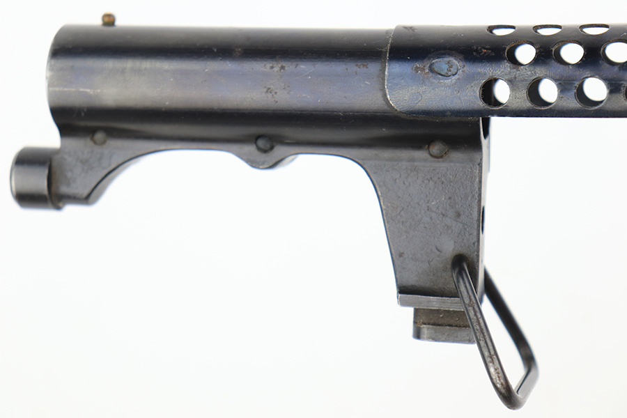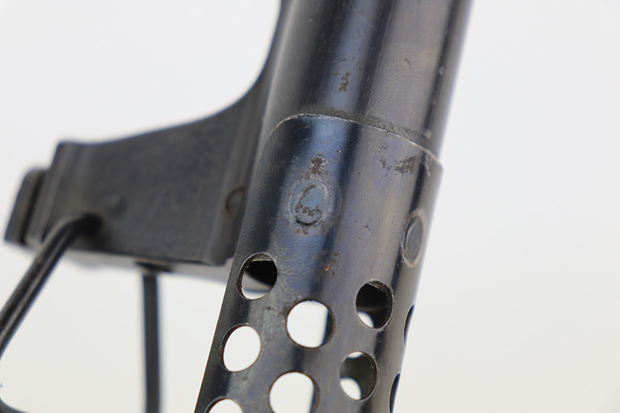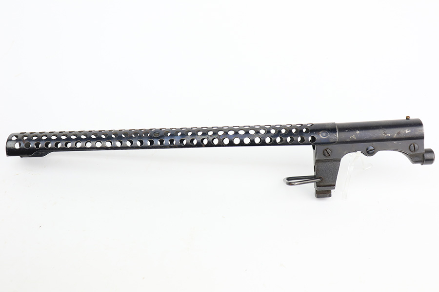 3/24/23 – This is an ultra rare Ithaca WW2 heat shield, If you were looking for one you could probably never find it. This was removed from an Ithaca Model 37 by the police who were destroying a crime scene seized gun. It is a heat shield for the very rare US Military issued Trench shotgun – the Ithaca Model 37. 90 – 95% all original finish with just a little corrosion. It has the original swivel and screws. Swivel is properly pinned and it has the “telltale” oval welds that are unique to the Ithaca. (See photo). The swivel is properly pinned.