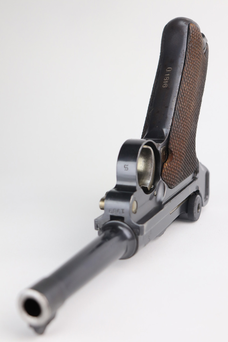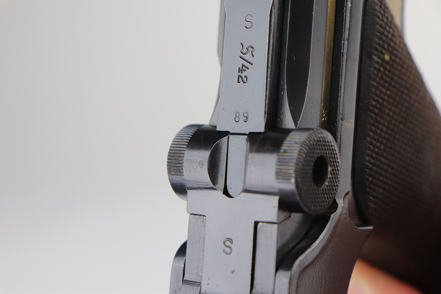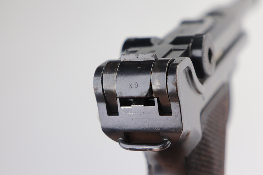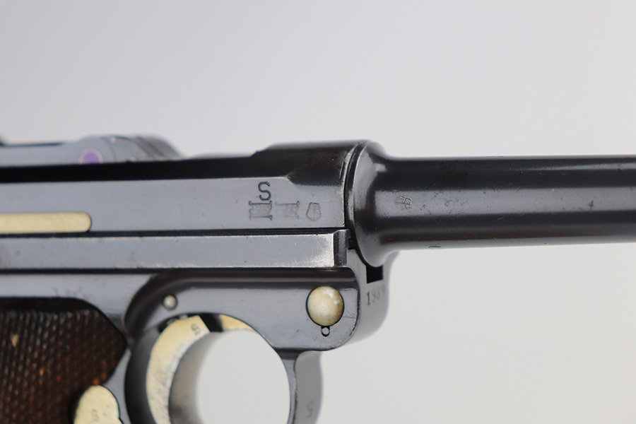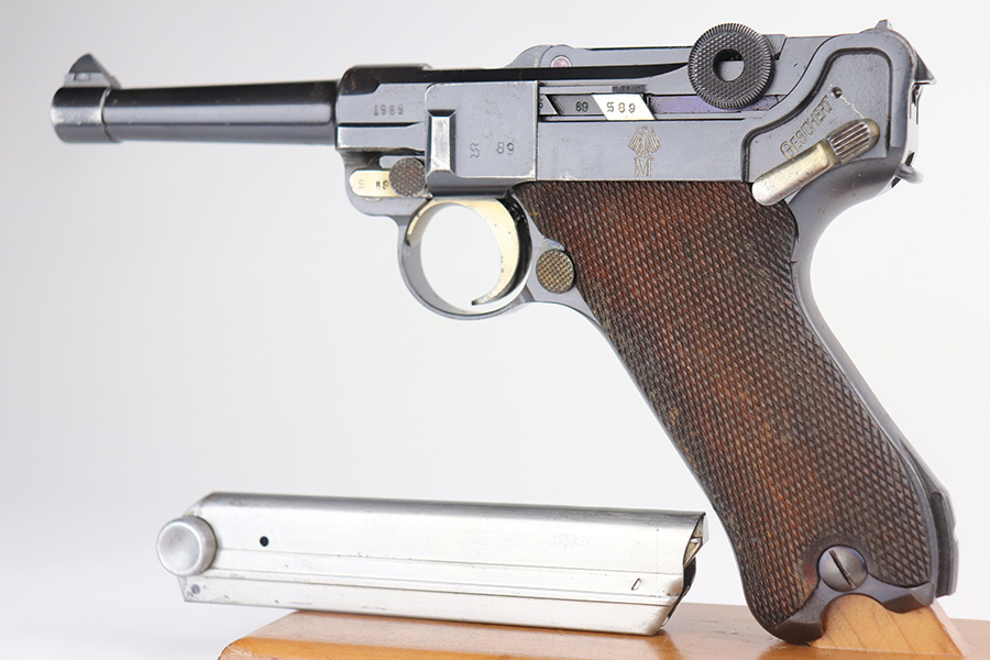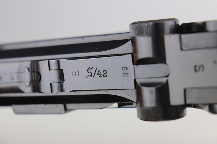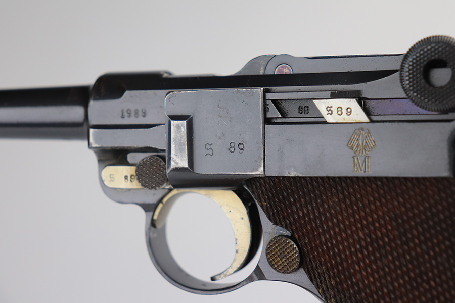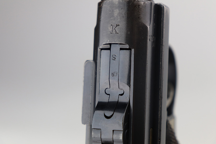6/22/21 – This is a supremely rare K Date Mauser Luger that was issued to the Kriegsmarine. It’s one of the most rare and desirable Luger variations ever produced. There were only 300 ever produced, and with a low survival rate. This one has all matching numbers on metal parts. The magazine is a rare and correct example with 0/37 inspection proof but off by about 150 digits. The grips are marked with the gothic ‘S’ and numbered ’98’ – this could be a factory mistake given the pistol is ’89’, or it’s possible they were swapped long ago. The fit snugly and appear original to the pistol. The pistol has about 92-94% of the original bluing with standard high edge wear, some patina on the straps and minor pitting on the right side rail. Kriegsmarine Eagle/M proof on left side of frame with ‘O.1816’ property mark on grip strap. Just a few digits off from a recorded example in Still’s books. Beautiful straw remains on small parts. Overall an excellent example as most K Dates were treated harshly and heavily used.