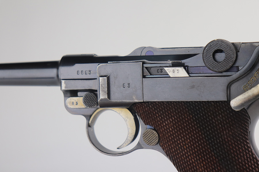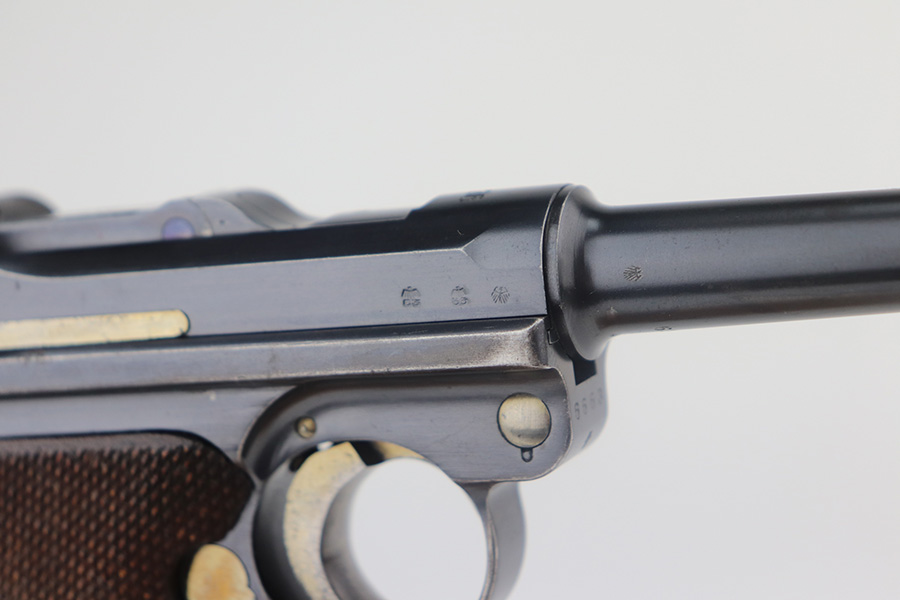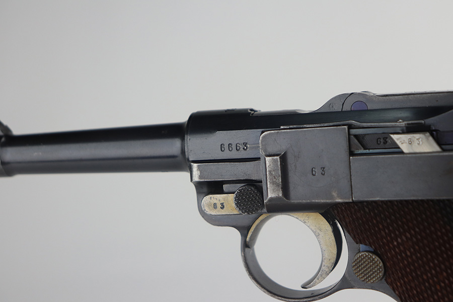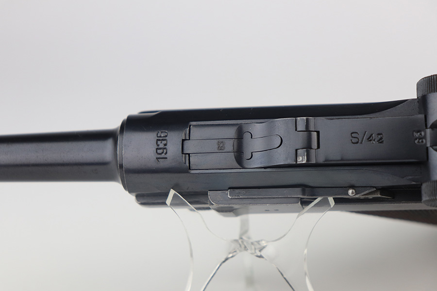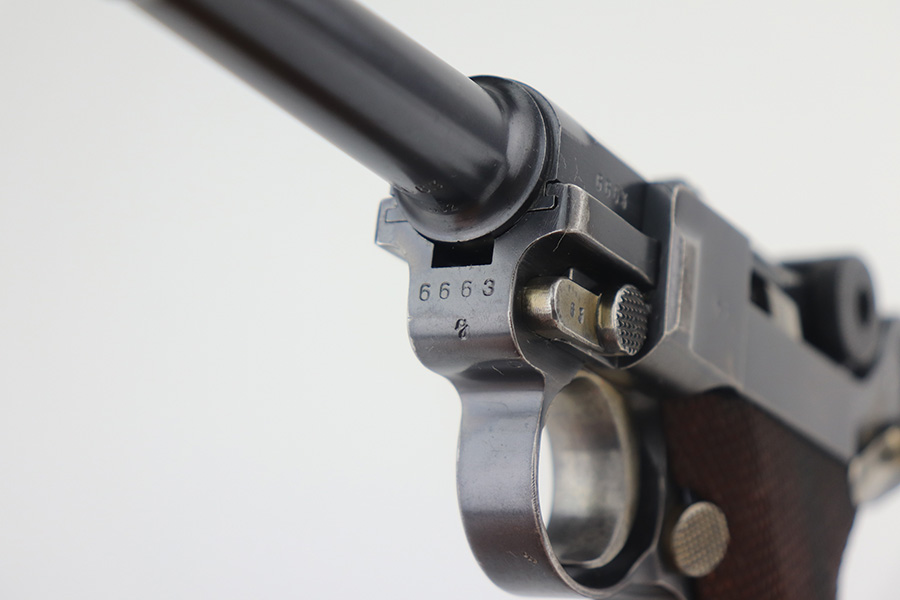 5/28/21 – This is an extremely rare Nazi Mauser Luger from 1936 that was part of a fulfilled military contract that was diverted to the police. It is estimated that only 200 such examples were produced, with only 4 reported as known/documented in Third Reich Lugers! This one is all matching and original, including the magazine. The magazine is numbered in the police style with Haenel manufacturer’s mark. It’s in great shape with most of the wear on the front strap and side plate. Mirror bore. The known examples are all reported in the 6000g serial range, so this one fits. Police sear safety visible over sideplate. Excellent, unmarked grips.