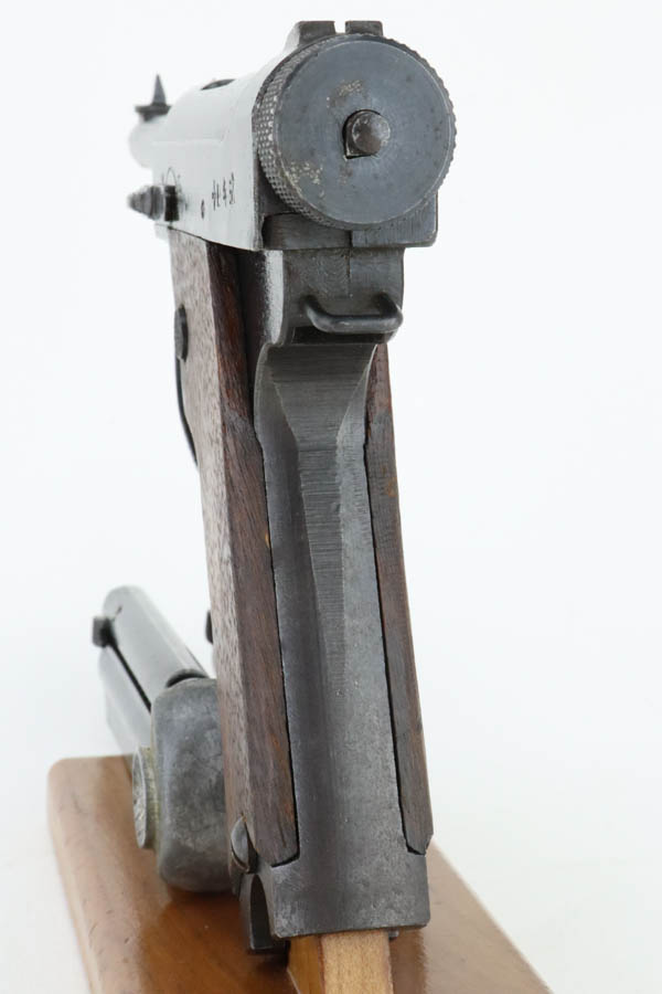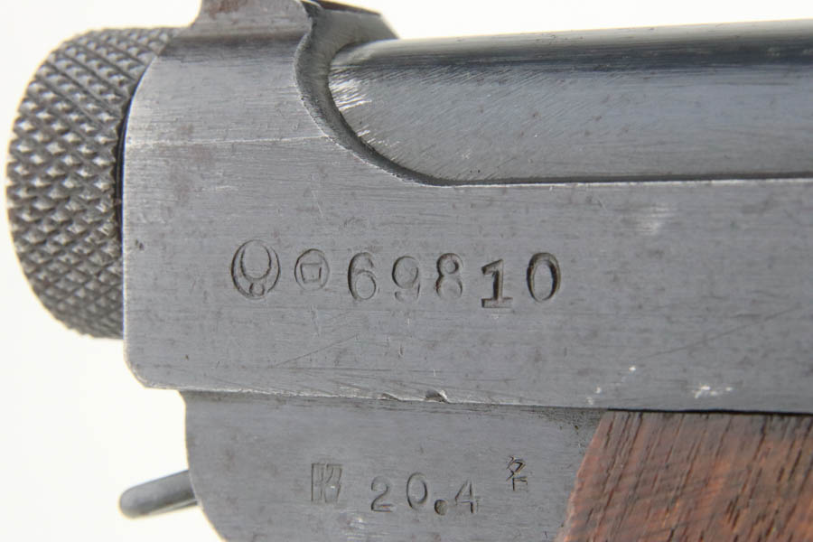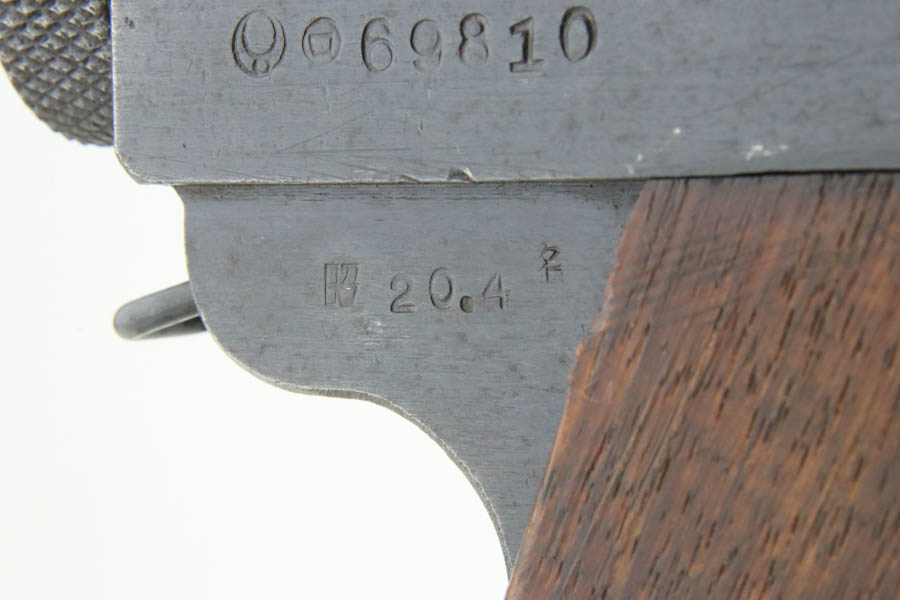 05/22/2024 – For sale is an excellent condition Type 14 Nambu made in 1945 at the Toriimatsu branch of Nagoya Arsenal. This handgun was produced just for the end of the war so it features some late-war designs like the slab grips. This handgun is all matching including the 2 magazines given to the officer. The bore is excellent and bright with great rifling. The handgun comes with a hardshell holster with the Japanese letter “sa” and 3 0 written on the front. Inside the flap has 10 and 7 written. The rig also comes with a cleaning rod.