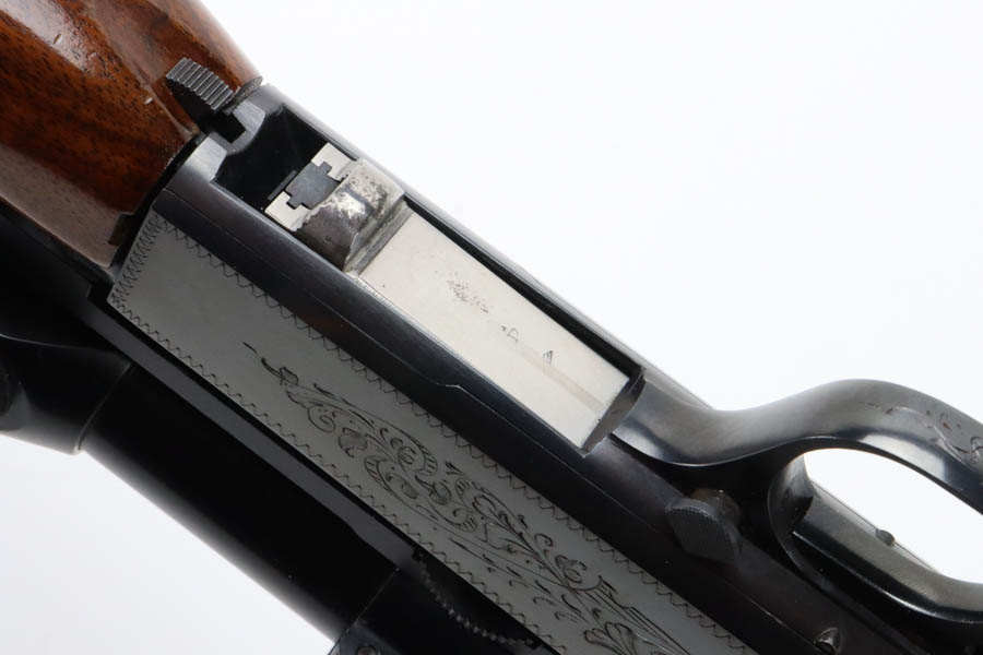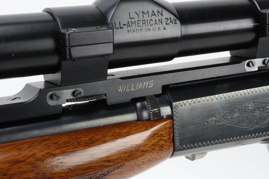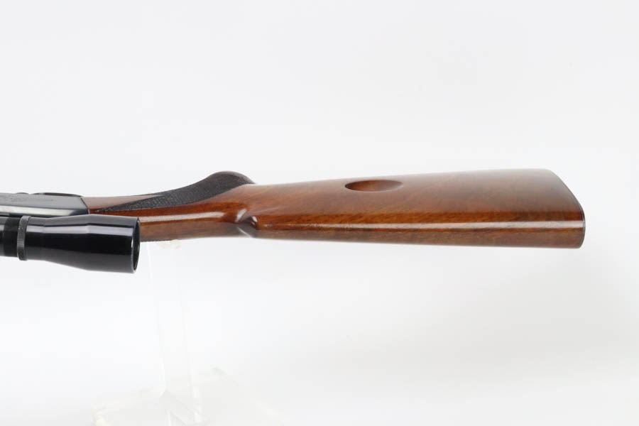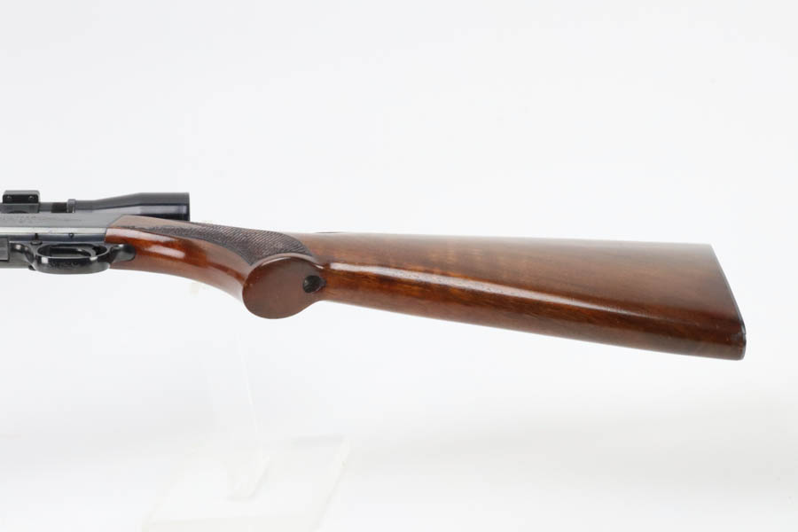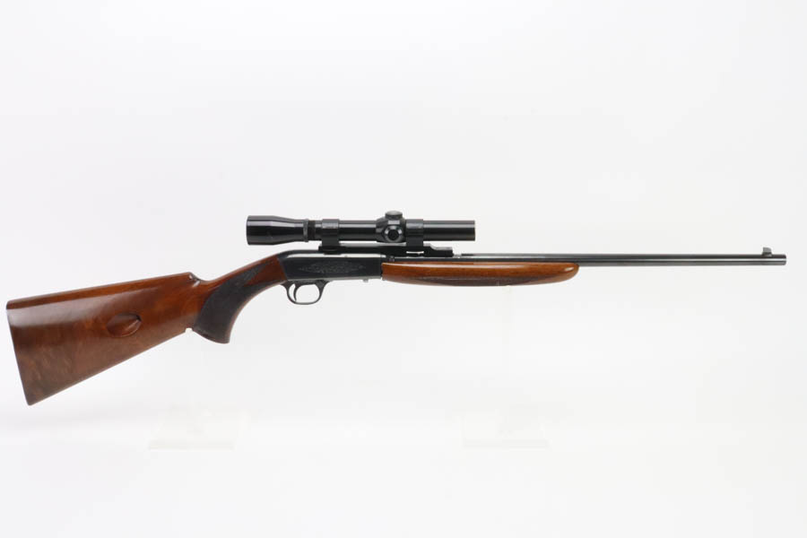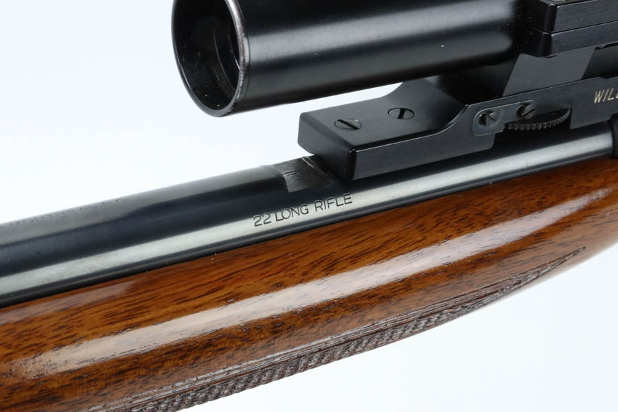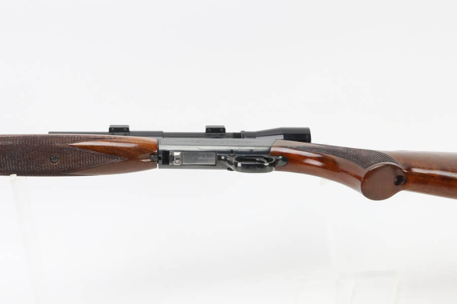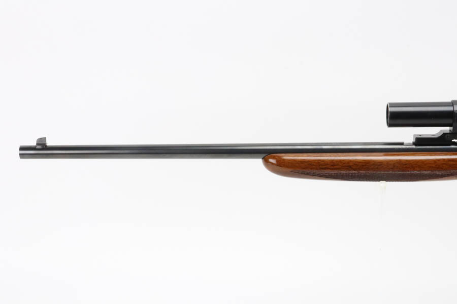 09/04/204 – For sale is a gorgeous Belgian Browning SA-22 rifle made in 1963. The rifle has an excellent high polish bluing with a simple floral engraving on the receiver. The wood furniture is excellent with no cracks. There is a very small chip missing on the right side of the stock at the buttplate. The bore is mirror bright with excellent rifling. The rifle comes equipped with a Lyman All-American optic.