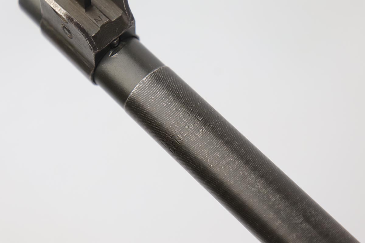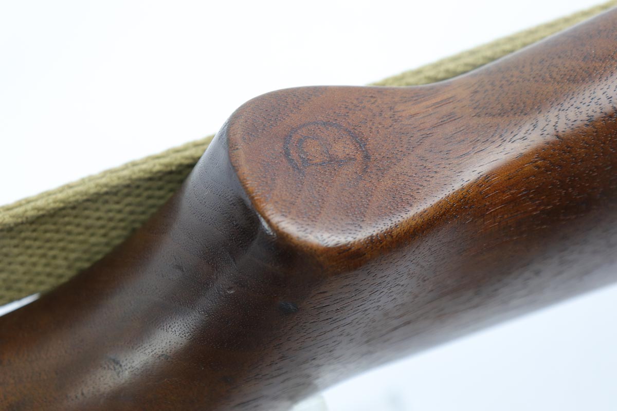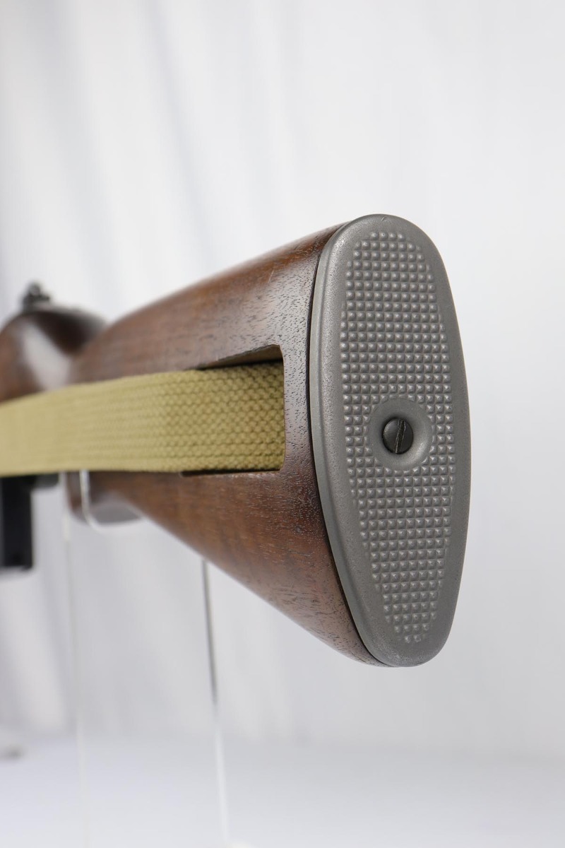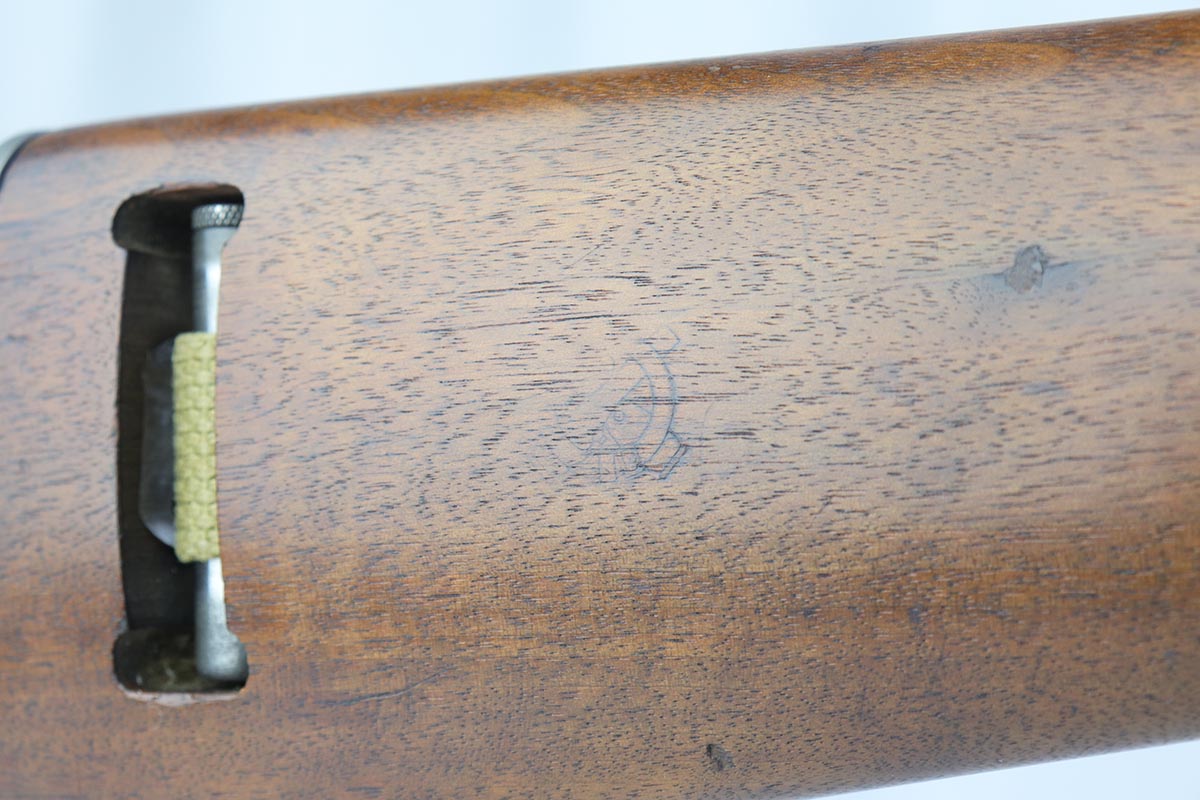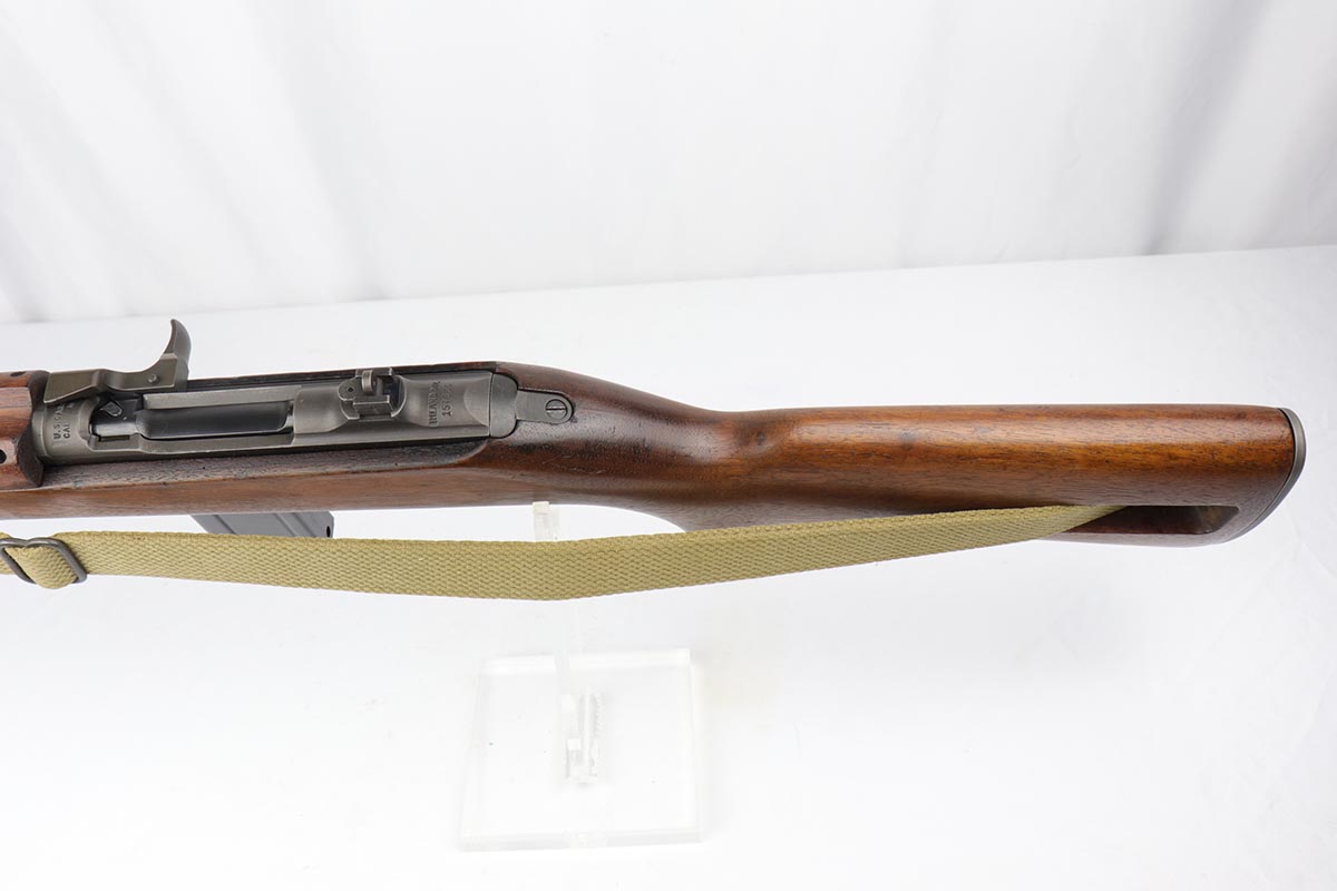 2/28/19 – This is an excellent and early example of an Inland manufactured M1 Carbine. Made in December of 1942, the finish on metal parts is original and rates in the high 90s with just minor thinning on the barrel. Early, six digit serial. High wood, I-cut stock. Original slide. Minty bore. Excellent stock with crossed cannons cartouche on right side. The sling cut is marked but it’s tough to make out the proof mark. Handguard marked IO internally.