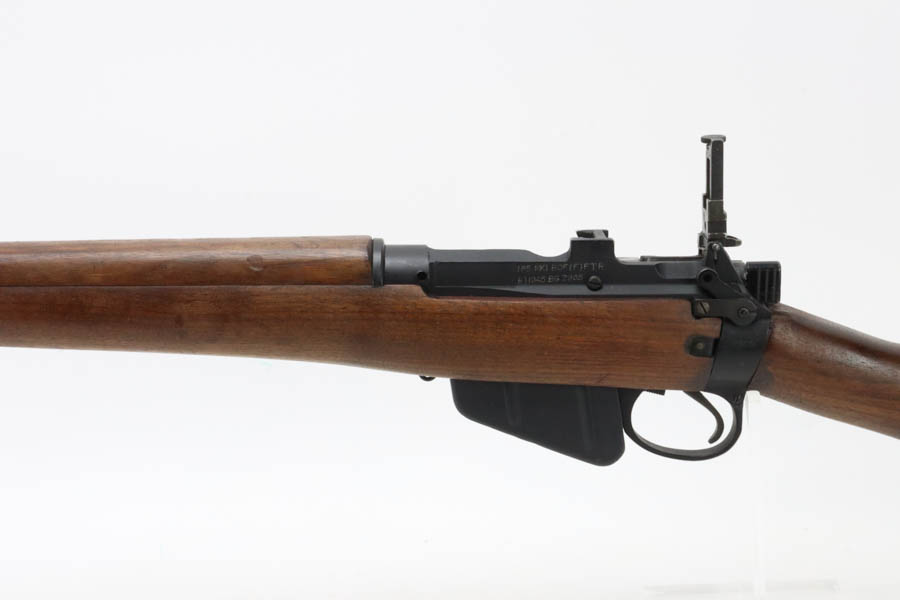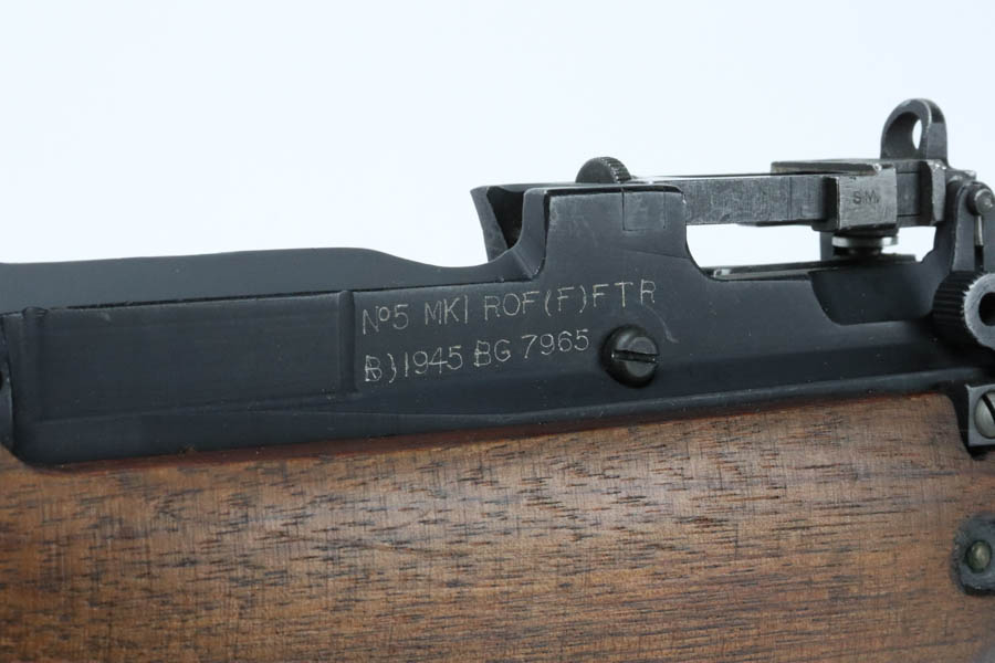 07/16/2024 – For sale is a No5 Mk1 “Jungle Carbine” used by the British Commonwealth during and after WW2. These carbines were designed as a shortened & lightened Lee Enfield rifle to make it easier to use in the jungles of Asia. This rifle has all the correct features for a No5 Mk1. The rifle had undergone “Factory Through Repair” and has been refurbished at the arsenal. The overall condition is excellent. The rifle is matching on the receiver, bolt, and stock. The wood furniture is in excellent condition with a couple pressure marks visible. the bore is very bright with great rifling. There is an import mark on the right side of the barrel.