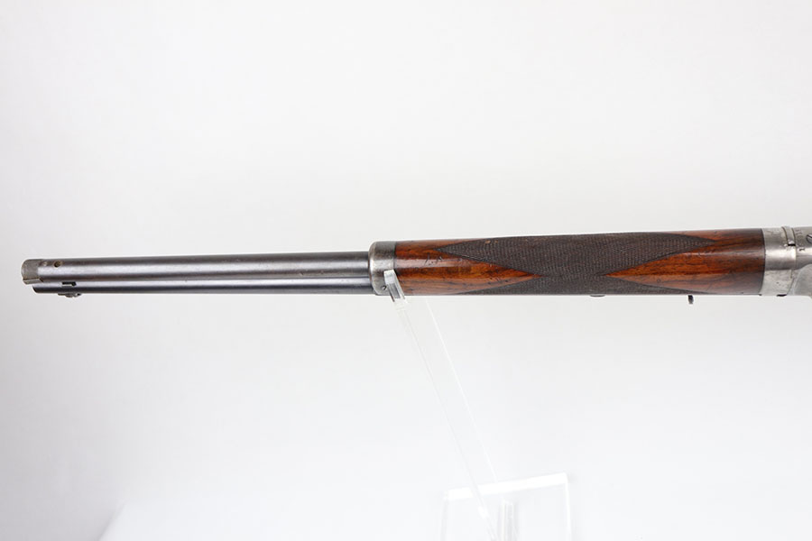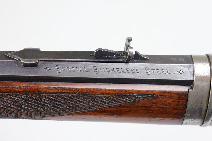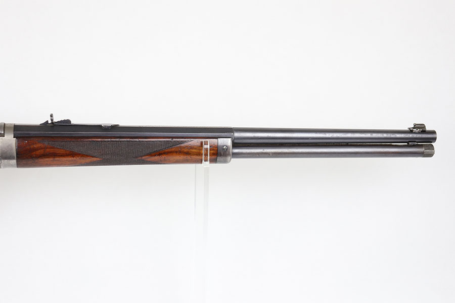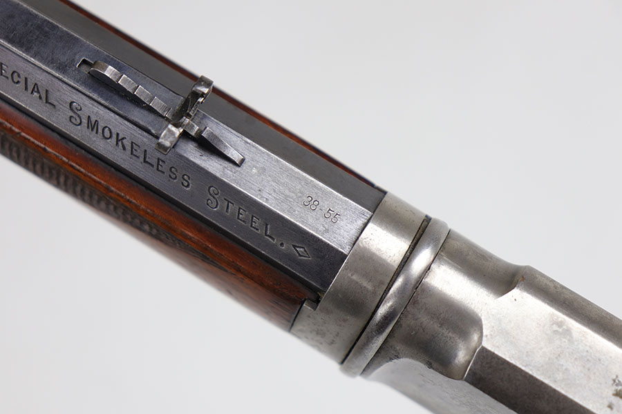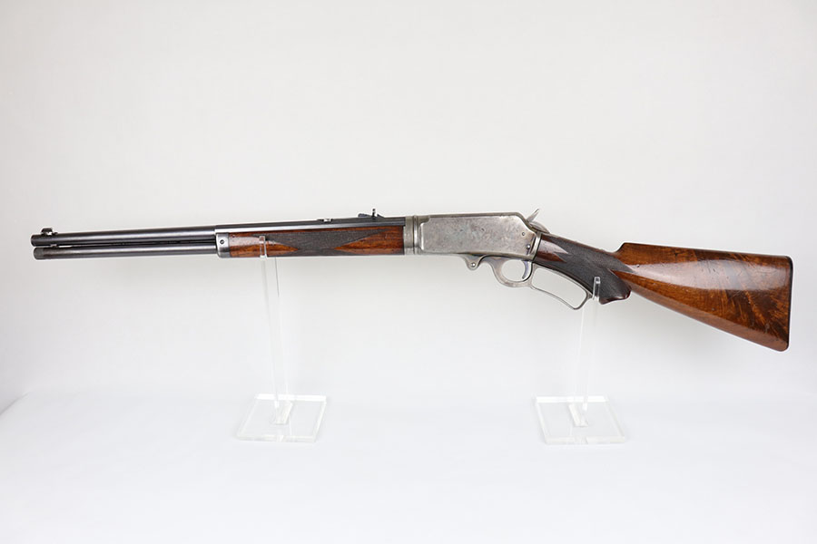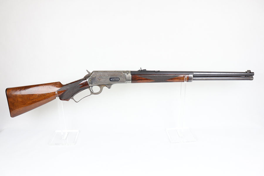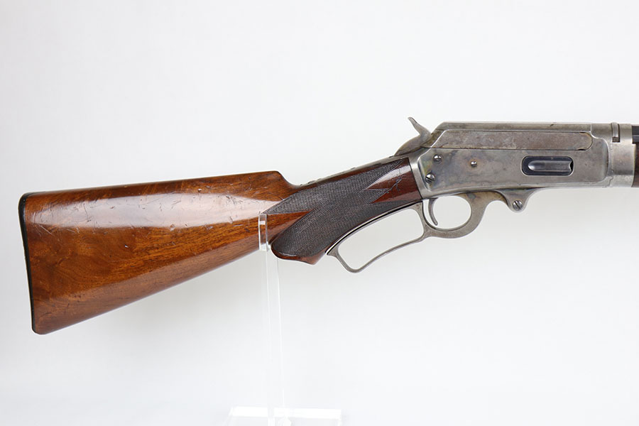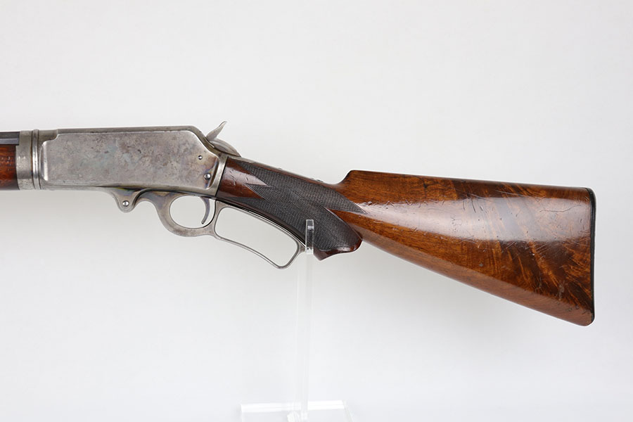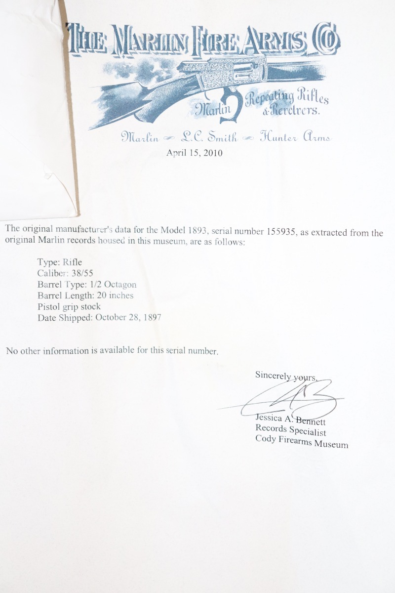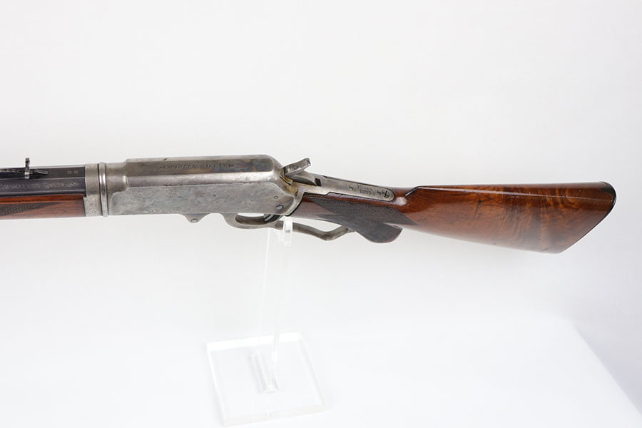 6/3/20 – This is an original antique Marlin Model 1893 that was made in 1897. It’s the extremely rare “full deluxe” and chambered in .38-55 caliber. It comes with a Marlin factory letter stating it shipped in 1897 and has a 20 inch barrel. It is all original finish with about 85% of the finish on the barrel and about 25-30% of the case hardening on the receiver and other parts. It is referred to as the TKDN model as it has a unique takedown design. Original and very nice checkered stock. Excellent condition. Not sanded or messed with in any way. Excellent and shiny bore with strong rifling.