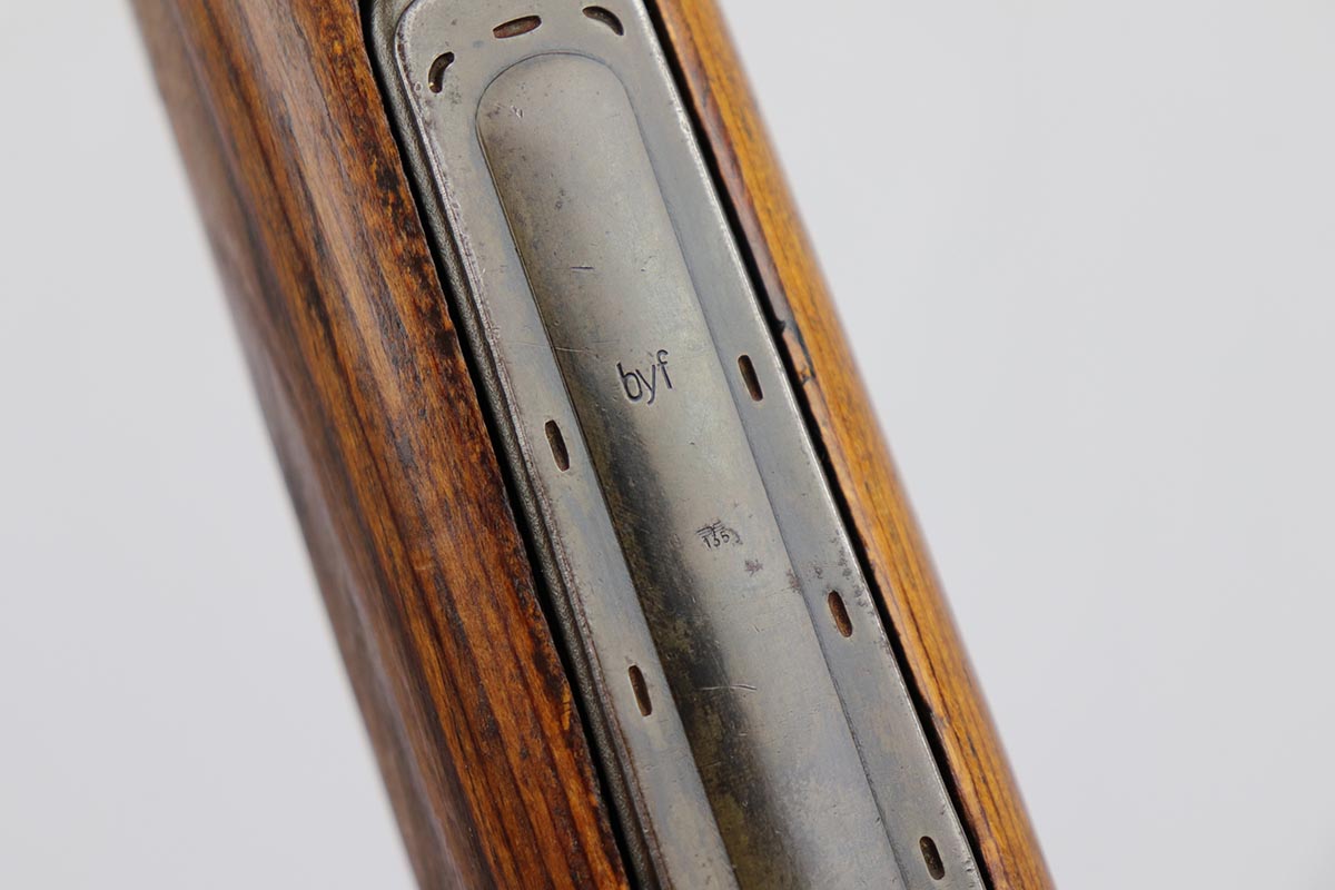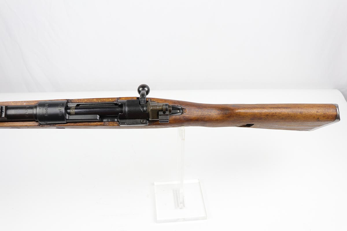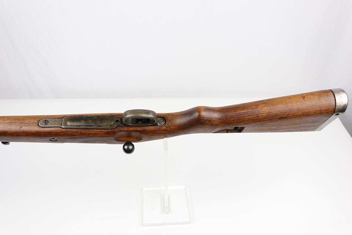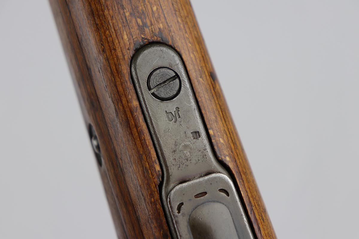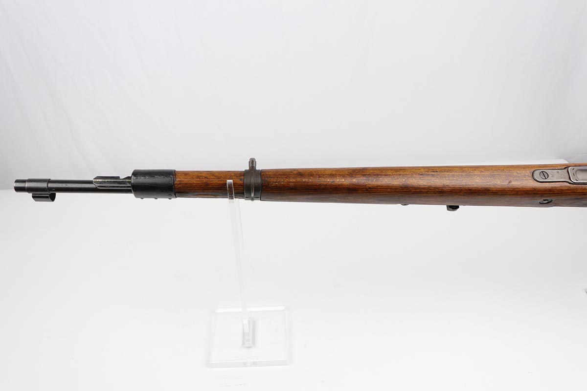 10/31/19 – This is a fantastic example of an original and matching Mauser K98 from 1945. The rifle has all matching numbers, and is typical for a late-war K98 with most parts unnumbered. The receiver and bolt assembly are the only numbered parts. The finish on the rifle is fantastic, with blued barrel/receiver/bands but phosphate trigger assembly and partially phosphated bolt assembly. There is only minimal finish loss to metal parts and no major areas of wear. Stock is in terrific condition with sharp waffenamt and ‘H’ for Heer Army on the right side. Bore has strong rifling but frost throughout and could use a thorough cleaning.