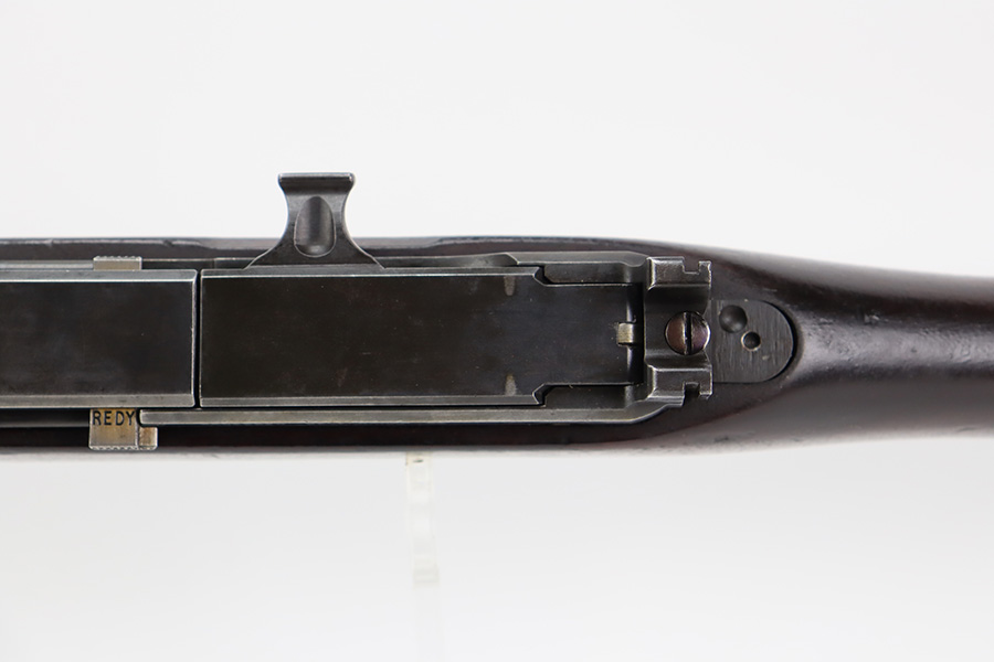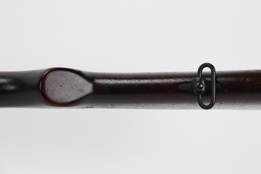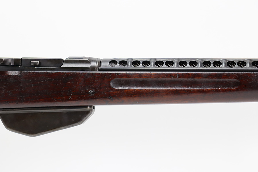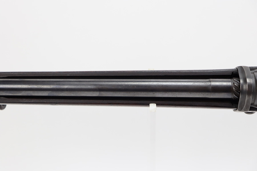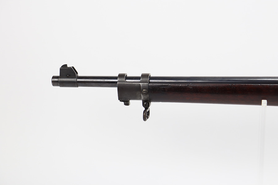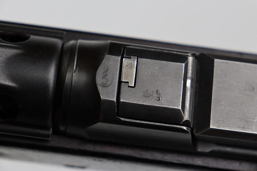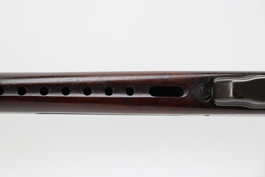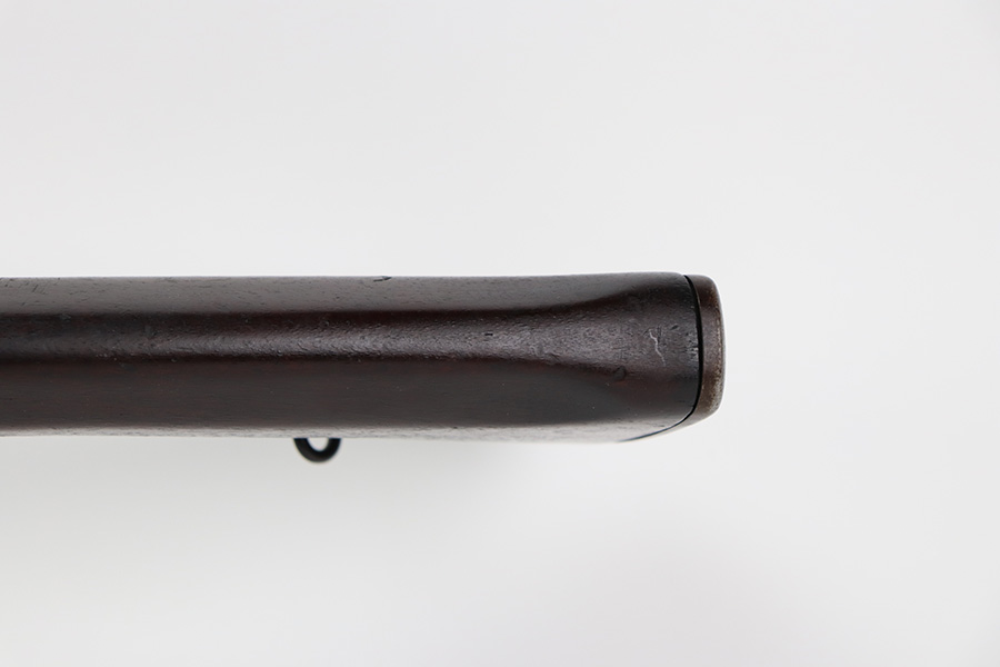 8/3/23 – This is an exceptional example of a very rare, John D. Pedersen designed, self-loading rifle, which was manufactured by Vickers-Armstrongs Ltd. circa 1930. In 1923, the U.S. Ordnance Department had hired Pedersen to design a semi-automatic rifle as a replacement for the Model 1903 and Model 1917 rifles, as well as a new, lower recoil, cartridge for it to be chambered in. The first Pedersen self-loading rifle was chambered in .276 caliber and was approved for testing in 1924. In 1927, Springfield Armory manufactured twenty Pedersen rifles for initial field testing, which was to run concurrently with the .276 caliber semi-automatic rifle developed by John C. Garand. The Pedersen rifle performed well in the initial service tests, and in 1929/30, Pedersen contracted with Vickers-Armstrong (of England) to manufacture approximately 200 of the Pedersen self-loading rifles for use in the final U.S. tests, as well as being tested by the British military. Although both passed, in 1932, the army selected the Garand design in .30-06 for limited procurement, and shortly after ended all further development of the Pedersen rifle. After the army discontinued its pursuit of the Pedersen rifle, they were able to sell a limited number of rifles to China, Portugal, and Japan, who were also attempting to develop a self-loading rifle, possibly with his delayed-blowback toggle mechanism. These rifles all have several distinctive features such as a 10 round box magazine loaded with en-bloc clips, fine adjustable 1/2 minute rear sight, 24 inch barrel with spiral cooling fins, perforated metal hand guard, and sliding bar safety in the bolt. They were all chambered in the early rimless .276 bottleneck Pederson cartridge. The left side of the receiver is roll-stamped: “PEDERSEN SELFLOADER PA/VICKERS-ARMSTRONGS LTD.” in two-lines. The serial number “106” is stamped on the right rear of the receiver.The top of the sliding bar safety is marked “REDY” on the left side and “SAFE” on the right side. An encircled “C/2” is stamped on the top of the receiver. There is an early Birmingham Nitro proofmark (used until 1925) stamped on the top of the front edge of the bolt and the left, rear side of the receiver. This particularl rifle is in fantastic condition, with only minor edge wear to the original bluing. Excellent, shiny bore. The stock is in similar condition with only light handling wear but no cracks or chips. The listing also includes a sealed box of .276 ammunition (20rds), as well as two clips with 10rds in each and an open box with two remaining. NOTE: The rear sight is missing the aperture components.