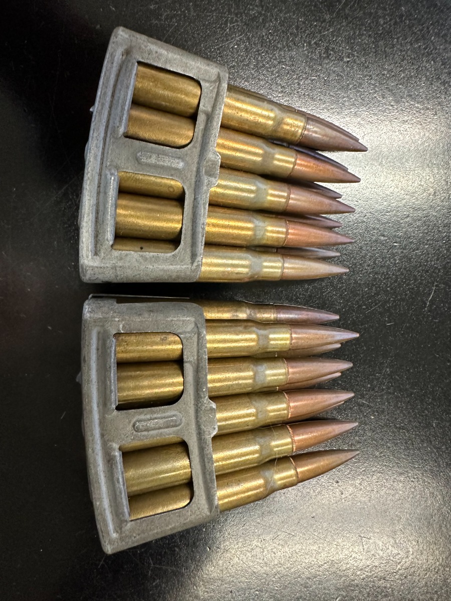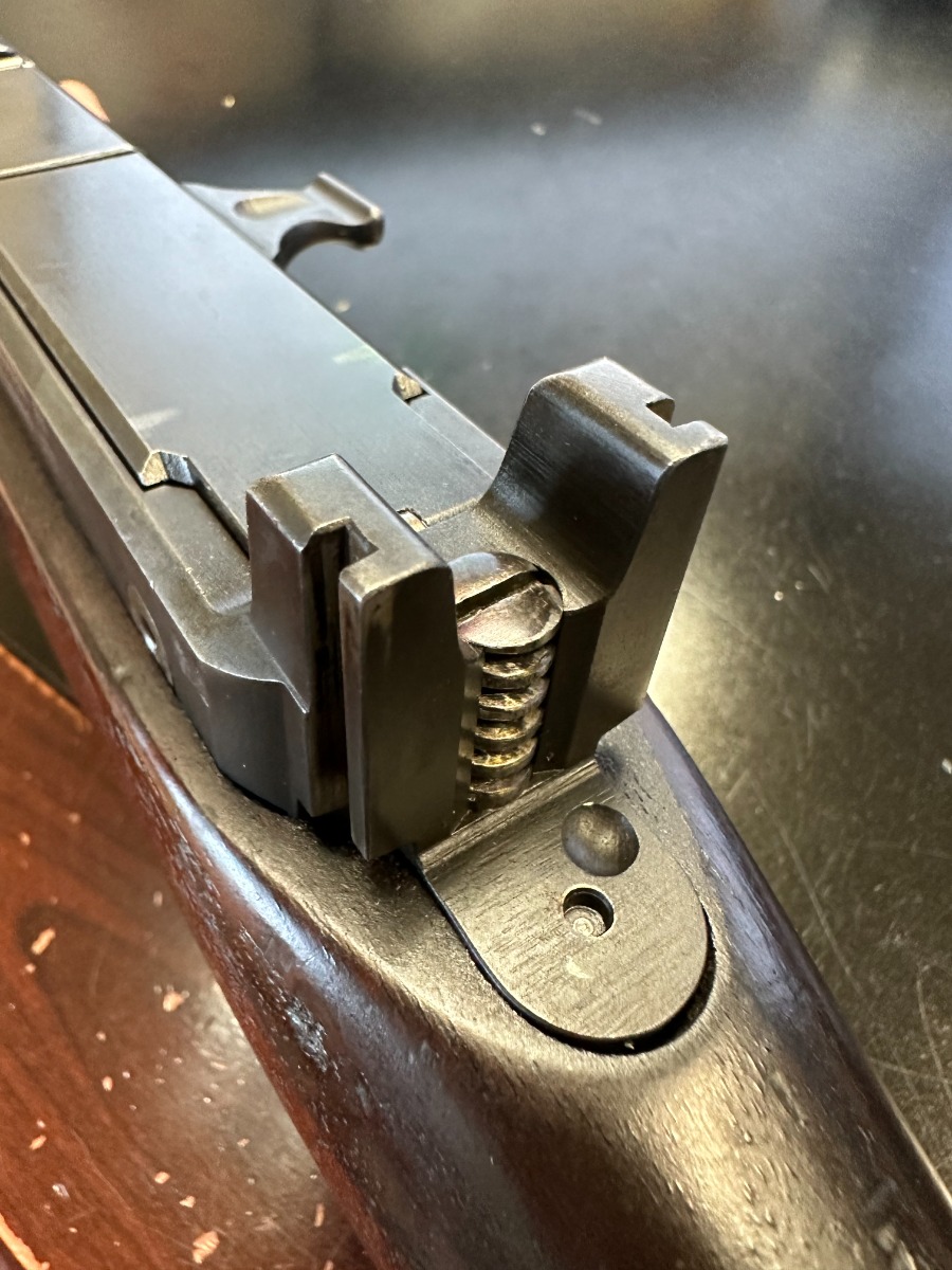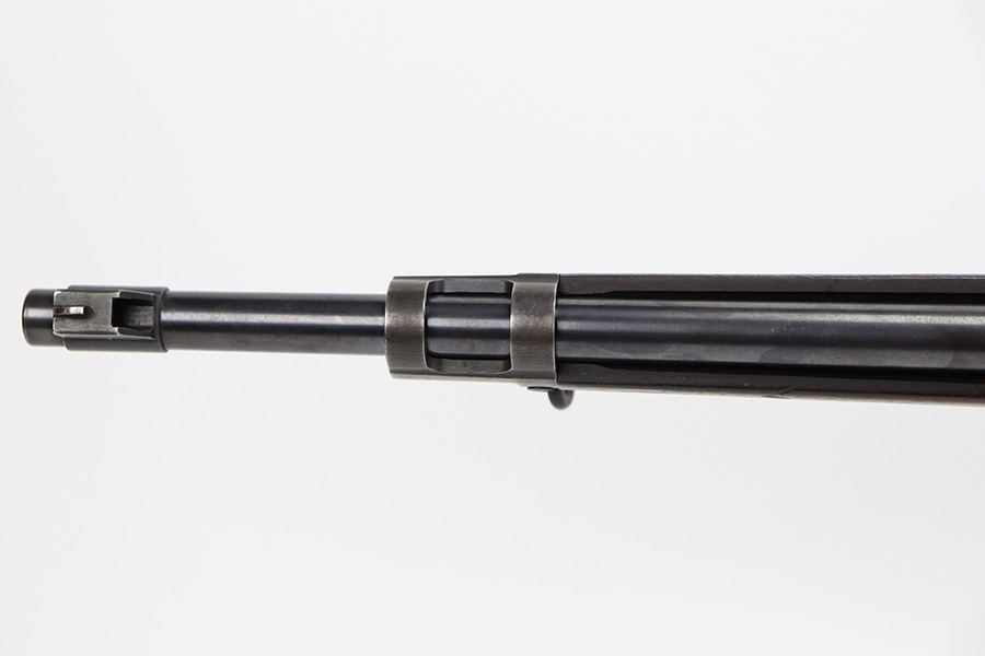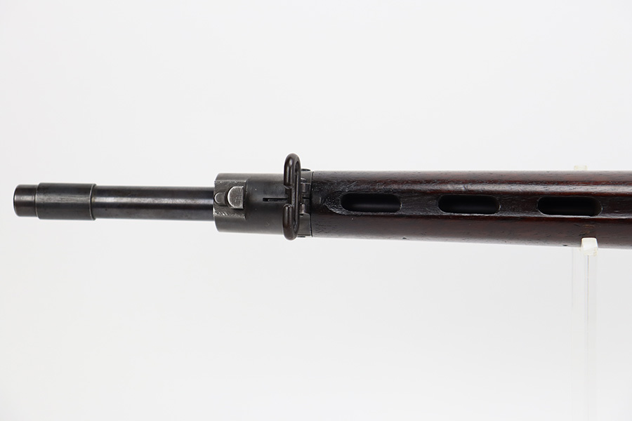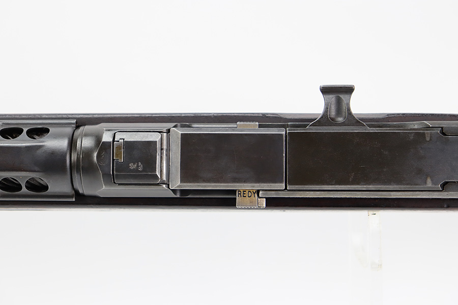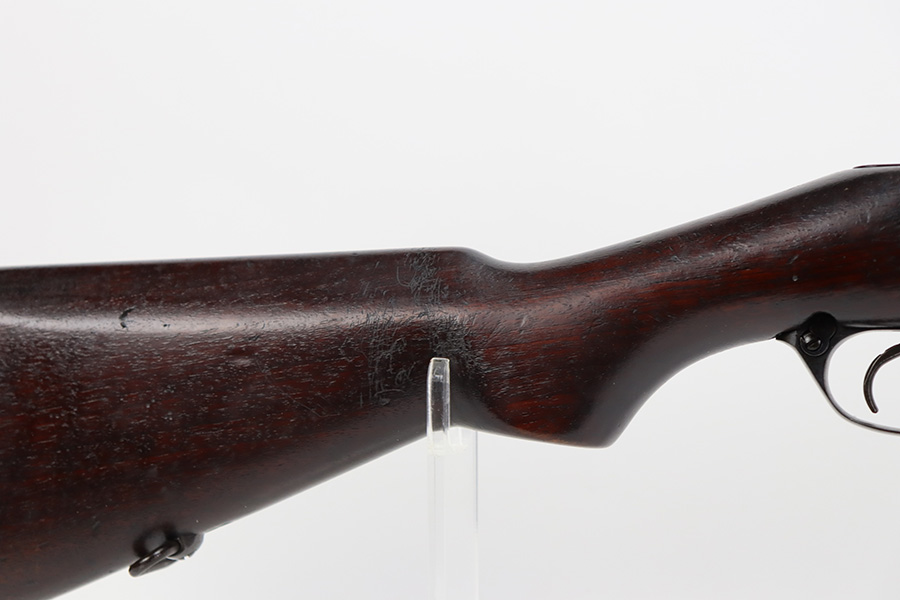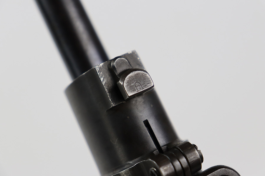 8/3/23 – This is an exceptional example of a very rare, John D. Pedersen designed, self-loading rifle, which was manufactured by Vickers-Armstrongs Ltd. circa 1930. In 1923, the U.S. Ordnance Department had hired Pedersen to design a semi-automatic rifle as a replacement for the Model 1903 and Model 1917 rifles, as well as a new, lower recoil, cartridge for it to be chambered in. The first Pedersen self-loading rifle was chambered in .276 caliber and was approved for testing in 1924. In 1927, Springfield Armory manufactured twenty Pedersen rifles for initial field testing, which was to run concurrently with the .276 caliber semi-automatic rifle developed by John C. Garand. The Pedersen rifle performed well in the initial service tests, and in 1929/30, Pedersen contracted with Vickers-Armstrong (of England) to manufacture approximately 200 of the Pedersen self-loading rifles for use in the final U.S. tests, as well as being tested by the British military. Although both passed, in 1932, the army selected the Garand design in .30-06 for limited procurement, and shortly after ended all further development of the Pedersen rifle. After the army discontinued its pursuit of the Pedersen rifle, they were able to sell a limited number of rifles to China, Portugal, and Japan, who were also attempting to develop a self-loading rifle, possibly with his delayed-blowback toggle mechanism. These rifles all have several distinctive features such as a 10 round box magazine loaded with en-bloc clips, fine adjustable 1/2 minute rear sight, 24 inch barrel with spiral cooling fins, perforated metal hand guard, and sliding bar safety in the bolt. They were all chambered in the early rimless .276 bottleneck Pederson cartridge. The left side of the receiver is roll-stamped: “PEDERSEN SELFLOADER PA/VICKERS-ARMSTRONGS LTD.” in two-lines. The serial number “106” is stamped on the right rear of the receiver.The top of the sliding bar safety is marked “REDY” on the left side and “SAFE” on the right side. An encircled “C/2” is stamped on the top of the receiver. There is an early Birmingham Nitro proofmark (used until 1925) stamped on the top of the front edge of the bolt and the left, rear side of the receiver. This particularl rifle is in fantastic condition, with only minor edge wear to the original bluing. Excellent, shiny bore. The stock is in similar condition with only light handling wear but no cracks or chips. The listing also includes a sealed box of .276 ammunition (20rds), as well as two clips with 10rds in each and an open box with two remaining. NOTE: The rear sight is missing the aperture components.